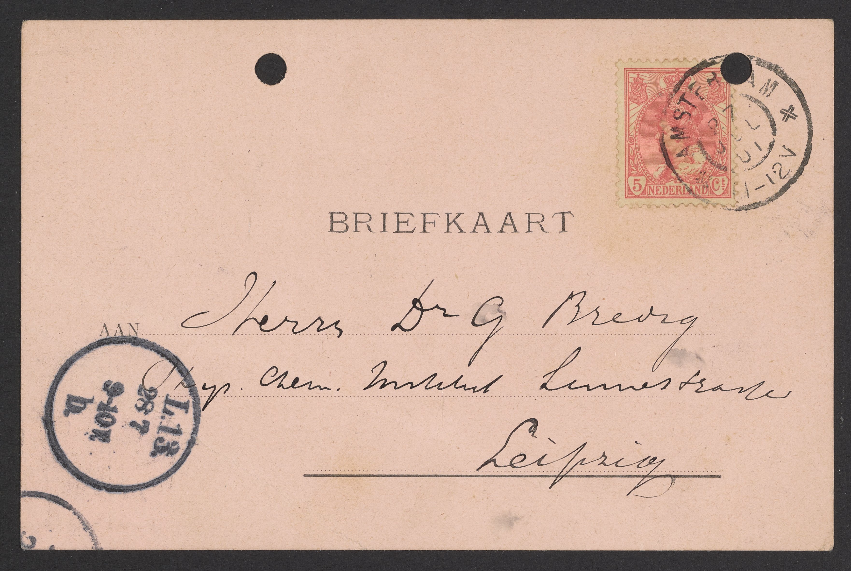 Postcard from Hendrik Willem Bakhuis Roozeboom to Georg Bredig, July 1901