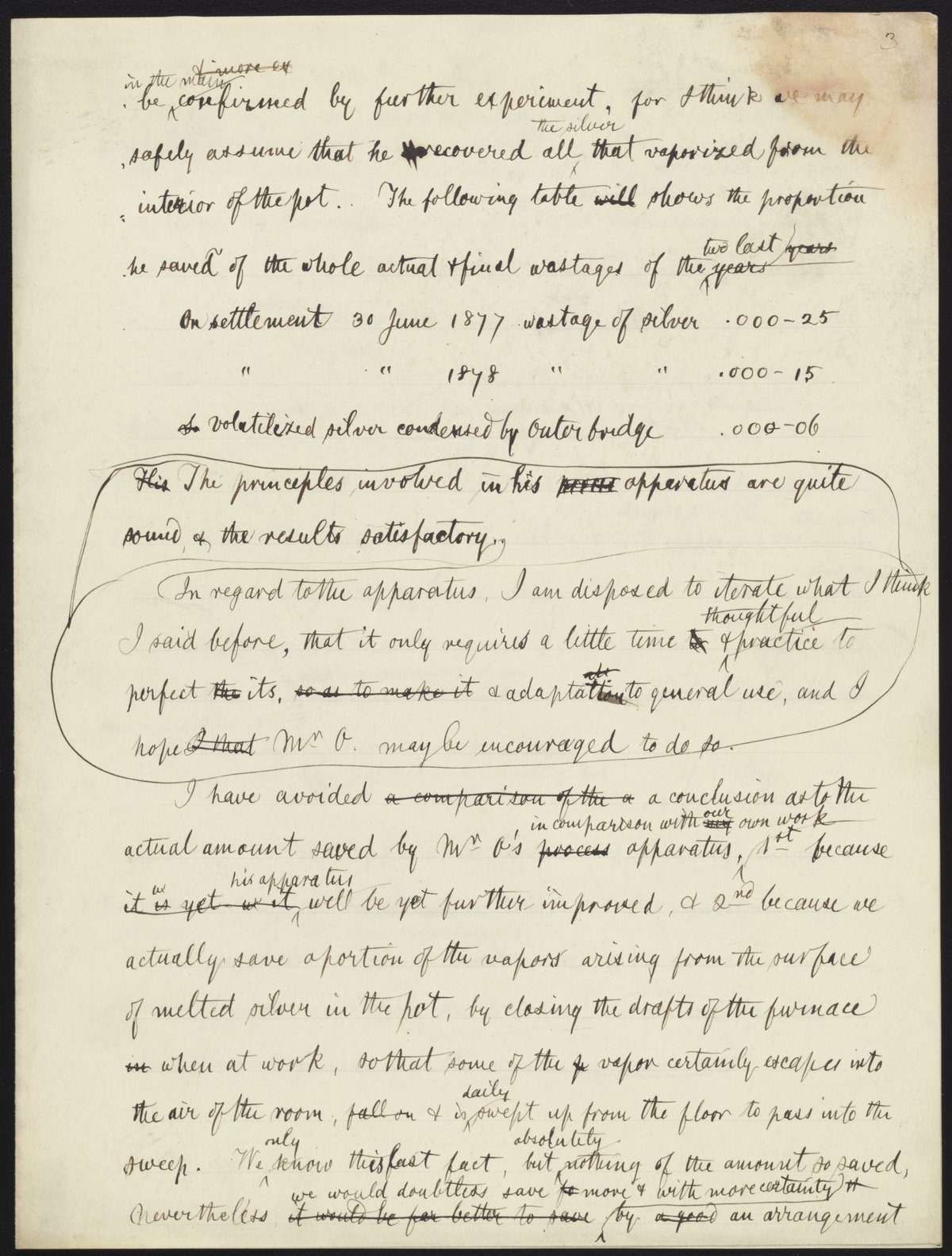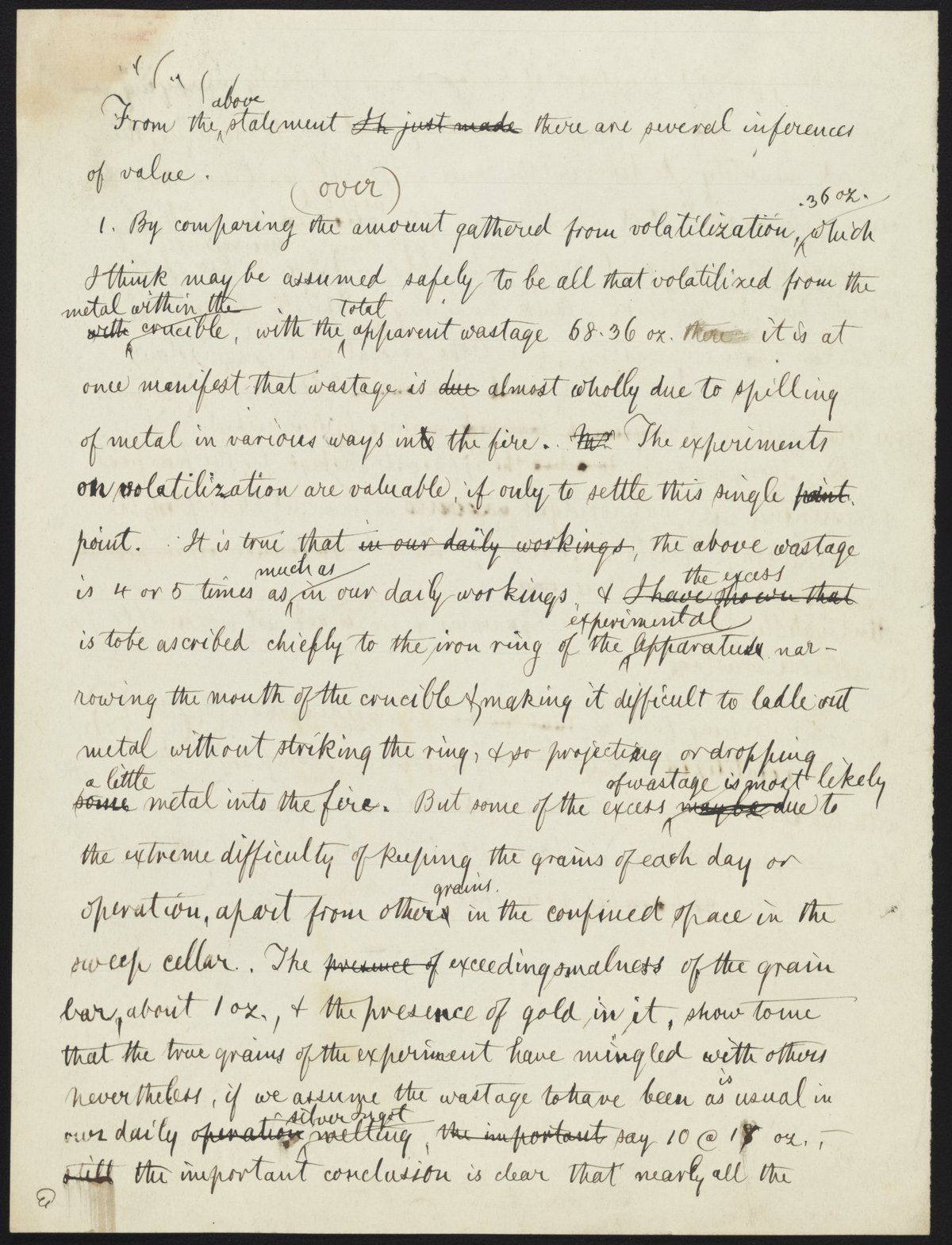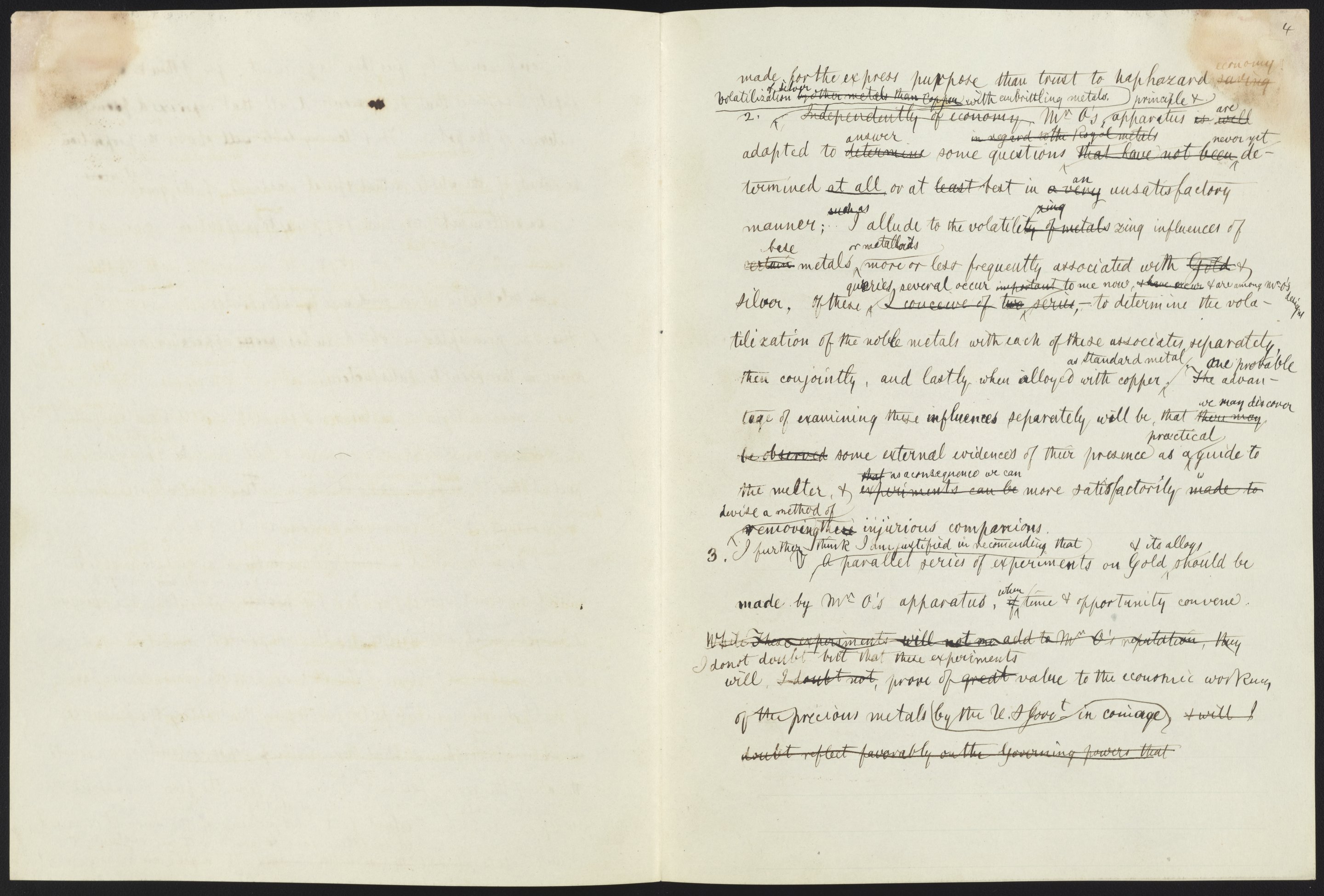 Small JPG1200 x 1522px — 264 KBLarge JPG2880 x 3653px — 1.0 MBFull-sized JPG5132 x 6509px — 2.6 MBOriginal fileTIFF — 5132 x 6509px — 95.6 MBRough draft of a letter dealing with the results of A. E. Outerbridge’s experiments on the volatilization of standard silver. The letter is unsigned but is written in James Curtis Booth's (1810-1888) hand.