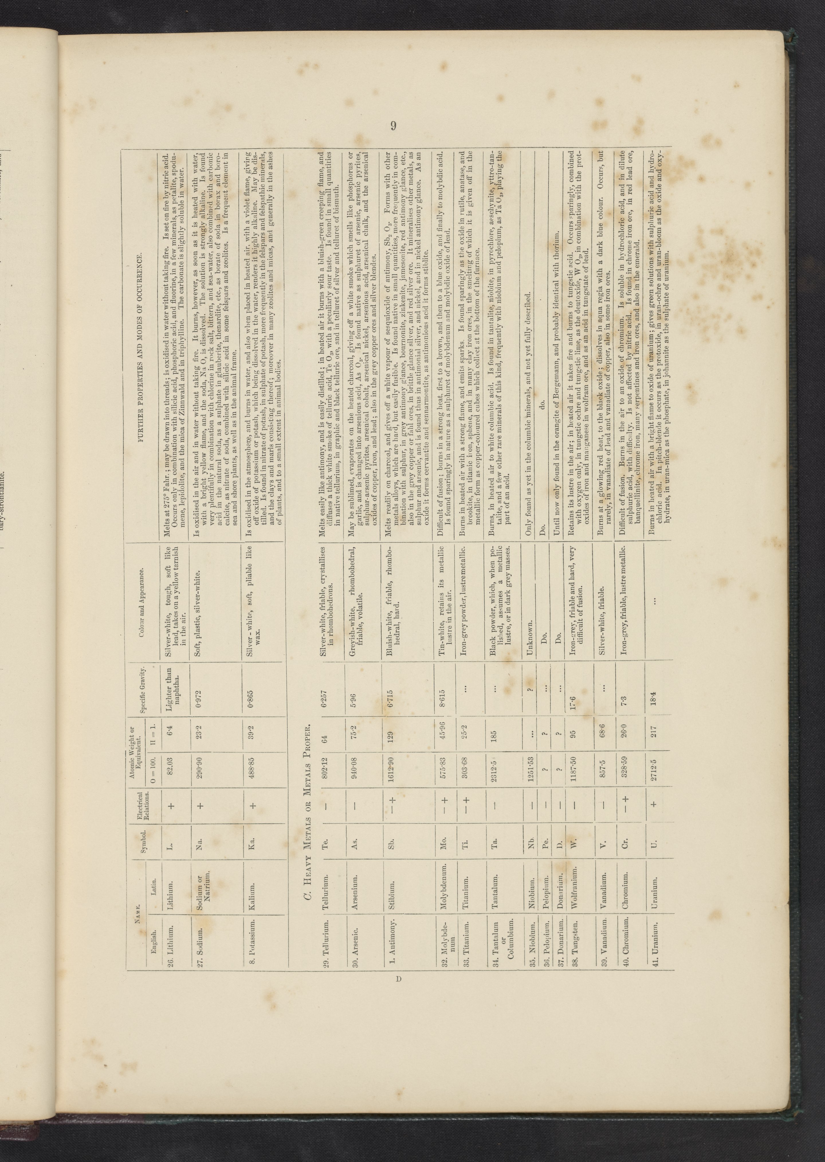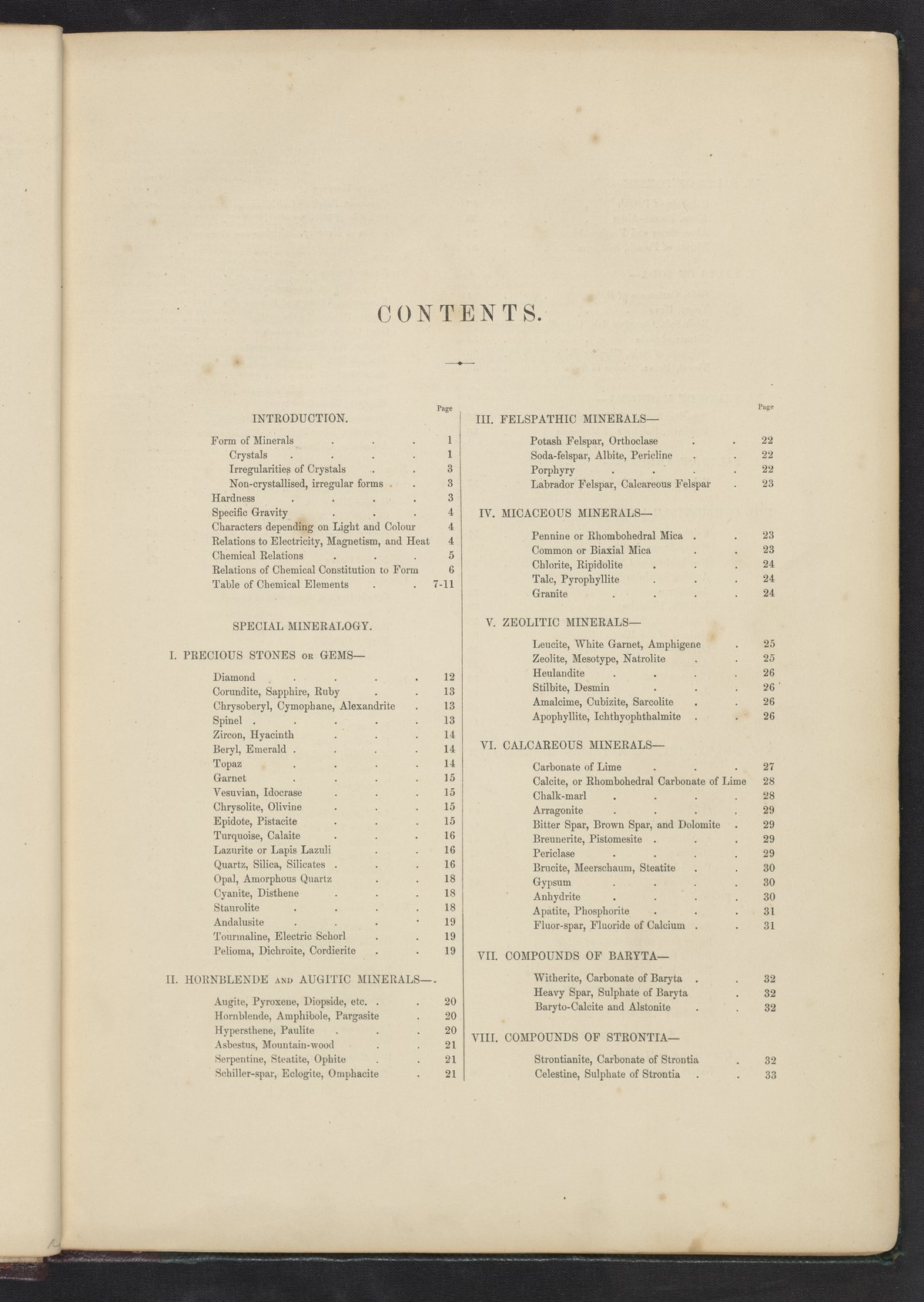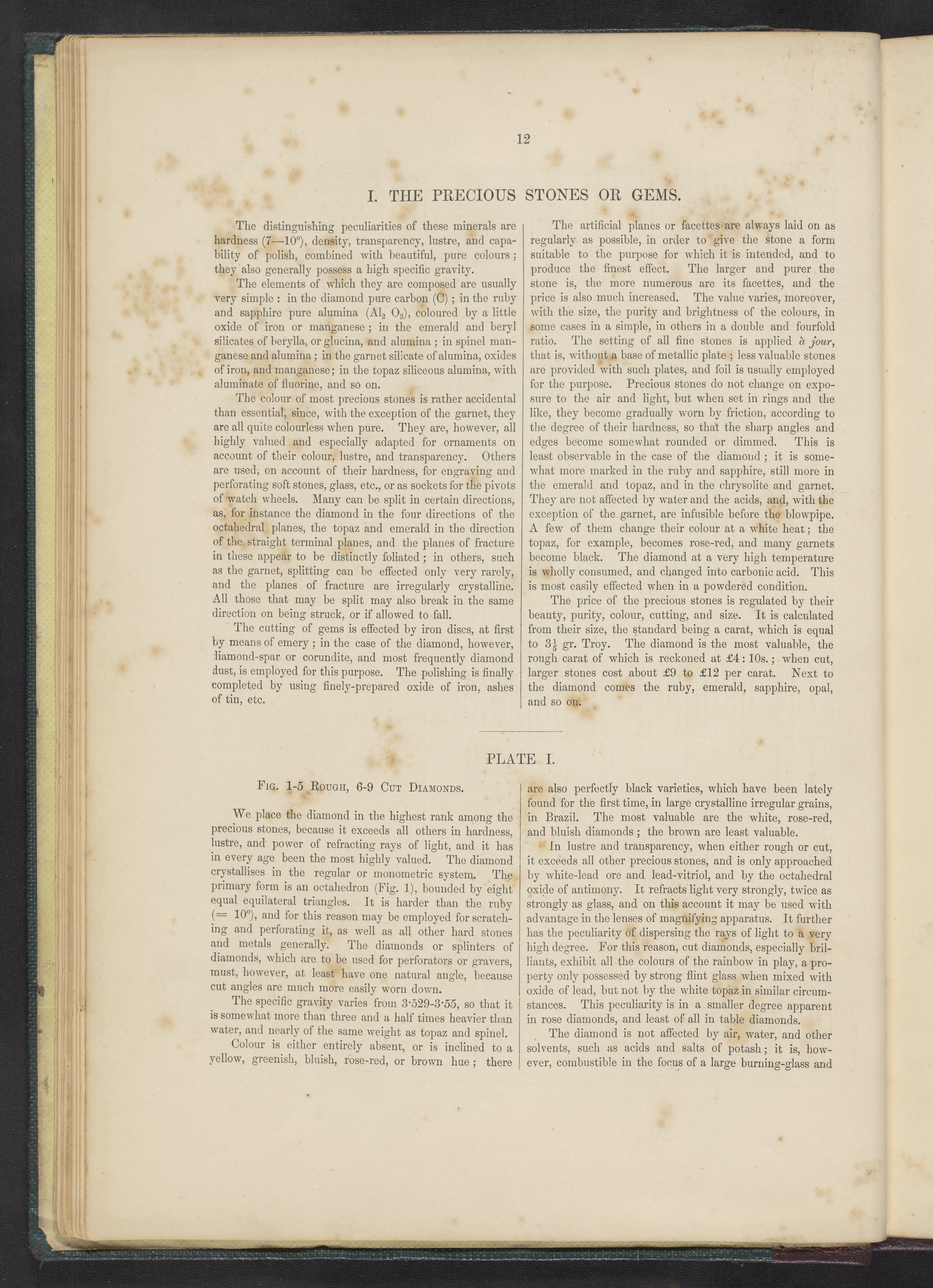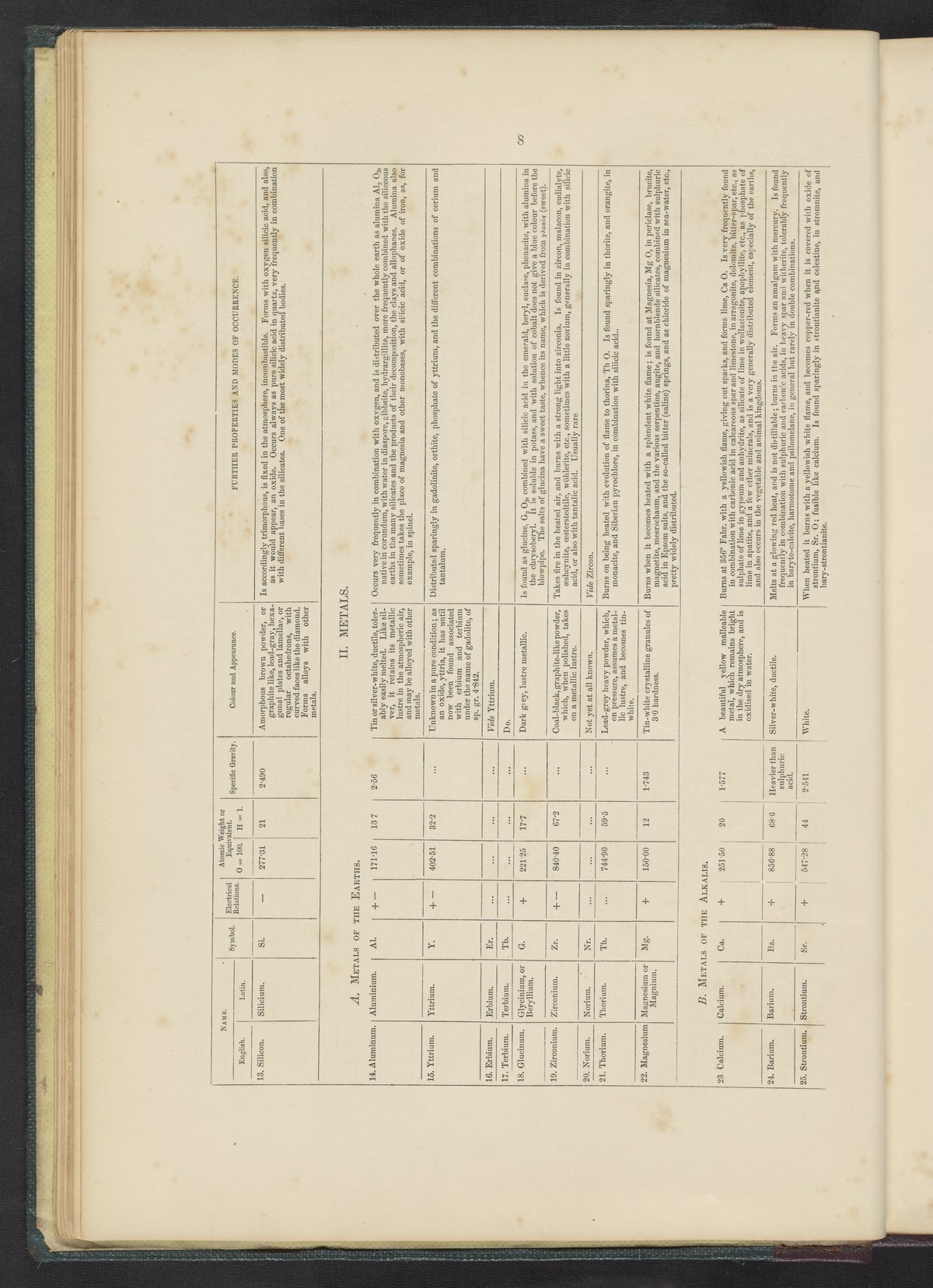 Small JPG1200 x 1673px — 459 KBLarge JPG2880 x 4015px — 2.5 MBFull-sized JPG6448 x 8990px — 9.9 MBOriginal fileTIFF — 6448 x 8990px — 166 MBJohann Gottlob von Kurr (1798-1870) published Das Mineralreich in Bildern as a professor of mineralogy and botany at the Stuttgart Polytechnic Institute in 1858. Digitized in entirety, this first edition English translation of the German Das Mineralreich in Bildern consists of two sections. The first is an introduction including topics such as the formation of crystals and chemical reactions of crystals. Of particular note is a five-page table of the chemical elements (pp. 7-11), consisting of two parts: I. Metalloids, nonmetallic elements; and II. Metals. The second section is devoted to the description of various mineral groups including precious stones, hornblende and augitic minerals, felspathic minerals, micaceous minerals, zeolitic minerals, calcareous minerals, and various salts and compounds. The final pages of the book contain twenty-four lithograph plates depicting crystalline structures and mineral forms. The plates are hand-colored, using metallic finishes to create a lustrous effect.