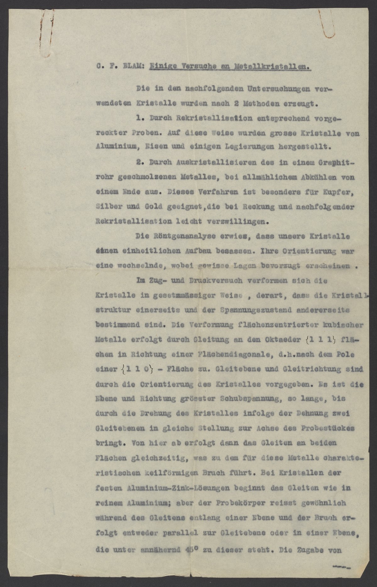 Small JPG1200 x 1869px — 335 KBLarge JPG2880 x 4484px — 2.1 MBFull-sized JPG5249 x 8173px — 7.0 MBOriginal fileTIFF — 5249 x 8173px — 123 MBA German translation of an experimental methodology written by Constance Fligg Elam Tipper (1891-1995), an English metallurgist and crystallographer. Elam was the first female full-time faculty member at the Cambridge University Department of Engineering.