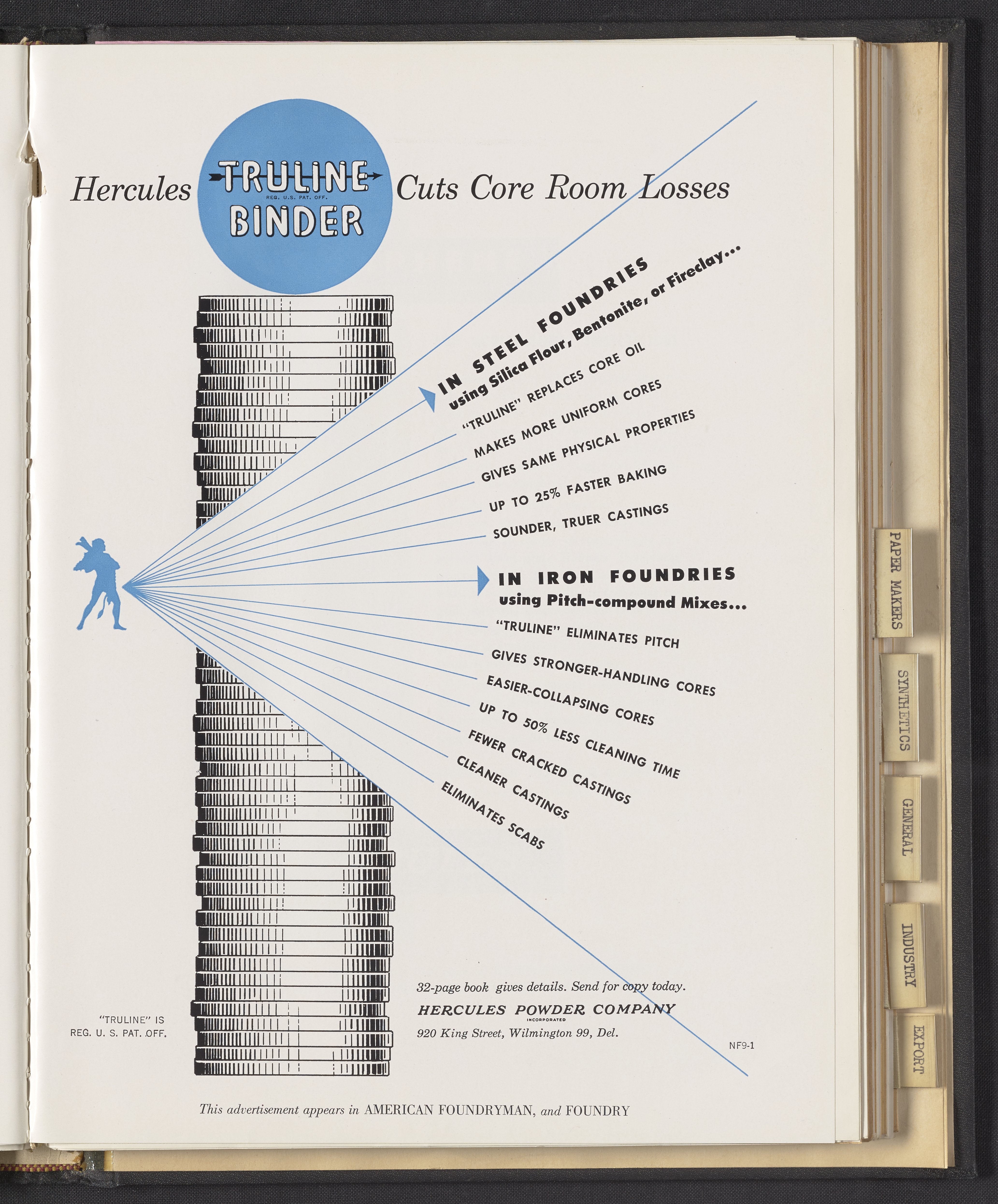 Hercules Incorporated. “Hercules Truline Binder Cuts Core Room Losses.” 1949 Hercules Advertisements, 1949. Records of Hercules Incorporated, Volume 1949. Science History Institute. Philadelphia. https://digital.sciencehistory.org/works/pv63g1088.