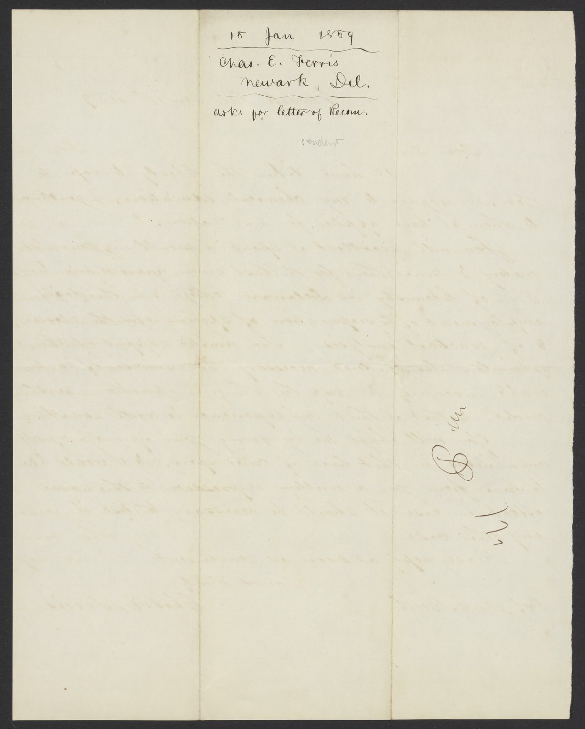 Ferris, Charles. “Letter from Charles Ferris to James Curtis Booth, January 15, 1859,” January 15, 1859. Papers of James Curtis Booth, Box 1, Folder 7. Science History Institute. Philadelphia. https://digital.sciencehistory.org/works/pvkmp6i.