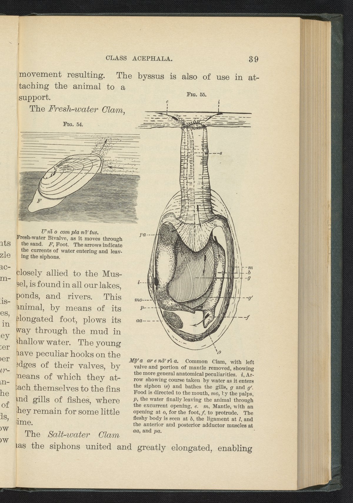 Steele, Joel Dorman, and Jenks, J. W. P. (John Whipple Potter). “Figure 54. Fresh-Water Bivalve. Figure 55. Common Clam .” Popular Zoology. New York, New York: Chautauqua Press, 1887. https://digital.sciencehistory.org/works/pwnrm49.