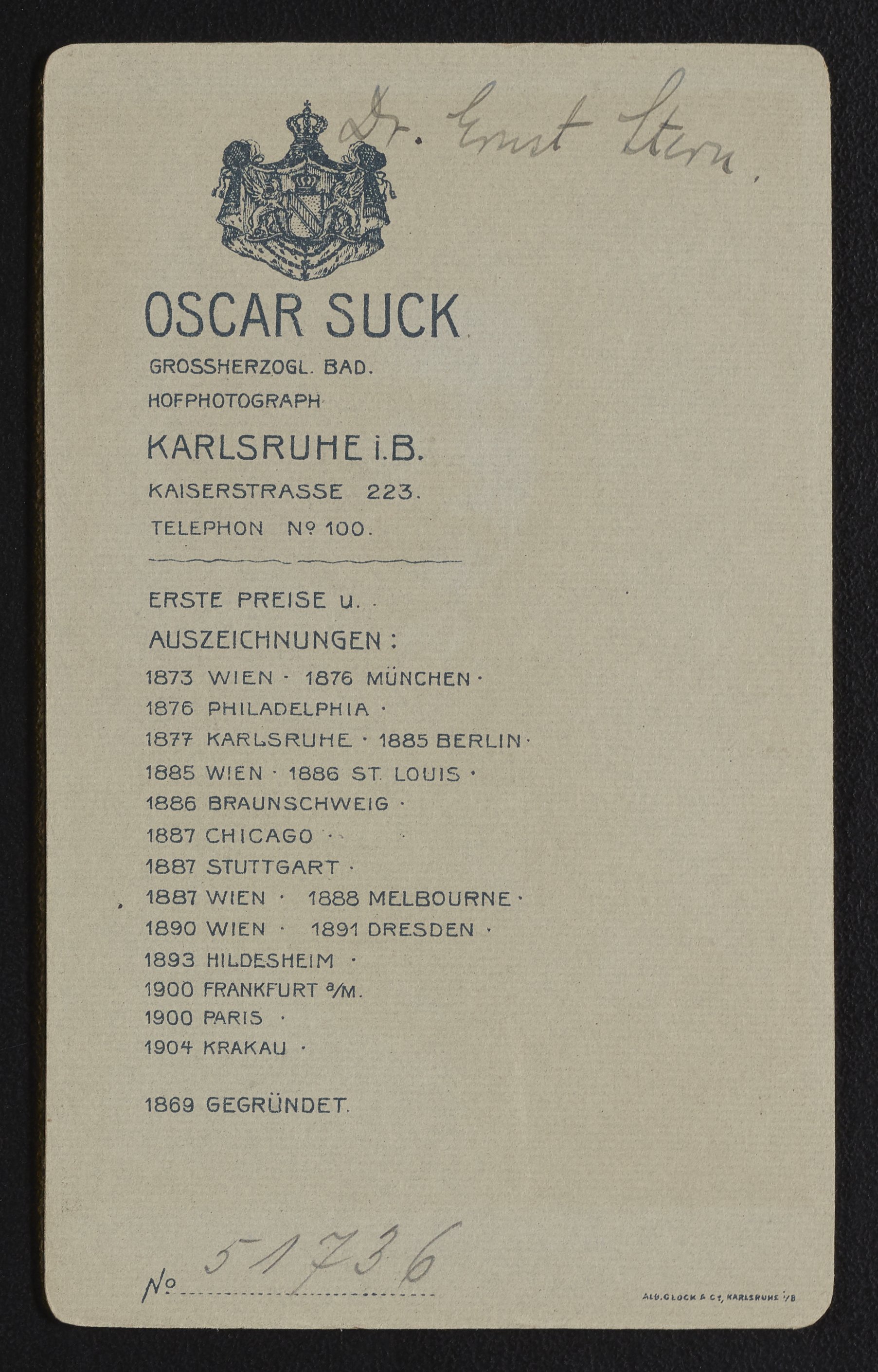 Suck, Oscar. “Portrait of Ernst Stern,” circa 1904. Papers of Georg and Max Bredig, Box 21. Science History Institute. Philadelphia. https://digital.sciencehistory.org/works/px8fhrm.