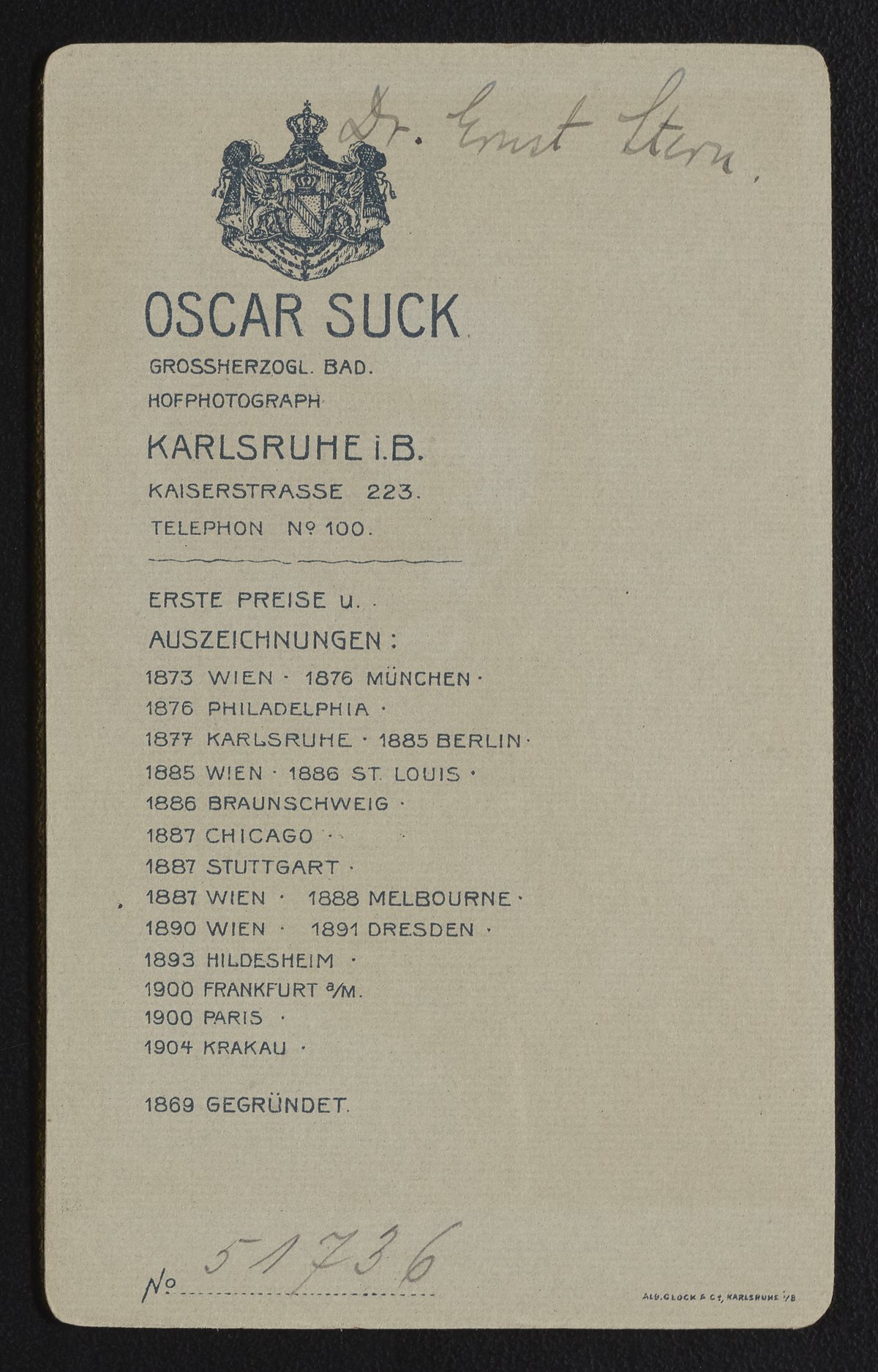 Small JPG1200 x 1875px — 287 KBFull-sized JPG1805 x 2820px — 595 KBOriginal fileTIFF — 1805 x 2820px — 14.6 MBBlack and white portrait of Ernst Stern, taken in Karlsruhe Germany. Stern was a German psychiatrist, psychologist, and educator who was known for his work in psychosomatics and as a clinical psychologist. Stern attended the Technical University of Karlsruhe for electrical engineering.