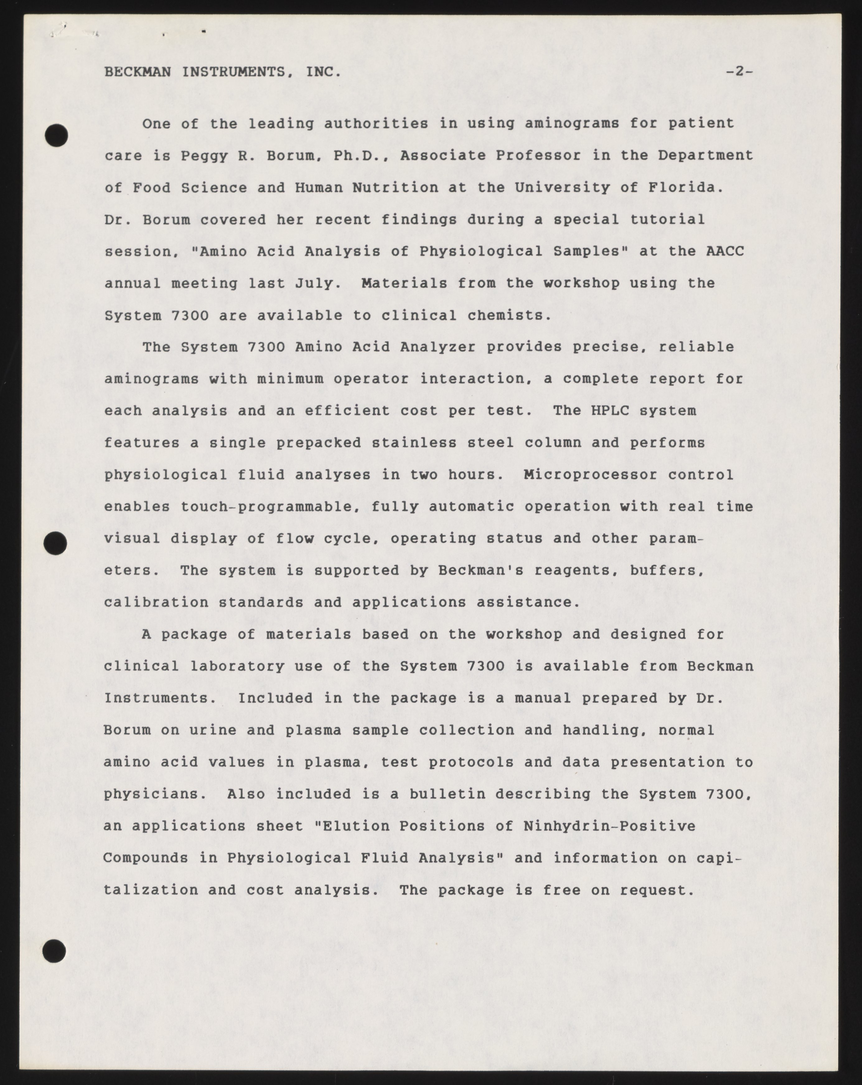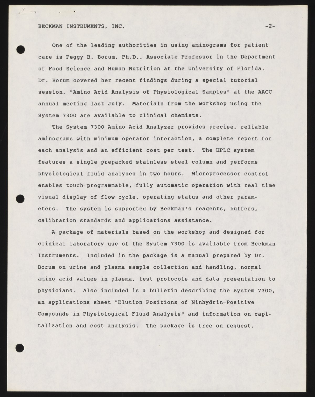 Aminograms for Clinical Patient Assessment Routinely Performed on Beckman System 7300