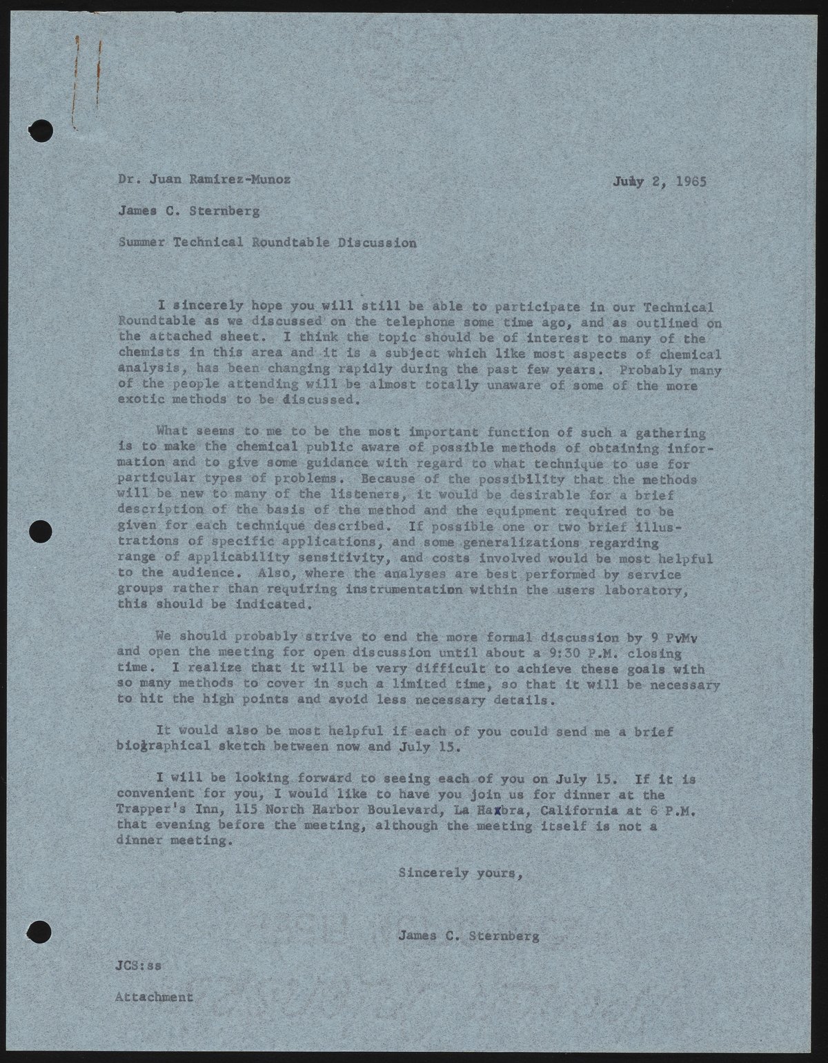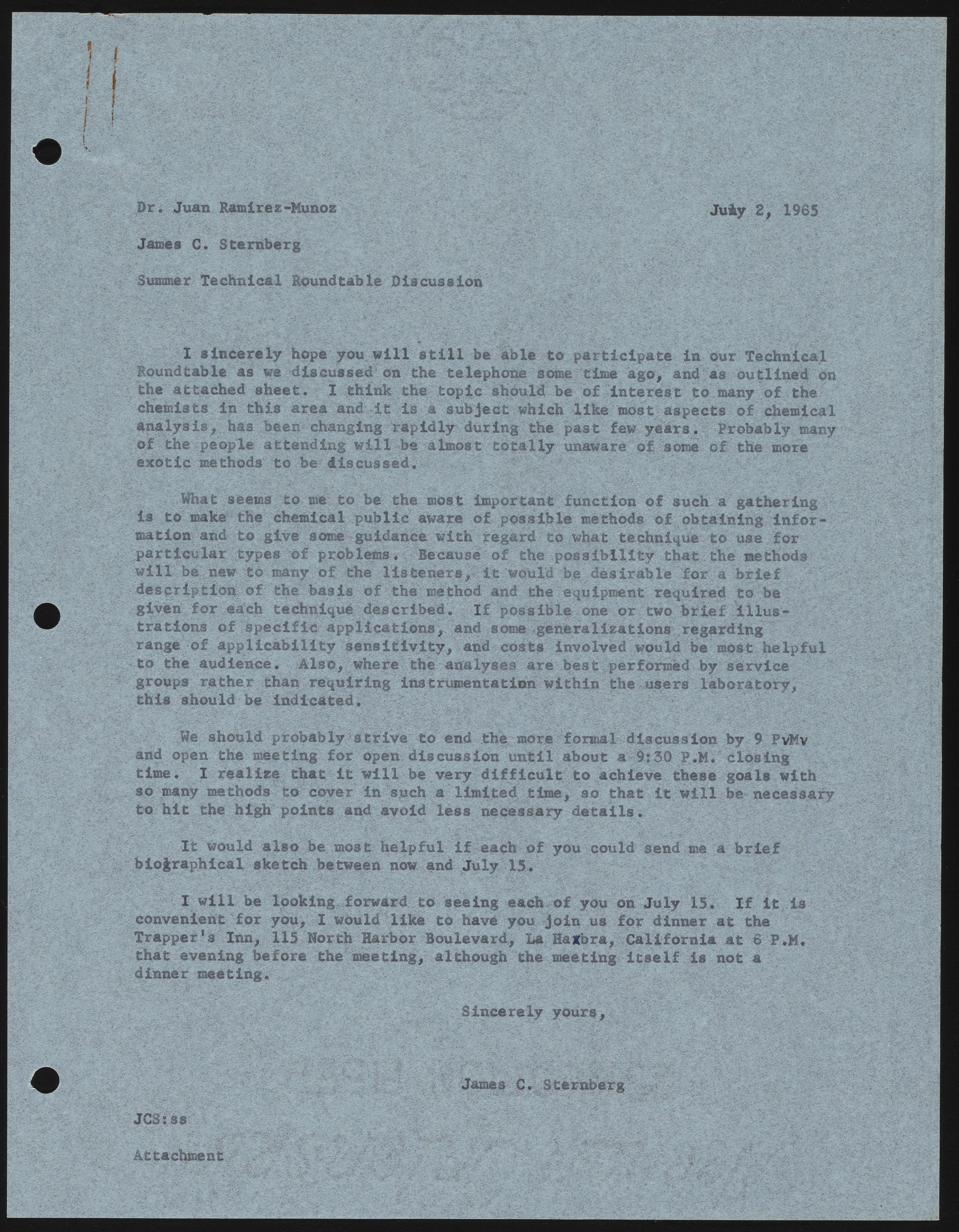 Letter from James C. Sternberg to Dr. Juan Ramirez-Munoz