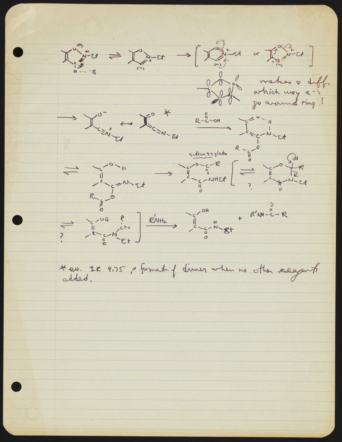Kohler, Robert E. “Untitled Page from R. B. (Robert Burns) Woodward Seminars.” Notes from R. B. (Robert Burns) Woodward's Seminars, circa 1959–1966. Folder 2. Science History Institute. Philadelphia. https://digital.sciencehistory.org/works/q237hs87b.
