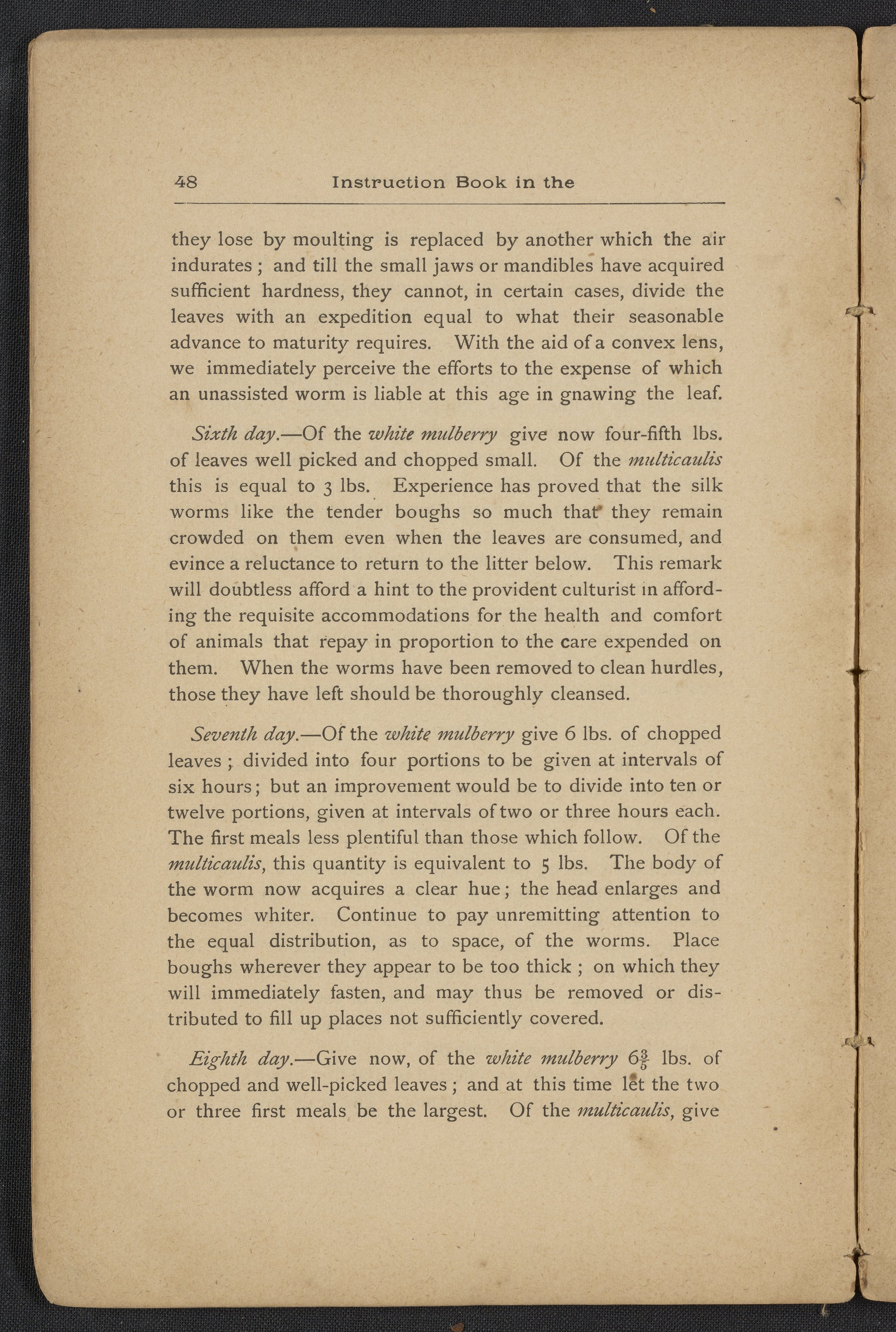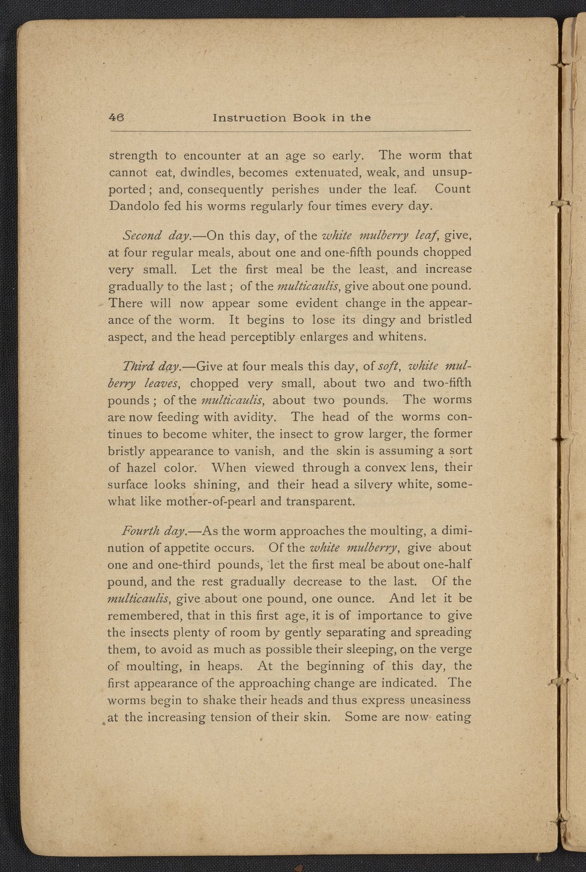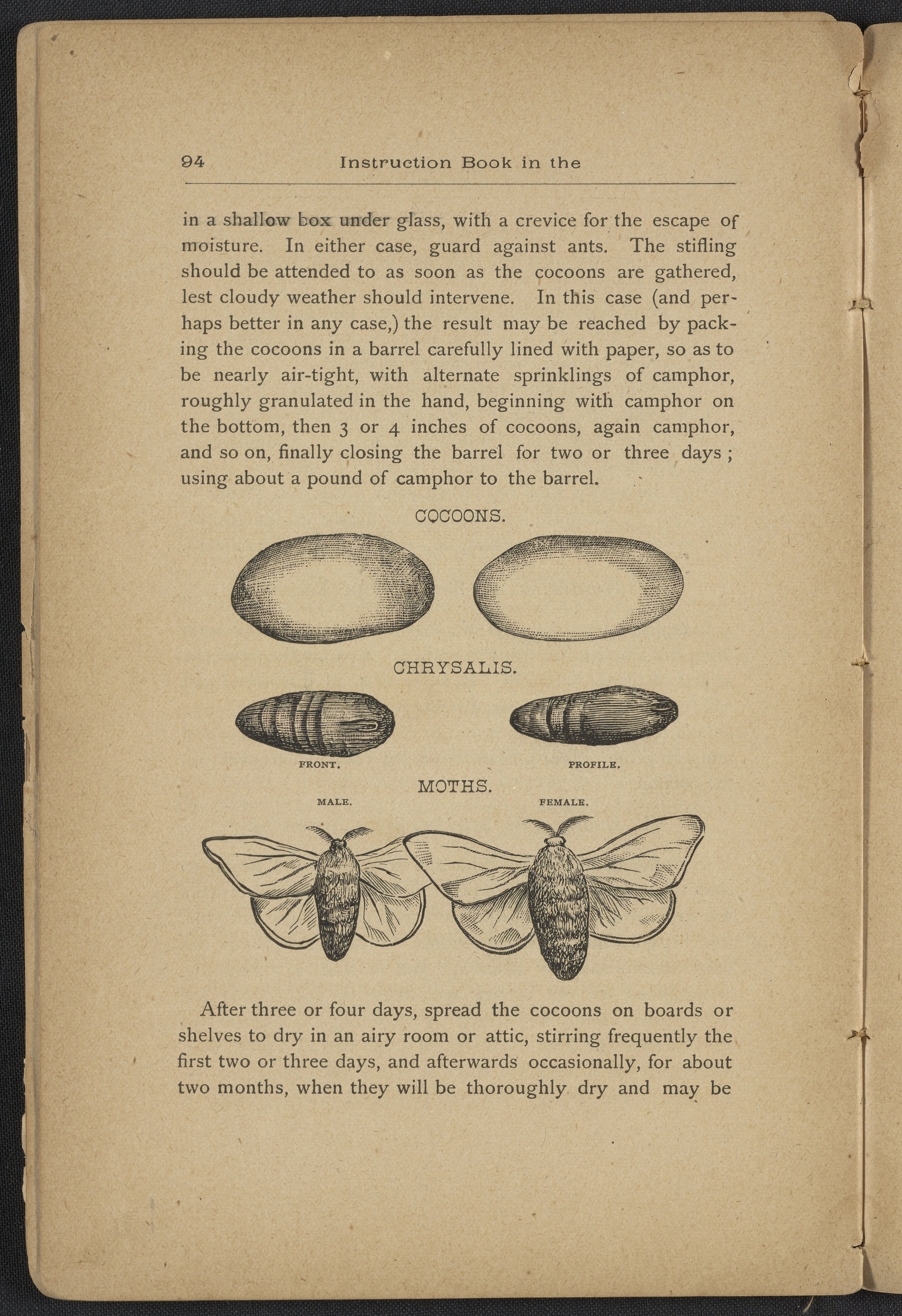 Small JPG1200 x 1795px — 406 KBLarge JPG2880 x 4308px — 2.3 MBFull-sized JPG3806 x 5693px — 3.8 MBOriginal fileTIFF — 3806 x 5693px — 62.0 MBAn instruction book compiled by the Women's Silk Culture Association to encourage the development of an industry in the United States for the culture of raw silk. The book was compiled from various authorities on sericulture, such as Felix Gillet, John Clarke, Prof. H. C. Kerr, and Ira Dinock. The Women's Silk Culture Association was founded in Philadelphia, Pennsylvania in 1880 and partially funded by the United States Department of Agriculture. The U.S. silk industry employed many women and girls. The book includes many illustrations of silk worm cultivation and their life cycles.