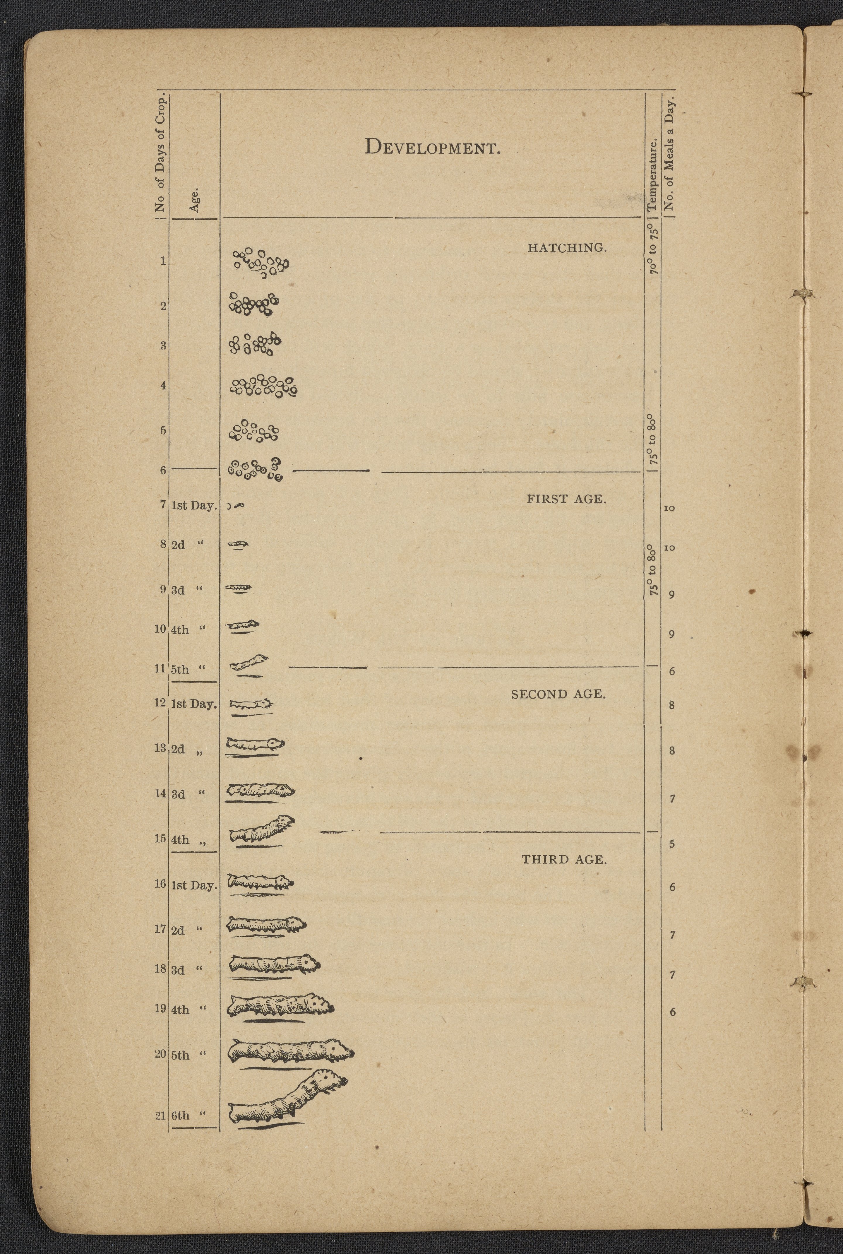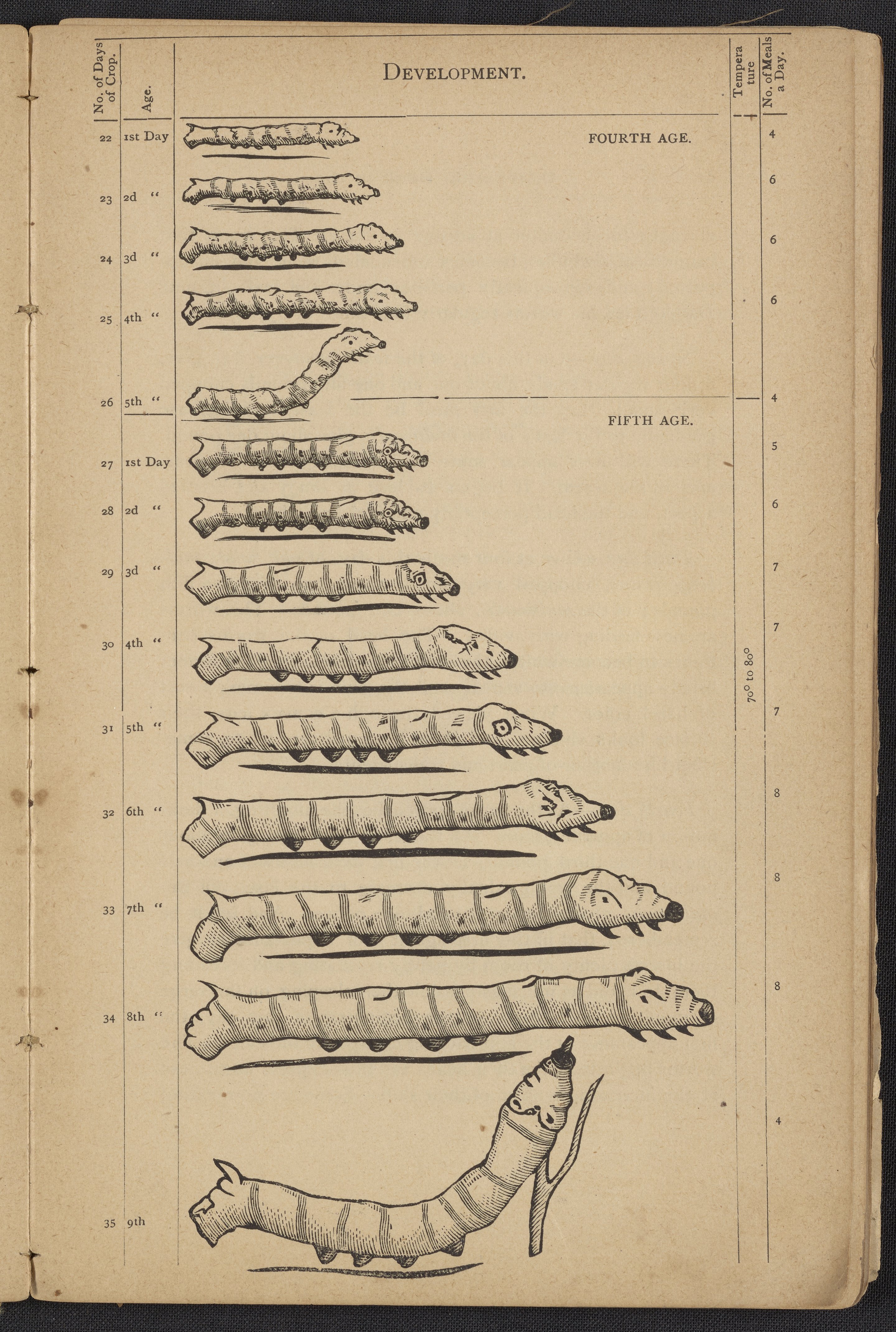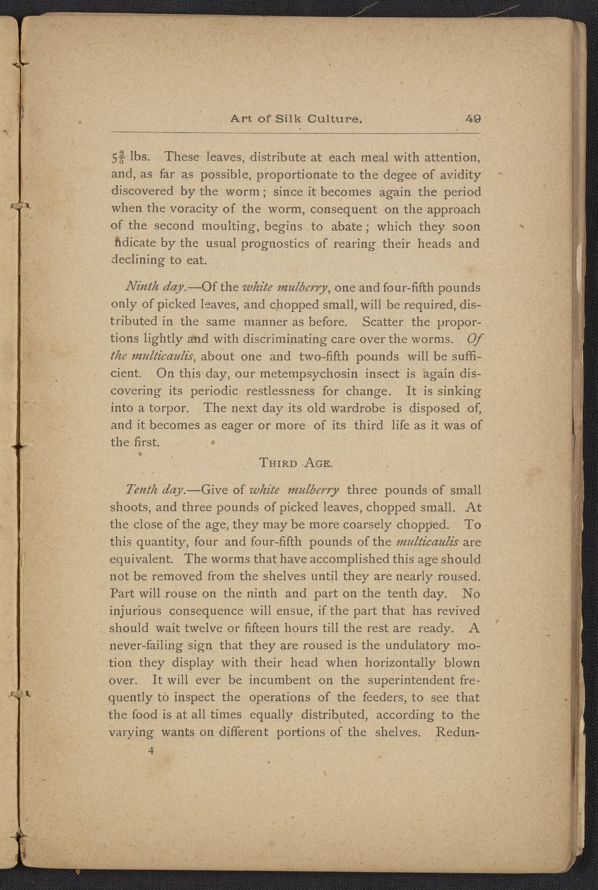 Small JPG1200 x 1795px — 406 KBLarge JPG2880 x 4308px — 2.3 MBFull-sized JPG3806 x 5693px — 3.8 MBOriginal fileTIFF — 3806 x 5693px — 62.0 MBAn instruction book compiled by the Women's Silk Culture Association to encourage the development of an industry in the United States for the culture of raw silk. The book was compiled from various authorities on sericulture, such as Felix Gillet, John Clarke, Prof. H. C. Kerr, and Ira Dinock. The Women's Silk Culture Association was founded in Philadelphia, Pennsylvania in 1880 and partially funded by the United States Department of Agriculture. The U.S. silk industry employed many women and girls. The book includes many illustrations of silk worm cultivation and their life cycles.