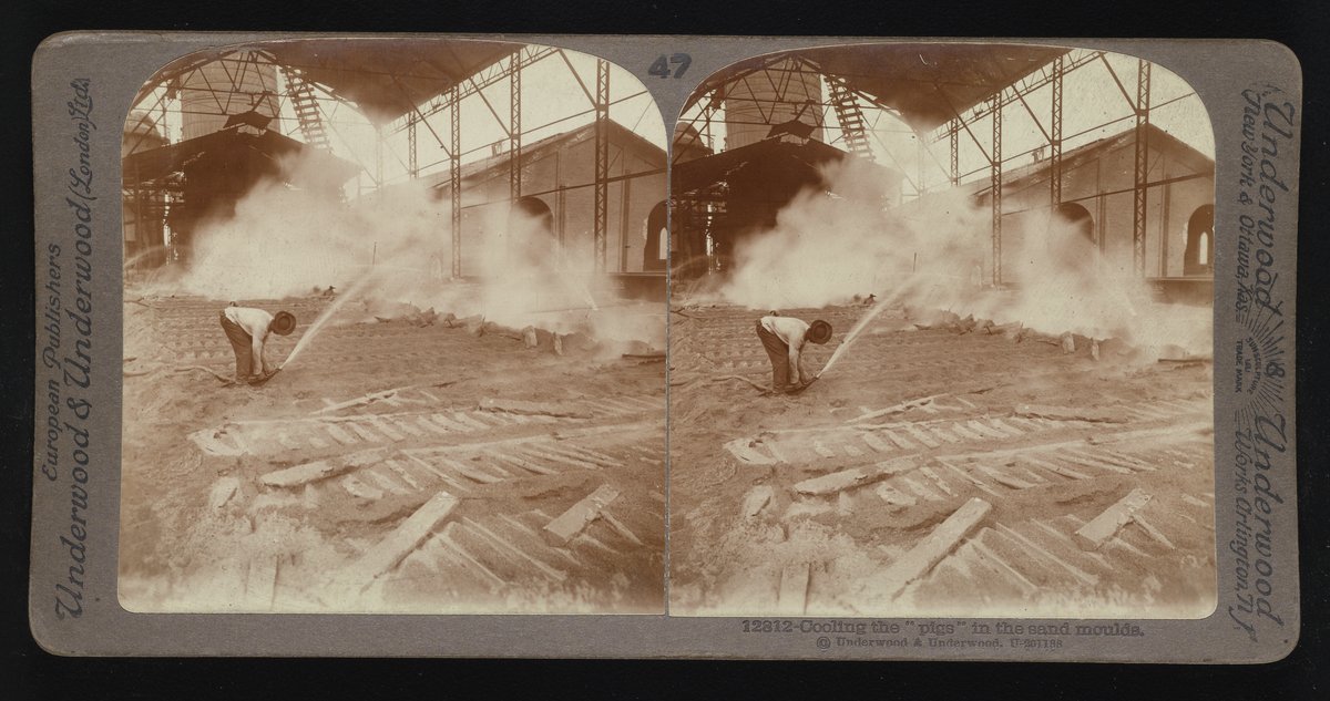 “Cooling the ‘Pigs’ in the Sand Moulds.” Underwood & Underwood, n.d. Underwood & Underwood Stereographs of Manufacturing Industries. Science History Institute. Philadelphia. https://digital.sciencehistory.org/works/q811kj61g.