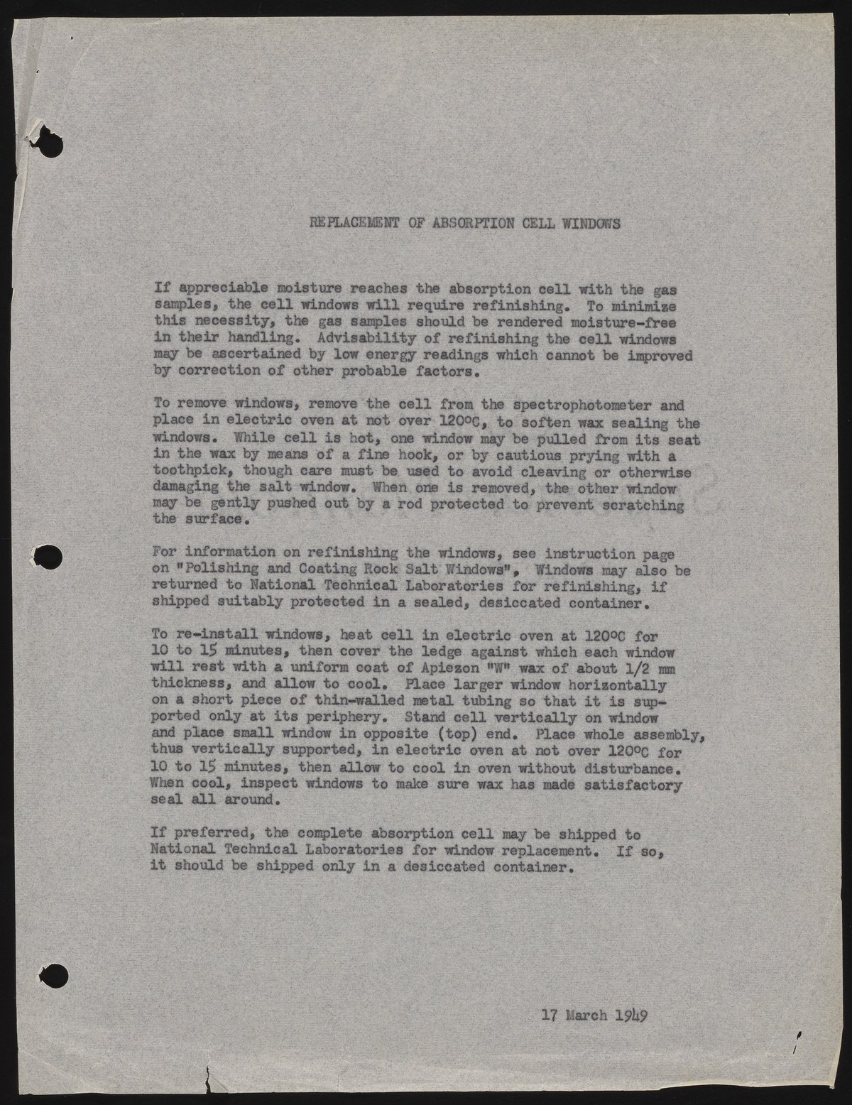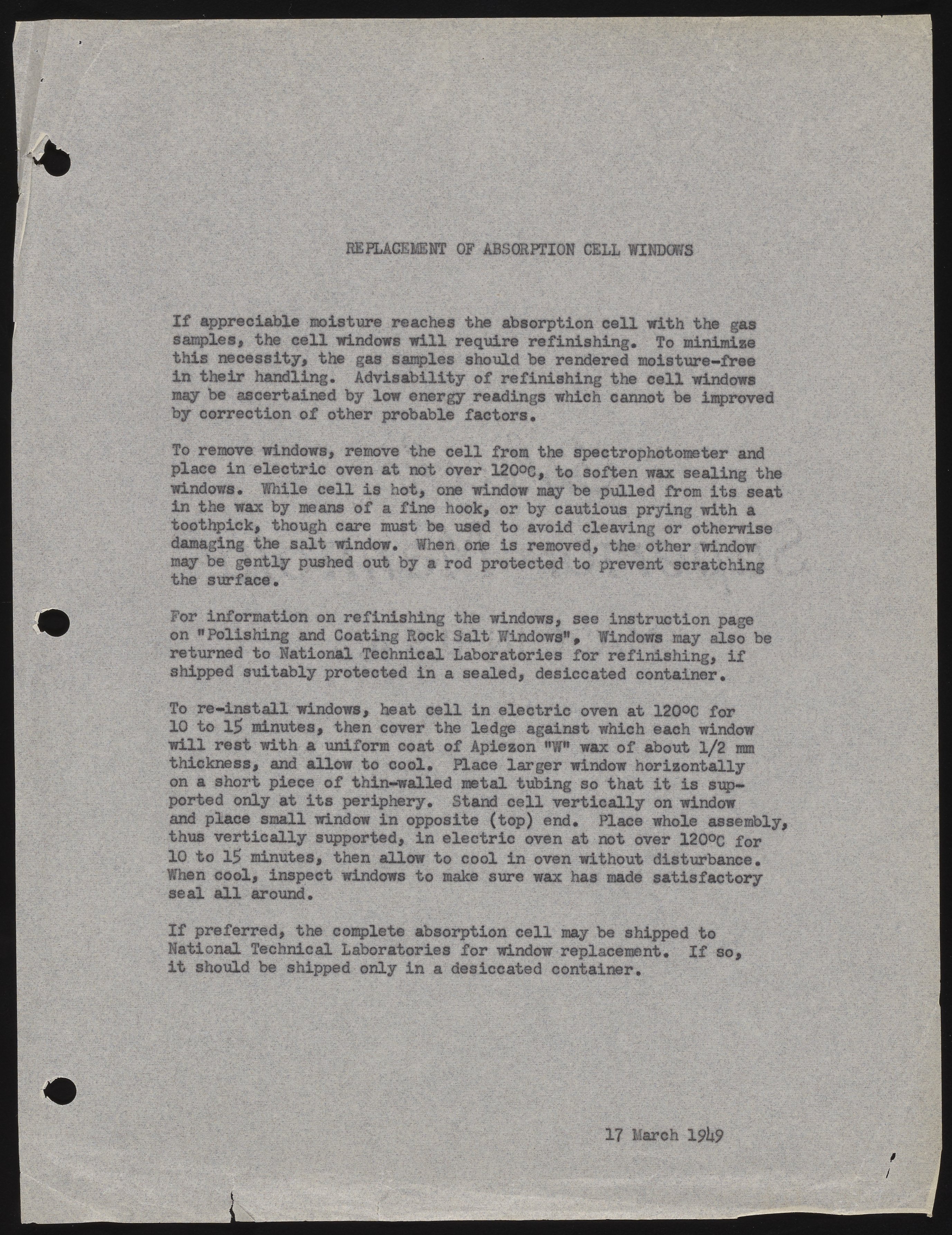 Guide to replacing absorption cell windows in Beckman IR spectrophotometer