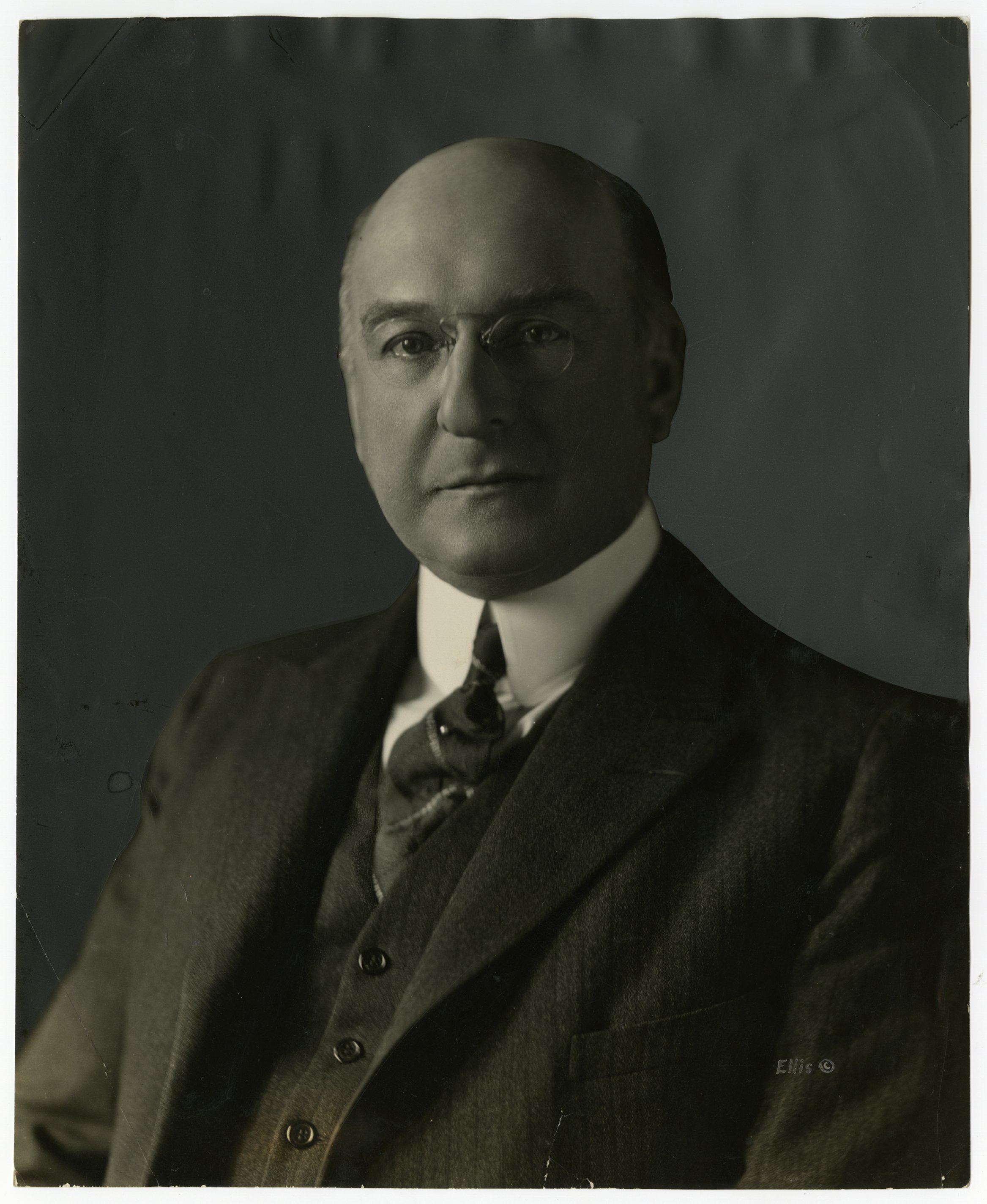 Portrait of Pierre Samuel du Pont (1870-1954), President of the the E.I. du Pont de Nemours & Company (1915-1919) and a member of the Board of Directors. A graduate of the Massachusetts Institute of Technology, he also managed General Motors from 1915-1920 and served on the company's Board of Directors until 1928.