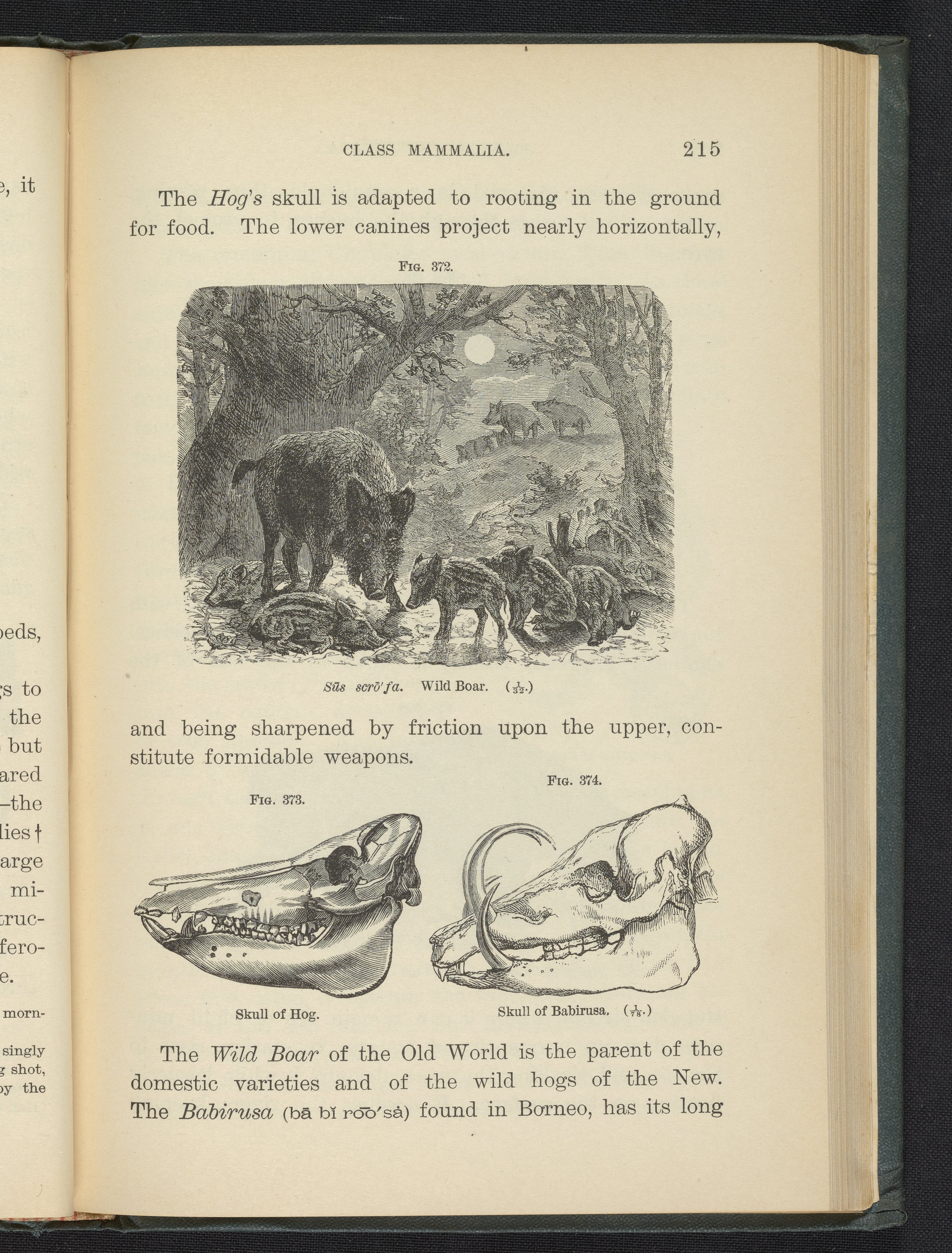 Steele, Joel Dorman, and Jenks, J. W. P. (John Whipple Potter). “Figure 372. Wild Boar. Figure 373. Skull of Hog. Figure 374. Skull of Babirusa.” Popular Zoology. New York, New York: Chautauqua Press, 1887. https://digital.sciencehistory.org/works/qeghii0.