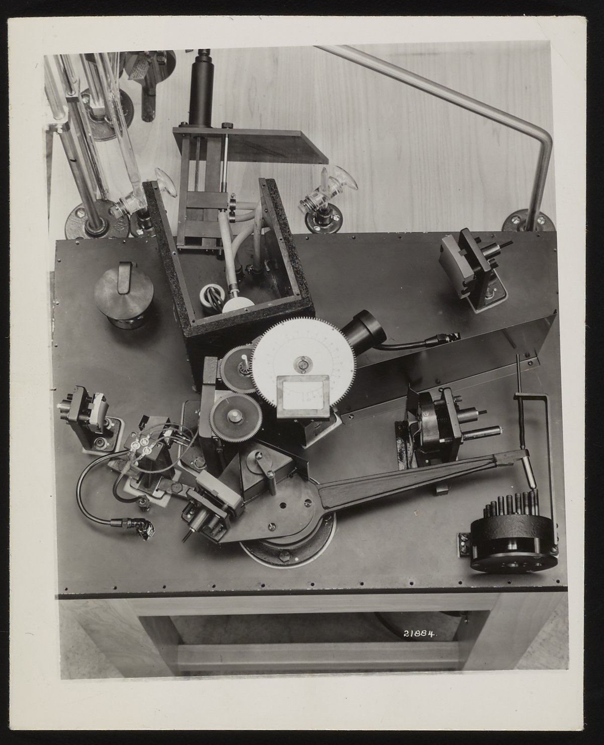 “Interior of Beckman IR-1 Spectrophotometer,” 1940–1949. Beckman Historical Collection, Box 59, Folder 34. Science History Institute. Philadelphia. https://digital.sciencehistory.org/works/qf85nb29f.