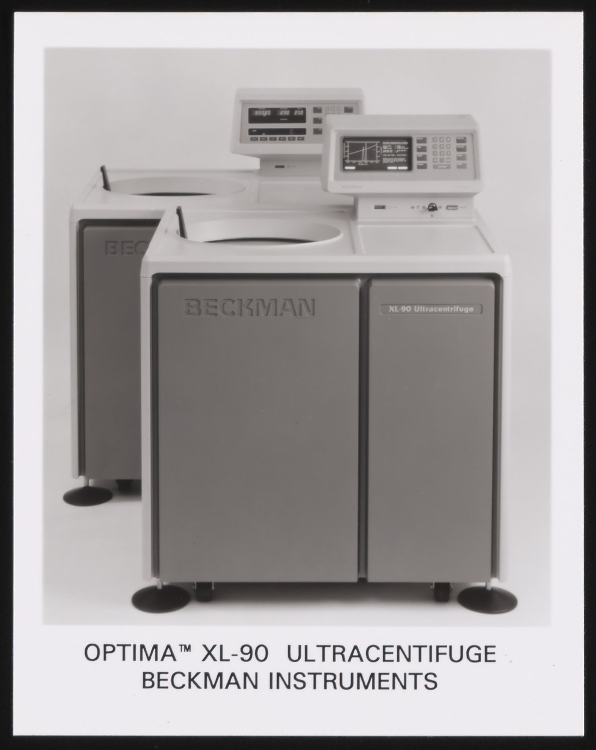 “Beckman Optima XL-90 Ultracentrifuge,” 1989–1998. Beckman Historical Collection, Box 77. Science History Institute. Philadelphia. https://digital.sciencehistory.org/works/qf85nb40f.