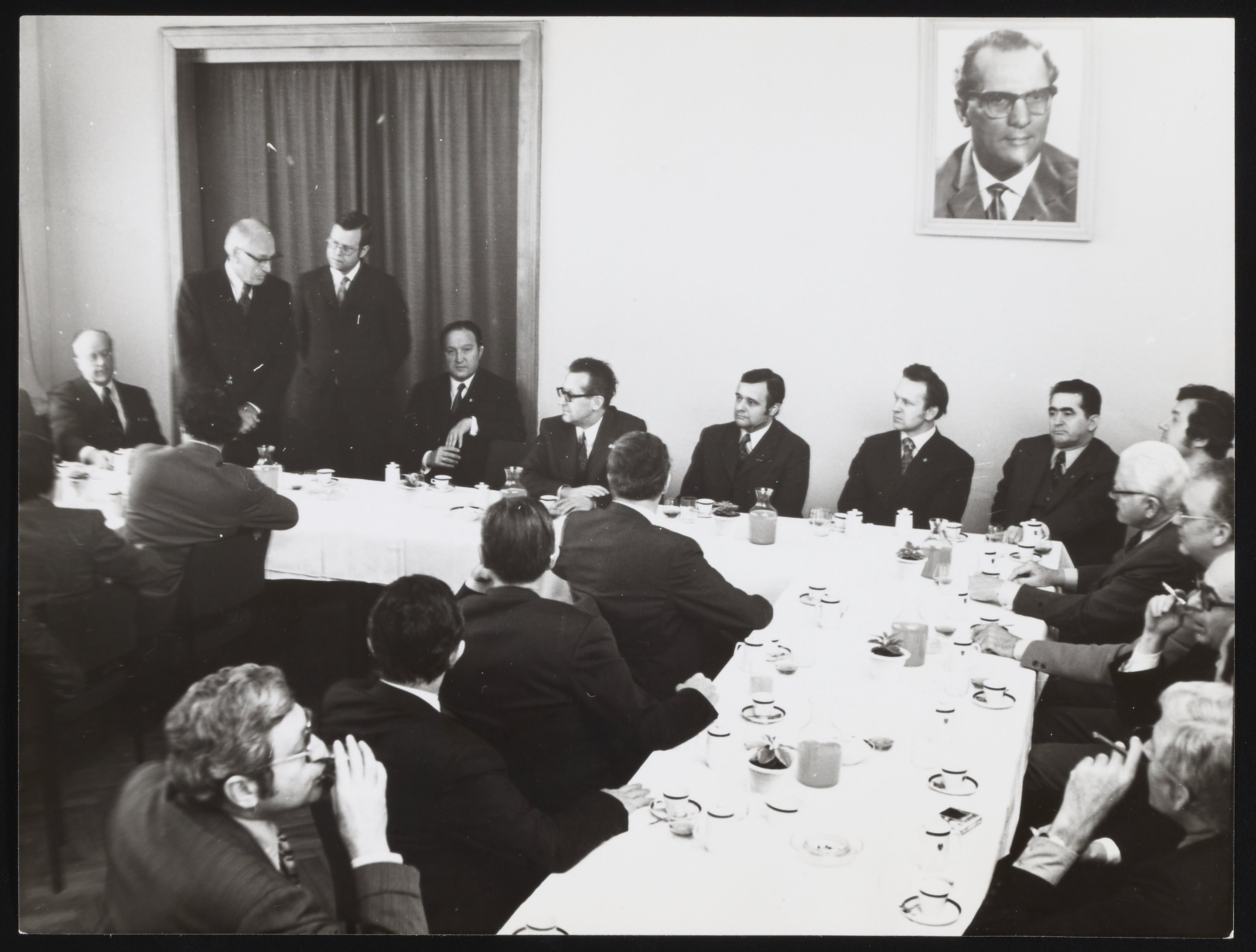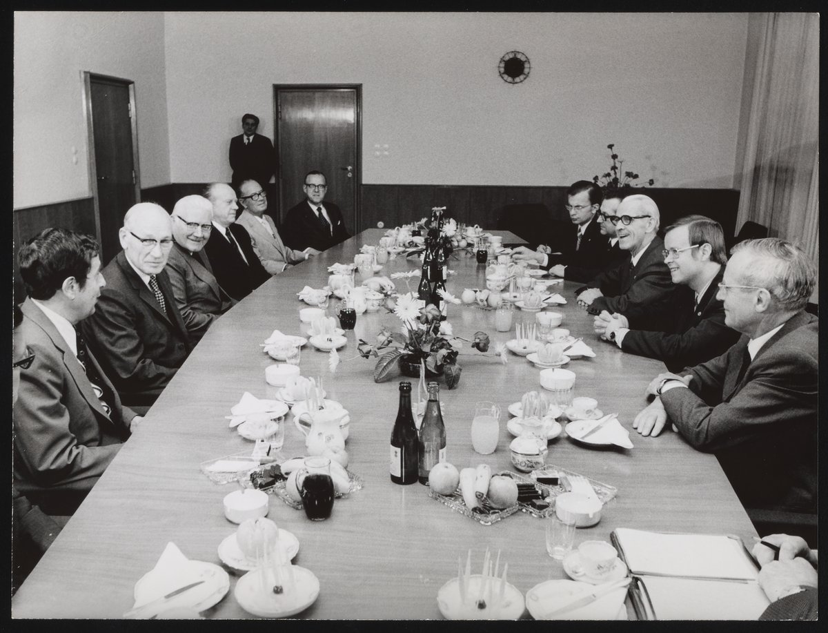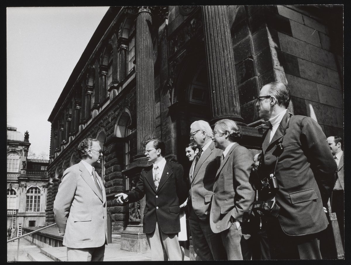 Small JPG1200 x 845px — 105 KBFull-sized JPG1633 x 1150px — 165 KBOriginal fileTIFF — 1633 x 1150px — 5.4 MBThe photographs document meetings and tours in Germany. A number of the larger photographs bear the stamp of ADN Zentralbild. The inscription on the 7 in. x 5 in. photographs states that it was taken in Berlin. The inscription on the color photograph states that it was taken on April 5, 1973, in Dresden, and identifies the individuals with Arnold Beckman as Carl Kotchian (Lockheed) and Marvin Lewis (Ralph W. Parson Co.).