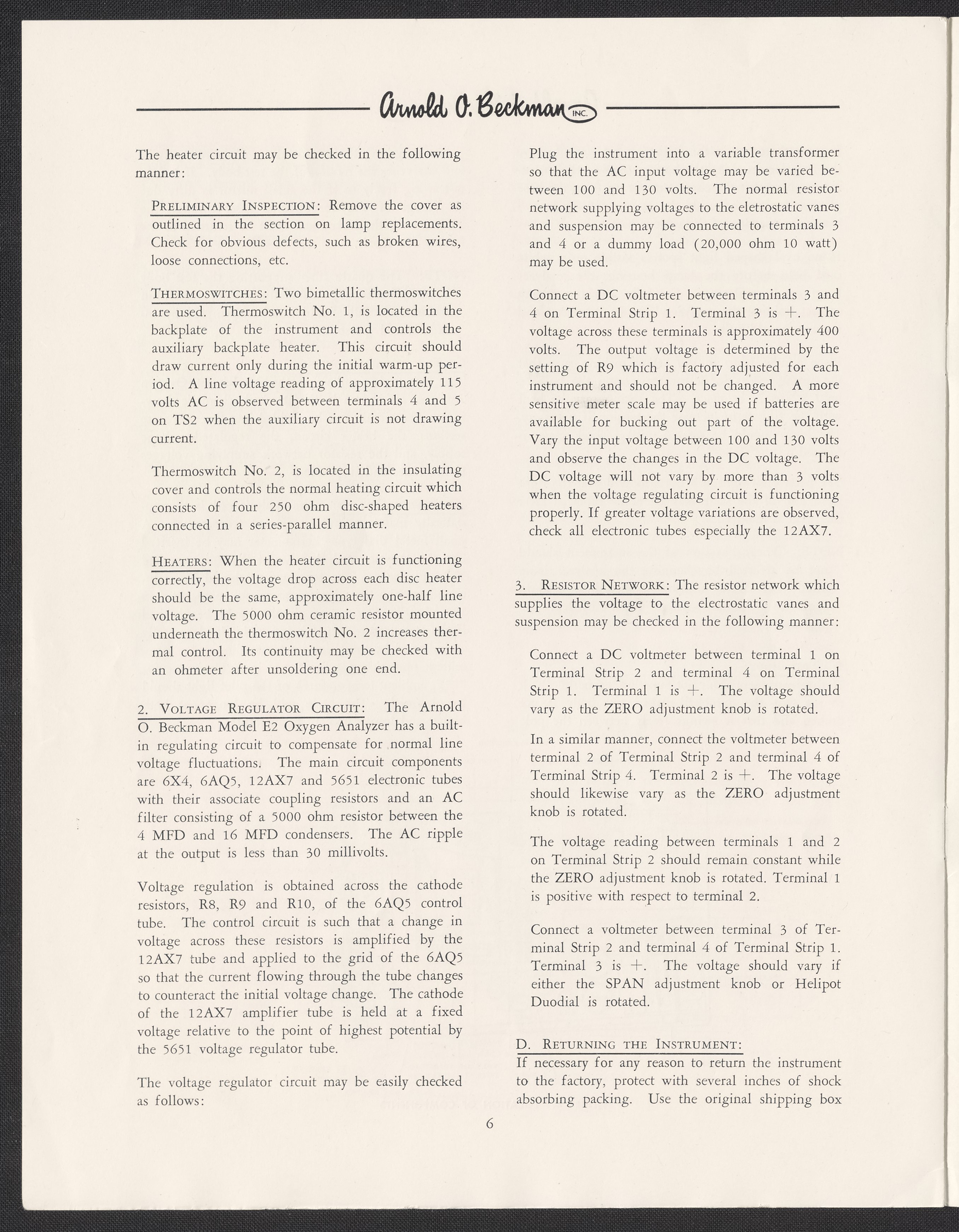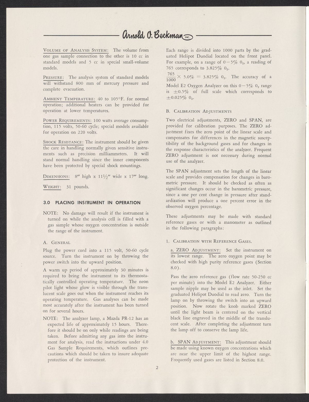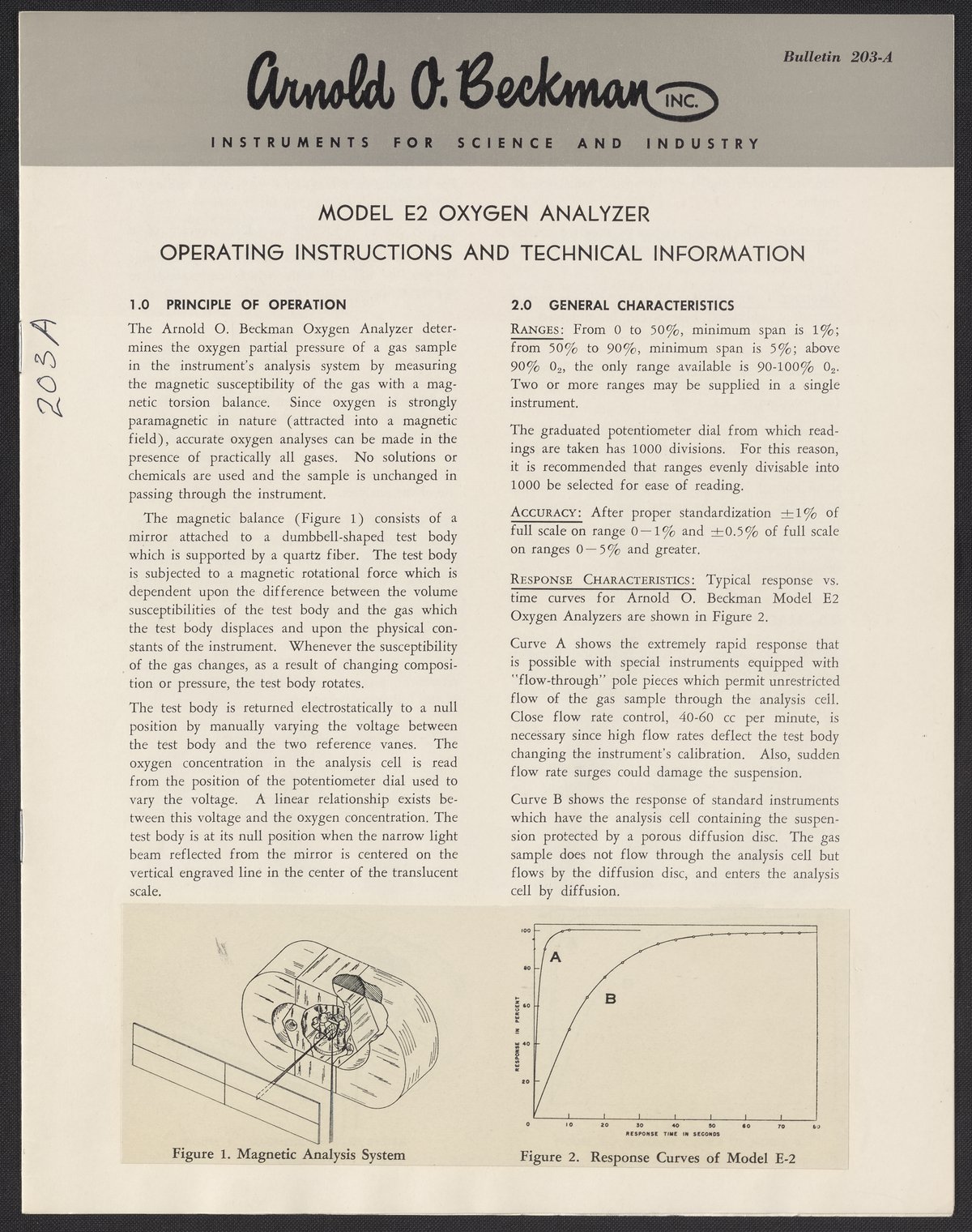 Beckman Instruments, Inc. “Model E2 Oxygen Analyzer Operating Instructions and Technical Information,” 1960–1969. Beckman Historical Collection, Box 19, Folder 7. Science History Institute. Philadelphia. https://digital.sciencehistory.org/works/qf85nb994.