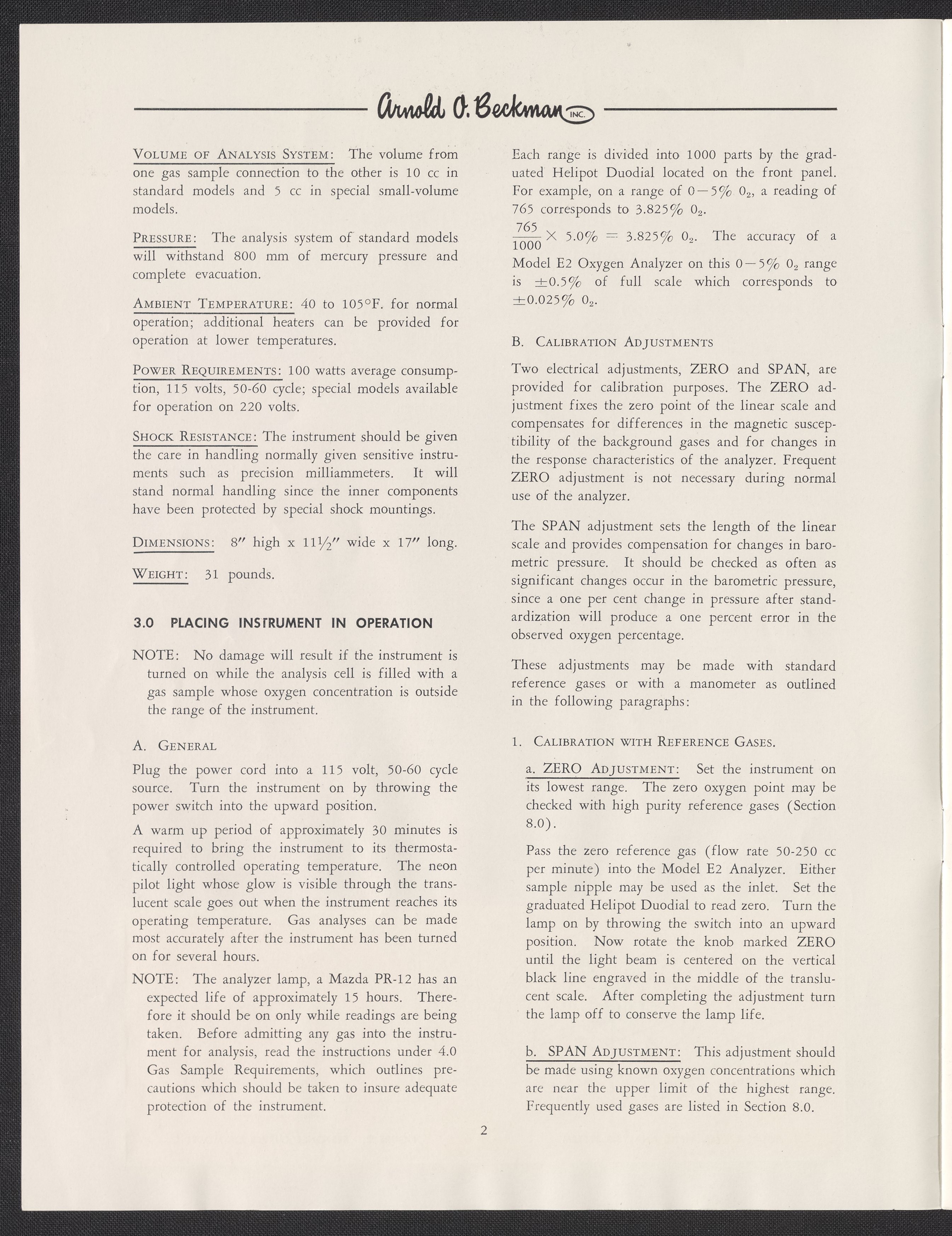 Model E2 Oxygen Analyzer Operating Instructions and Technical Information
