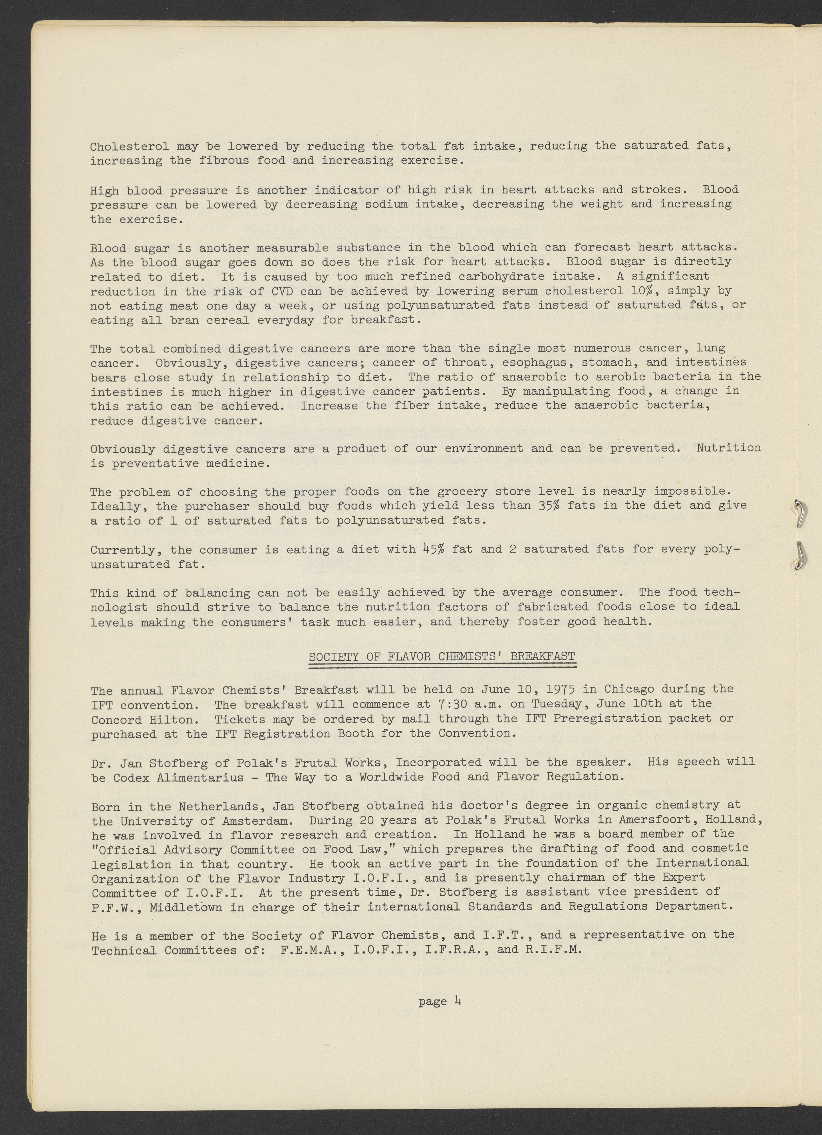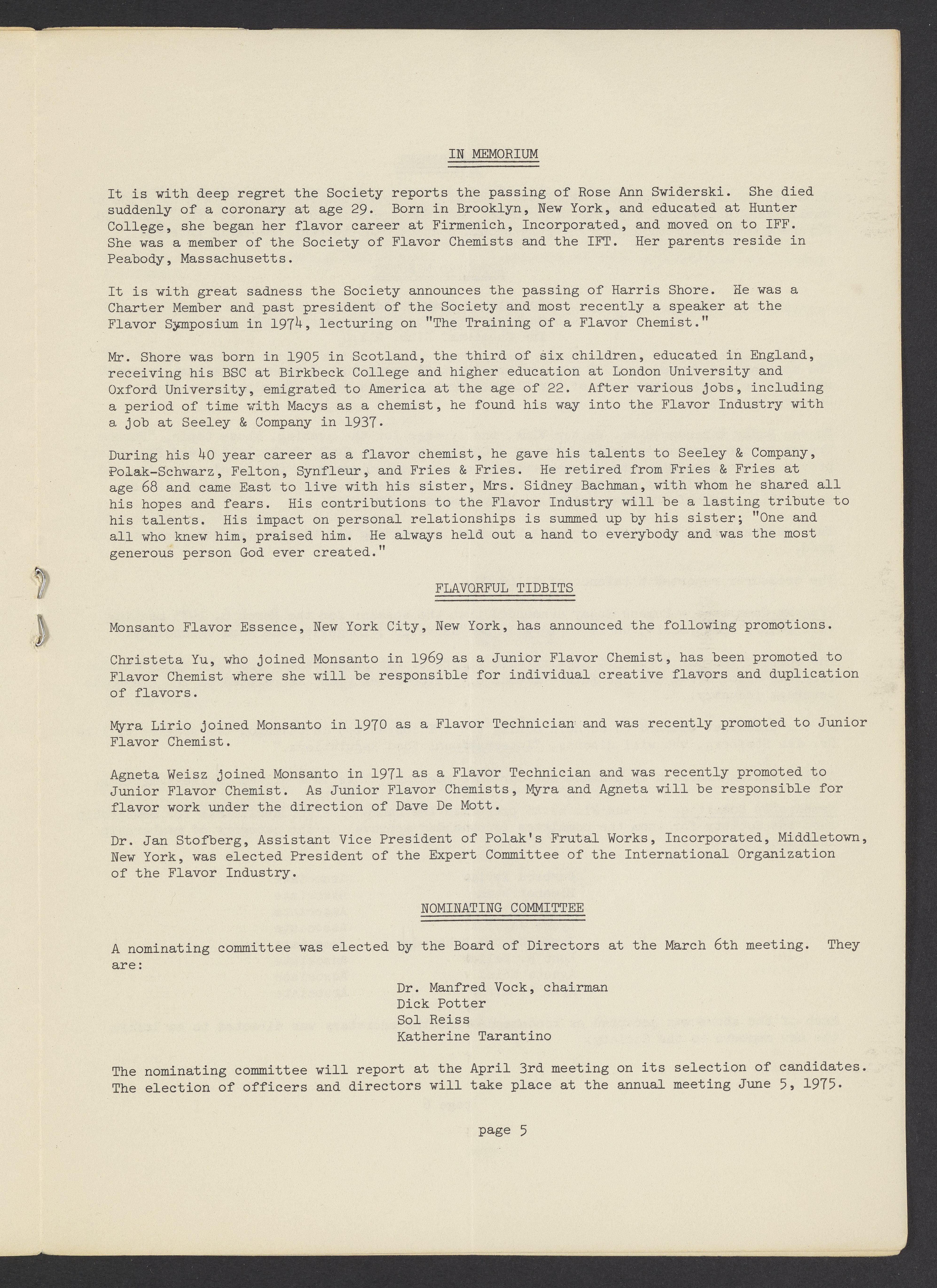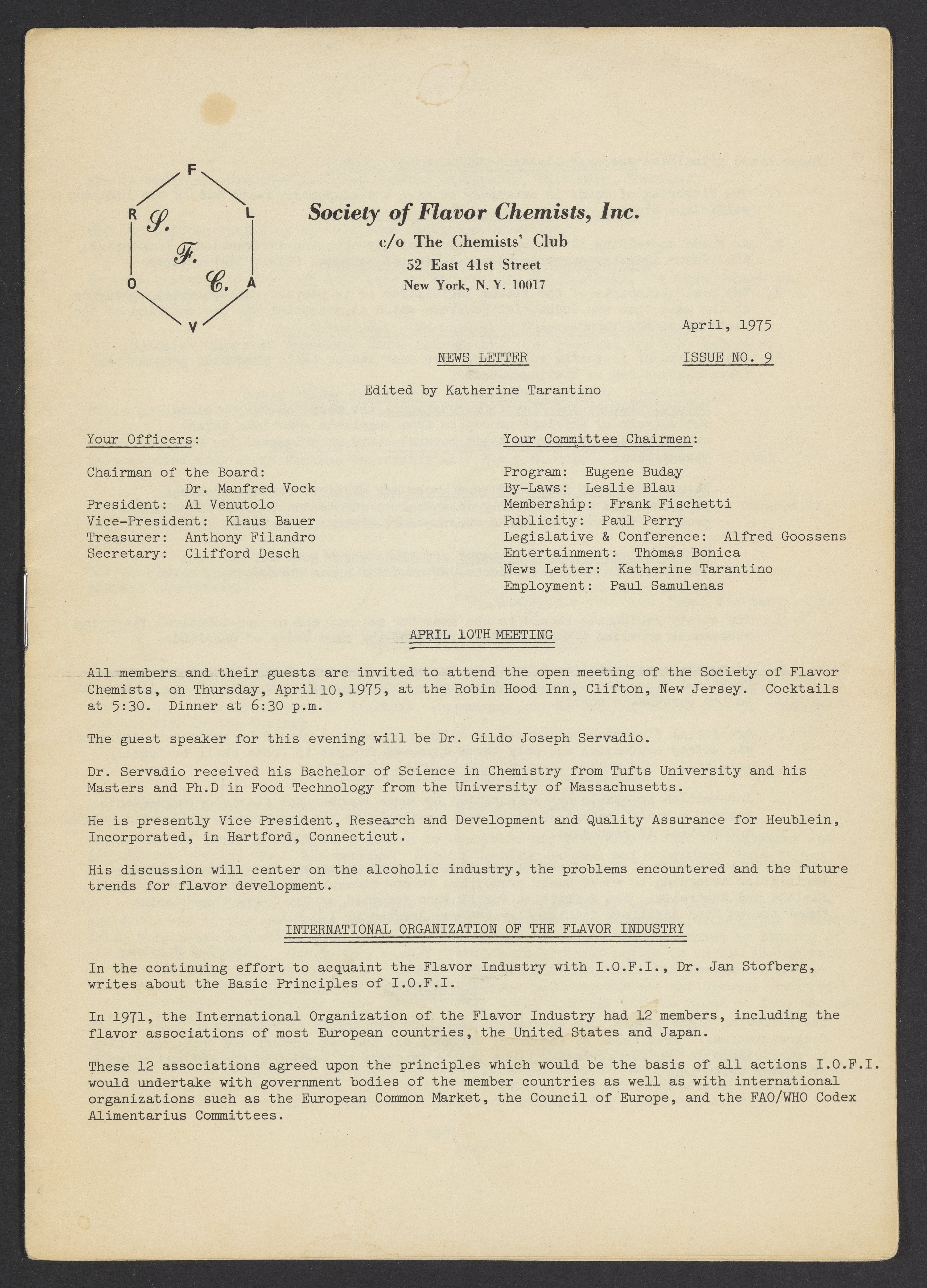 Society of Flavor Chemists newsletter, April 1975