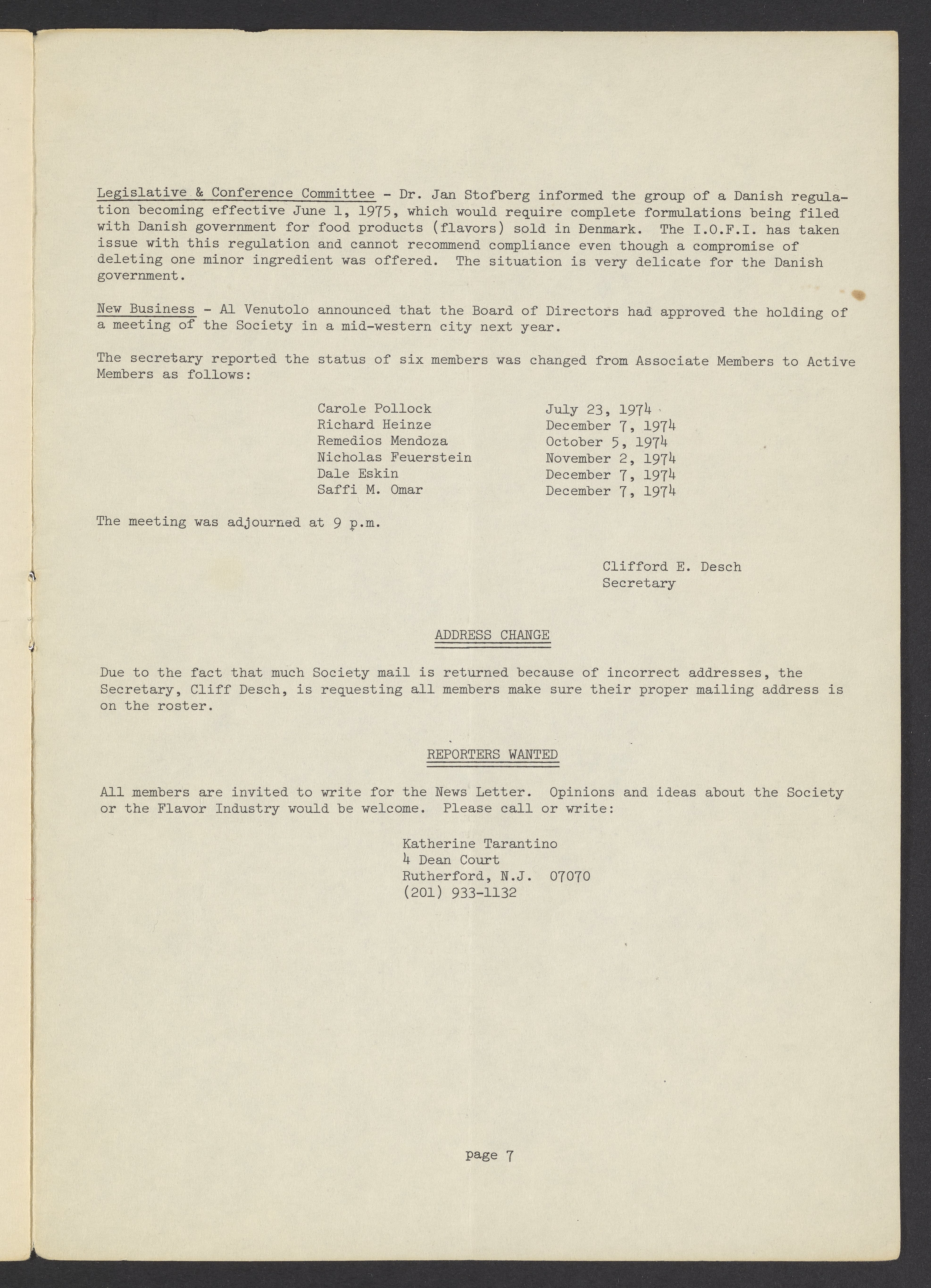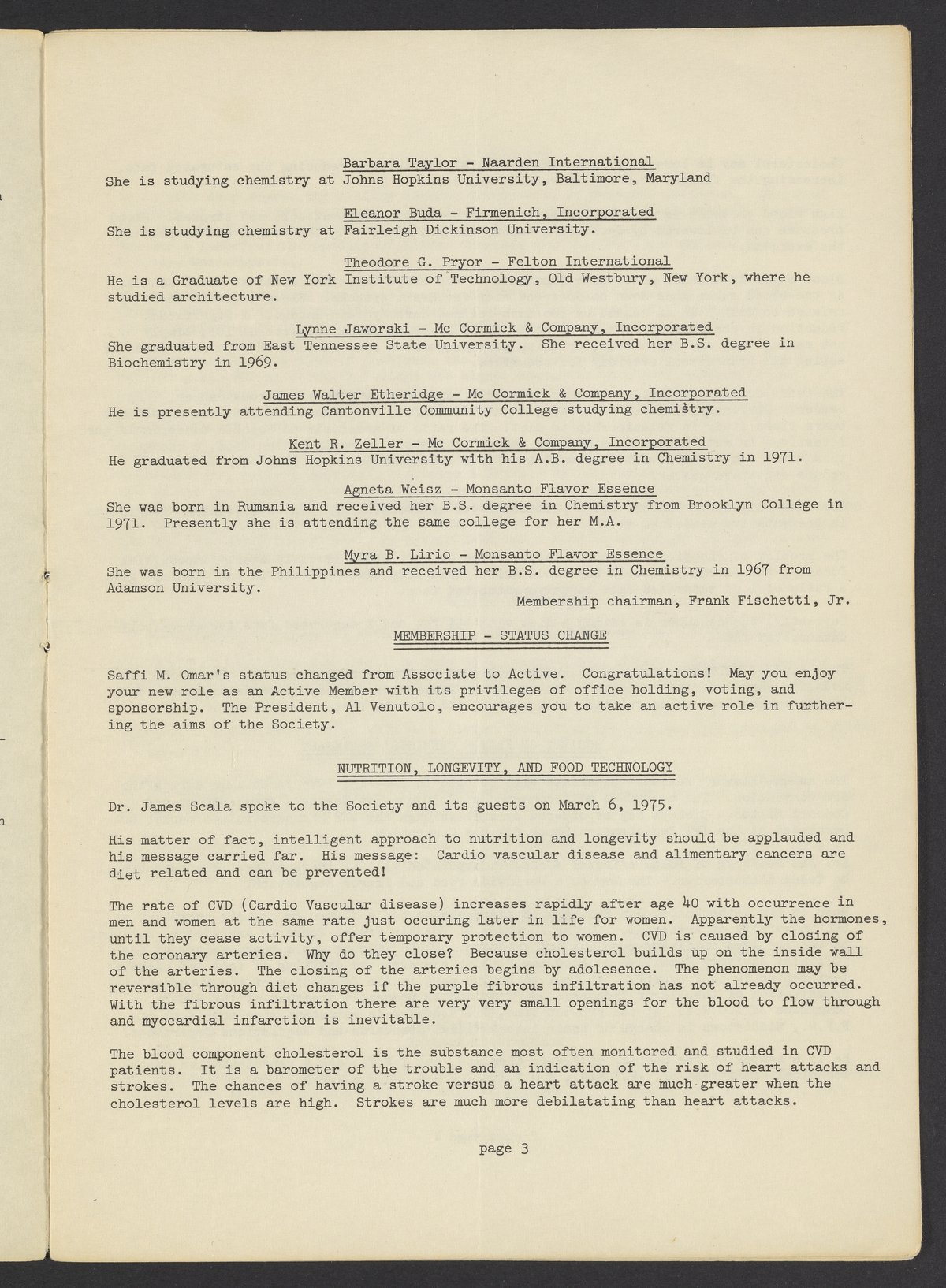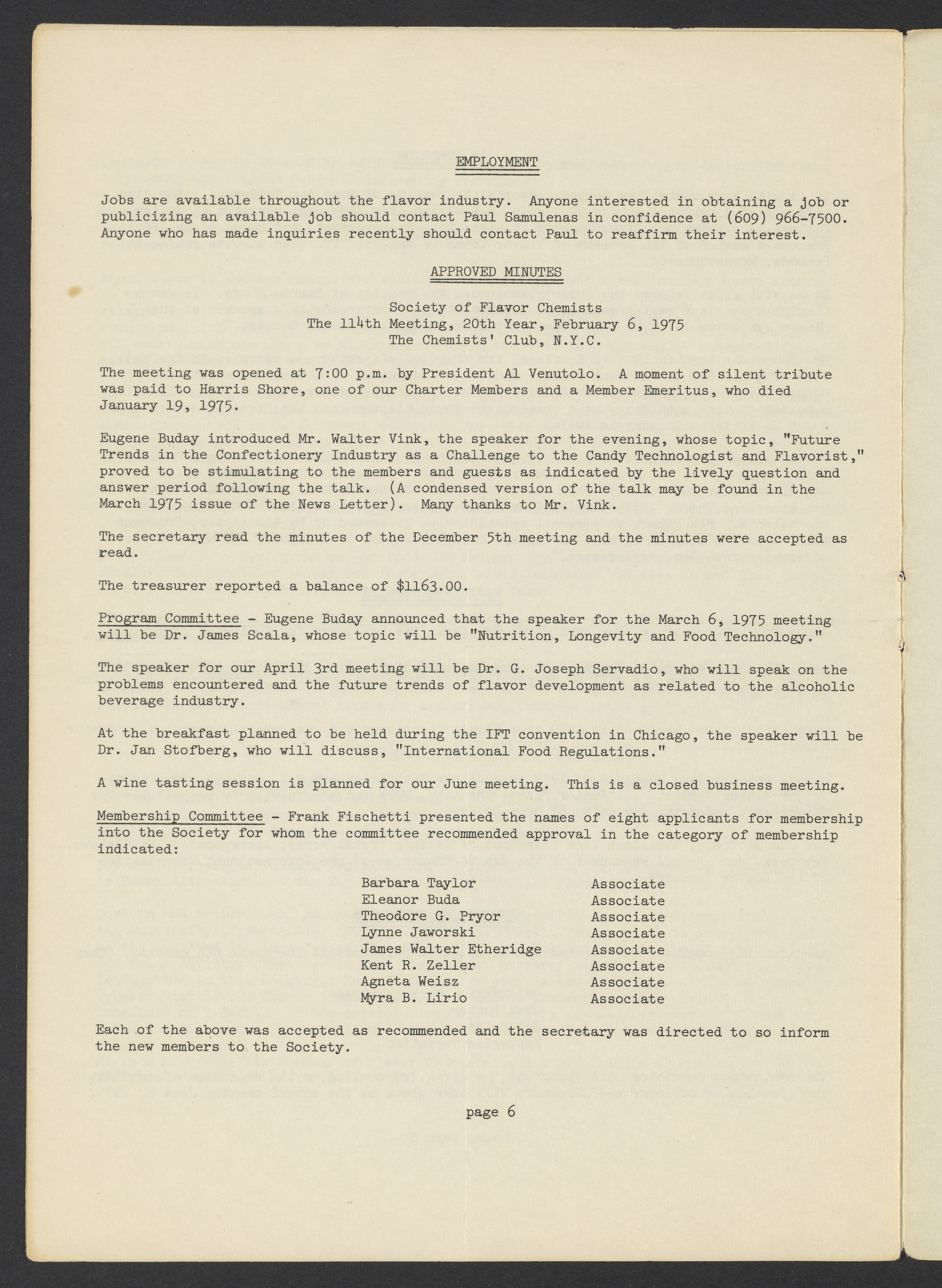 Society of Flavor Chemists newsletter, April 1975