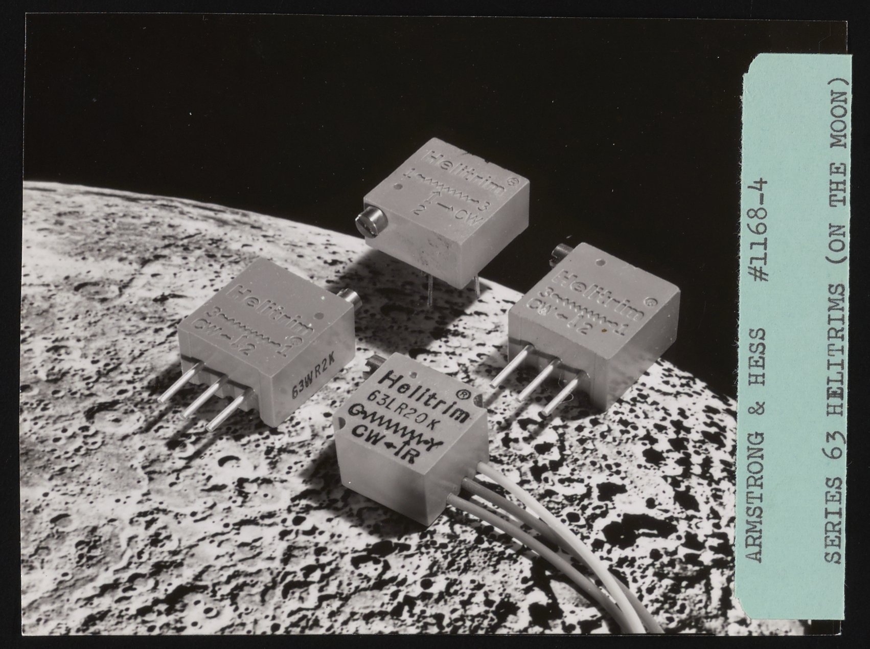 Armstrong & Hess. “Helitrim Trimming Potentiometers on the Moon,” 1960–1969. Beckman Historical Collection, Box 85. Science History Institute. Philadelphia. https://digital.sciencehistory.org/works/qn59q3974.