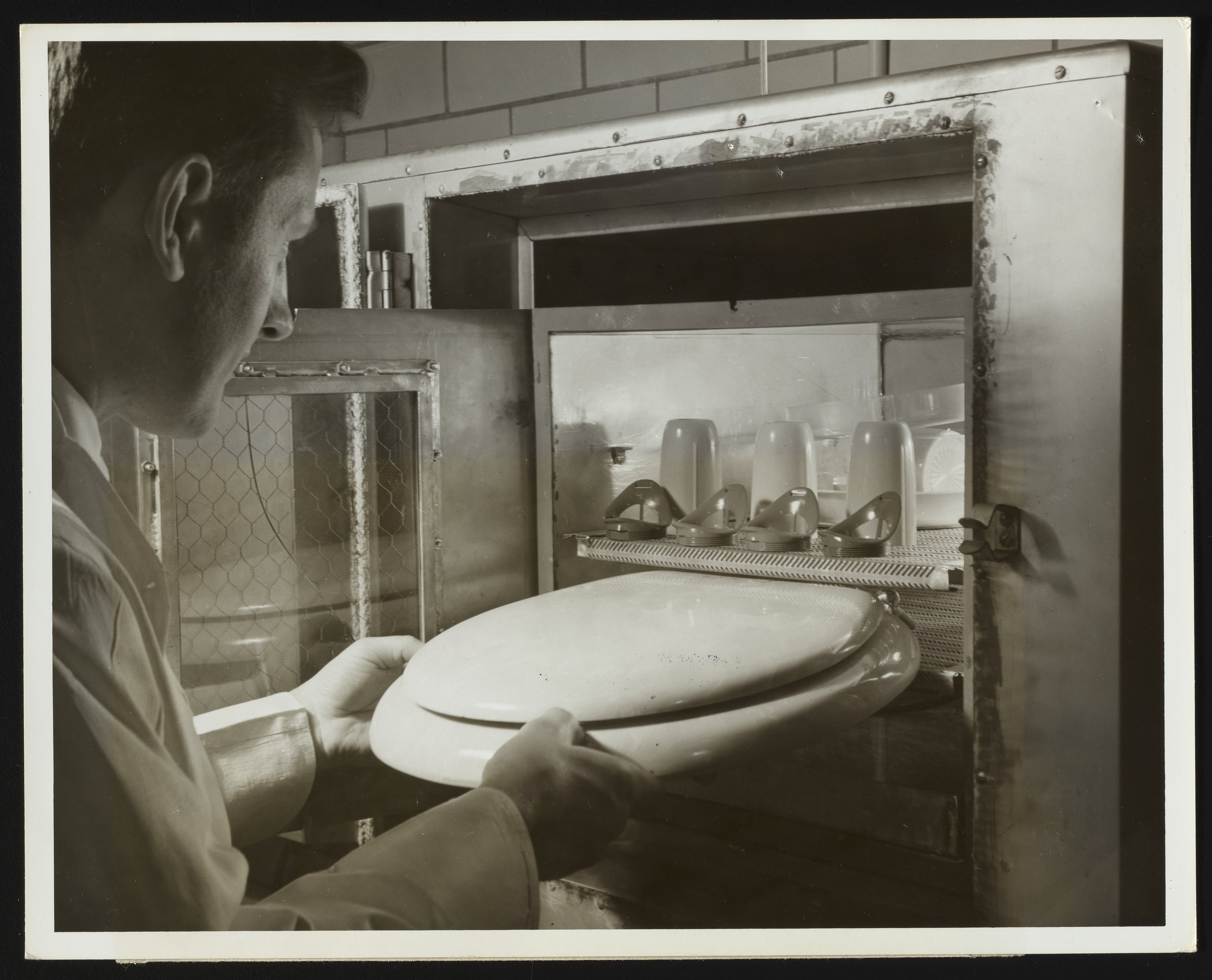 Felix Nakielny working with dimensional stability test cabinet at Hercules Parlin plant
