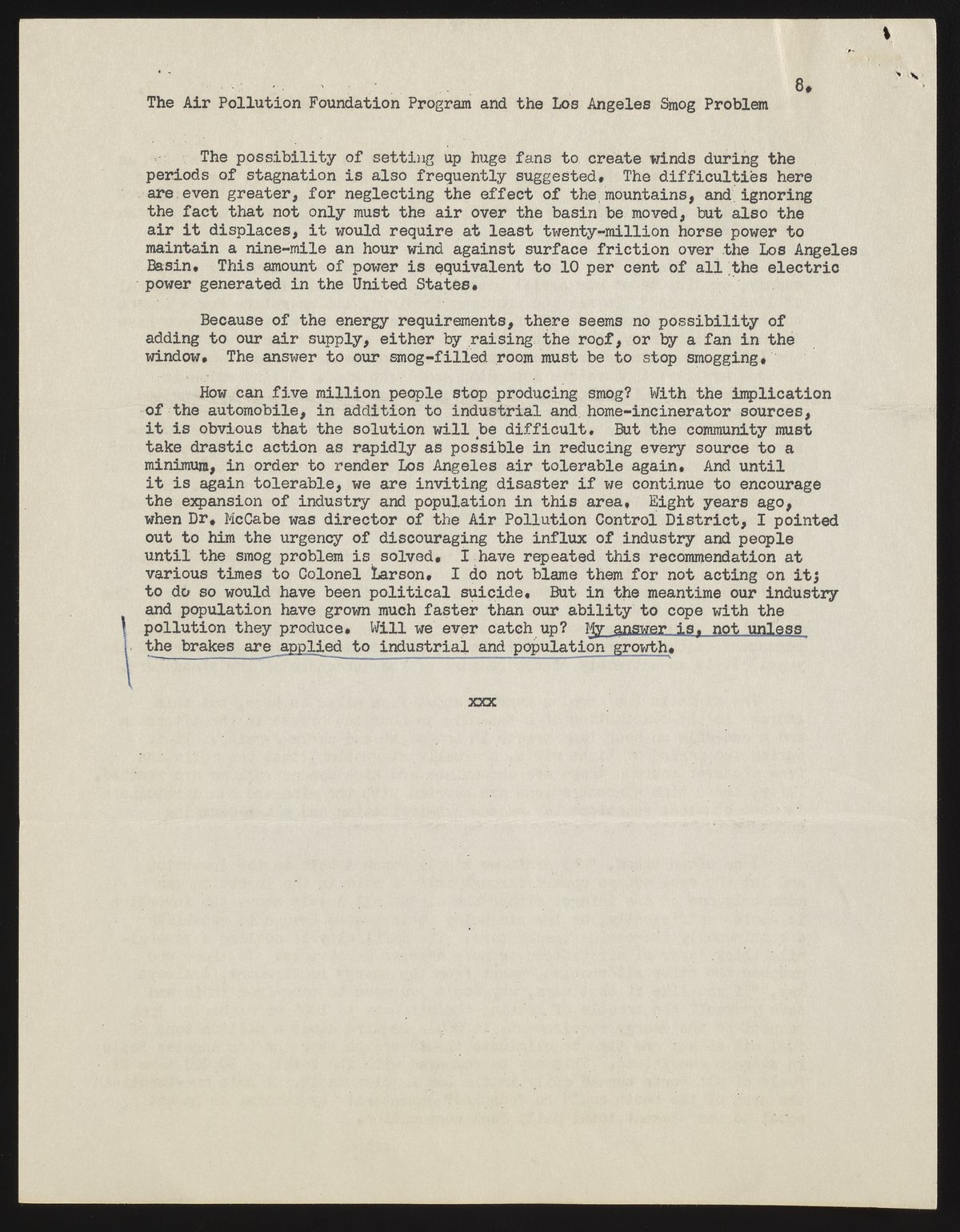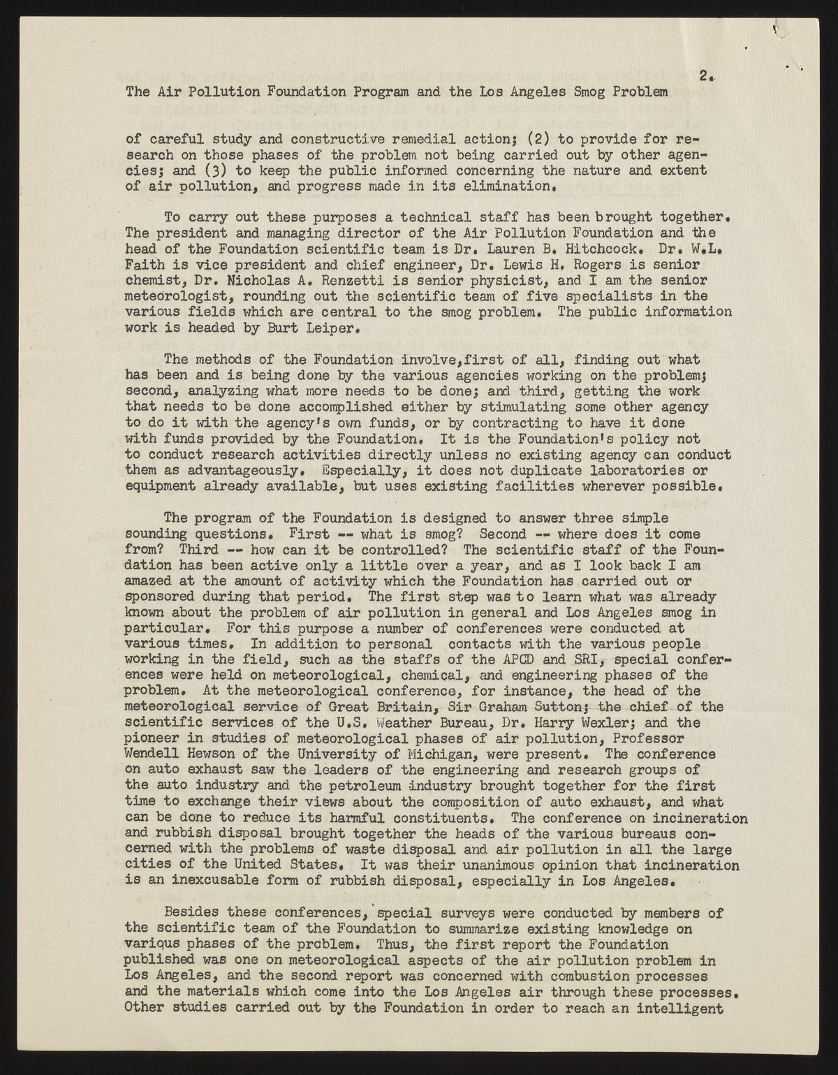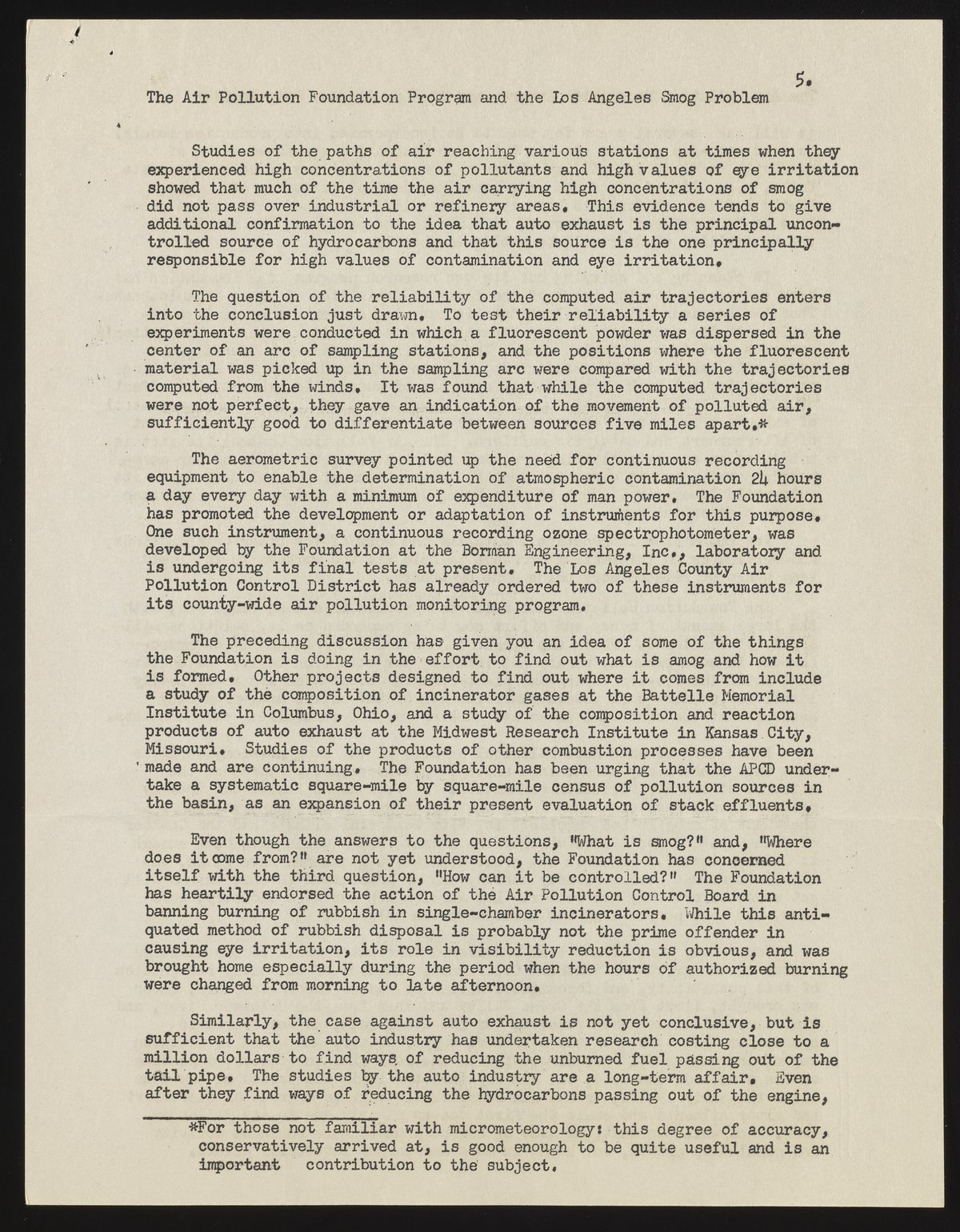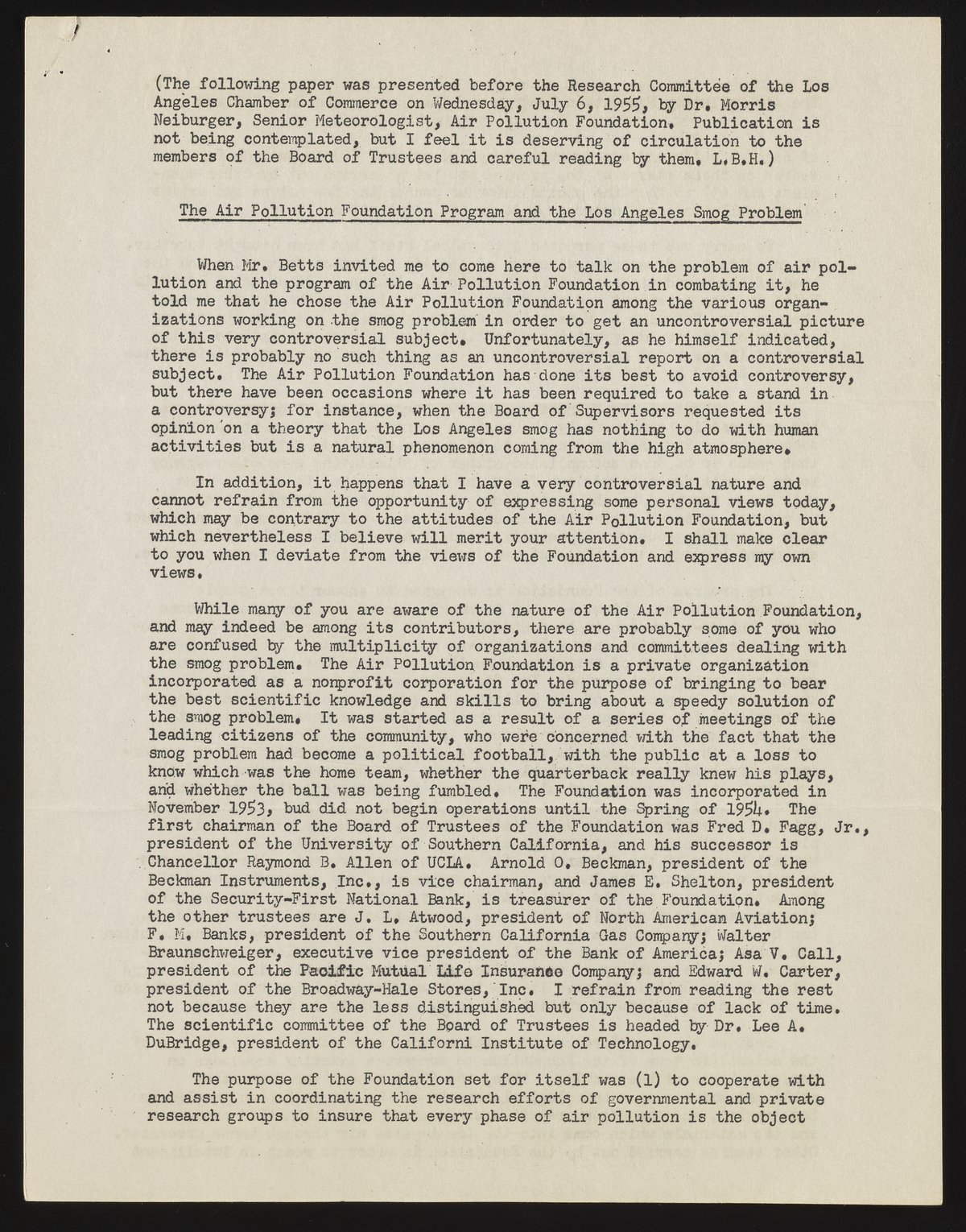 Neiburger, Morris. “The Air Pollution Foundation and the Los Angeles Smog Problem,” July 6, 1955. Beckman Historical Collection, Box 1, Folder 30. Science History Institute. Philadelphia. https://digital.sciencehistory.org/works/qn59q472g.