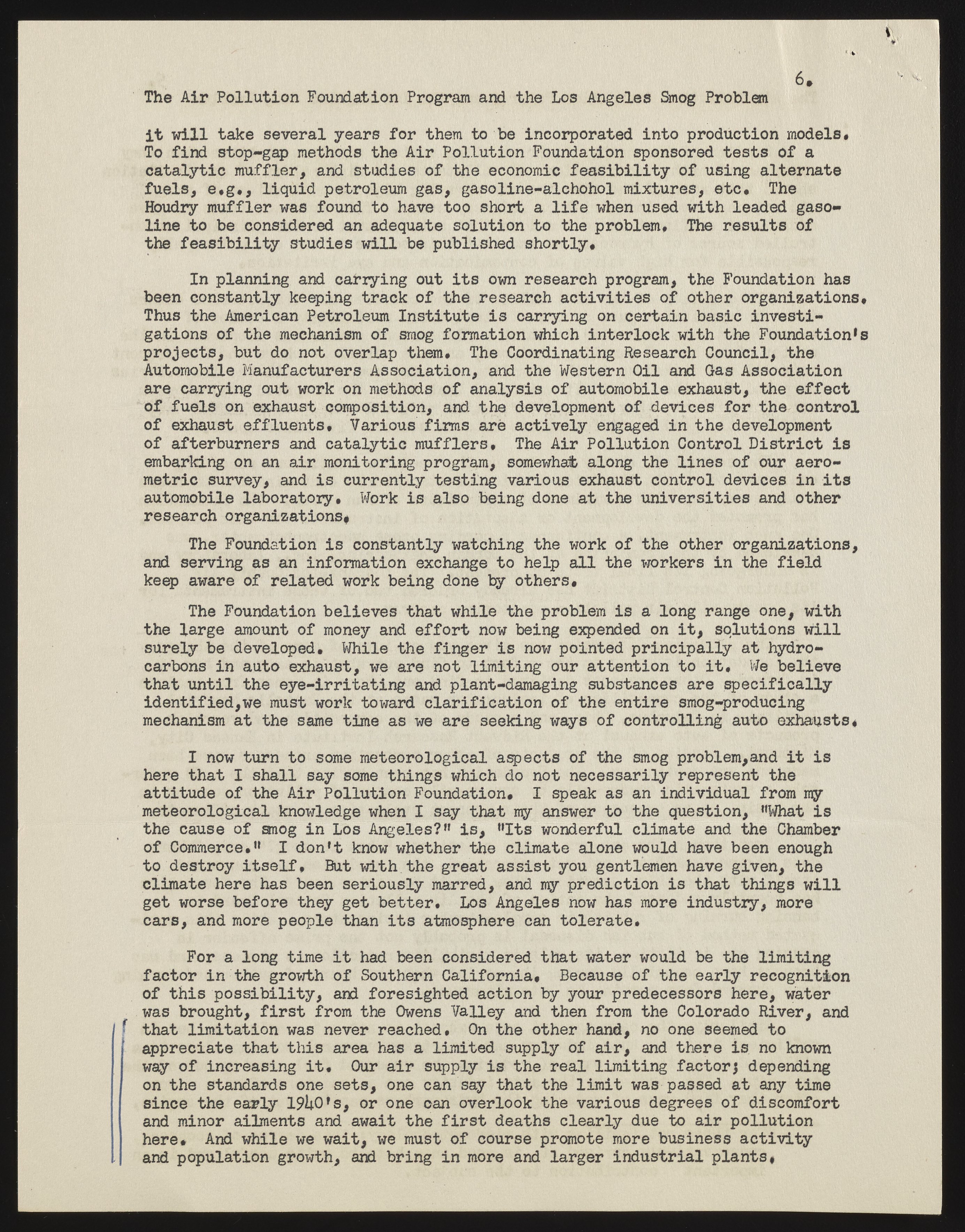 The Air Pollution Foundation and the Los Angeles Smog Problem