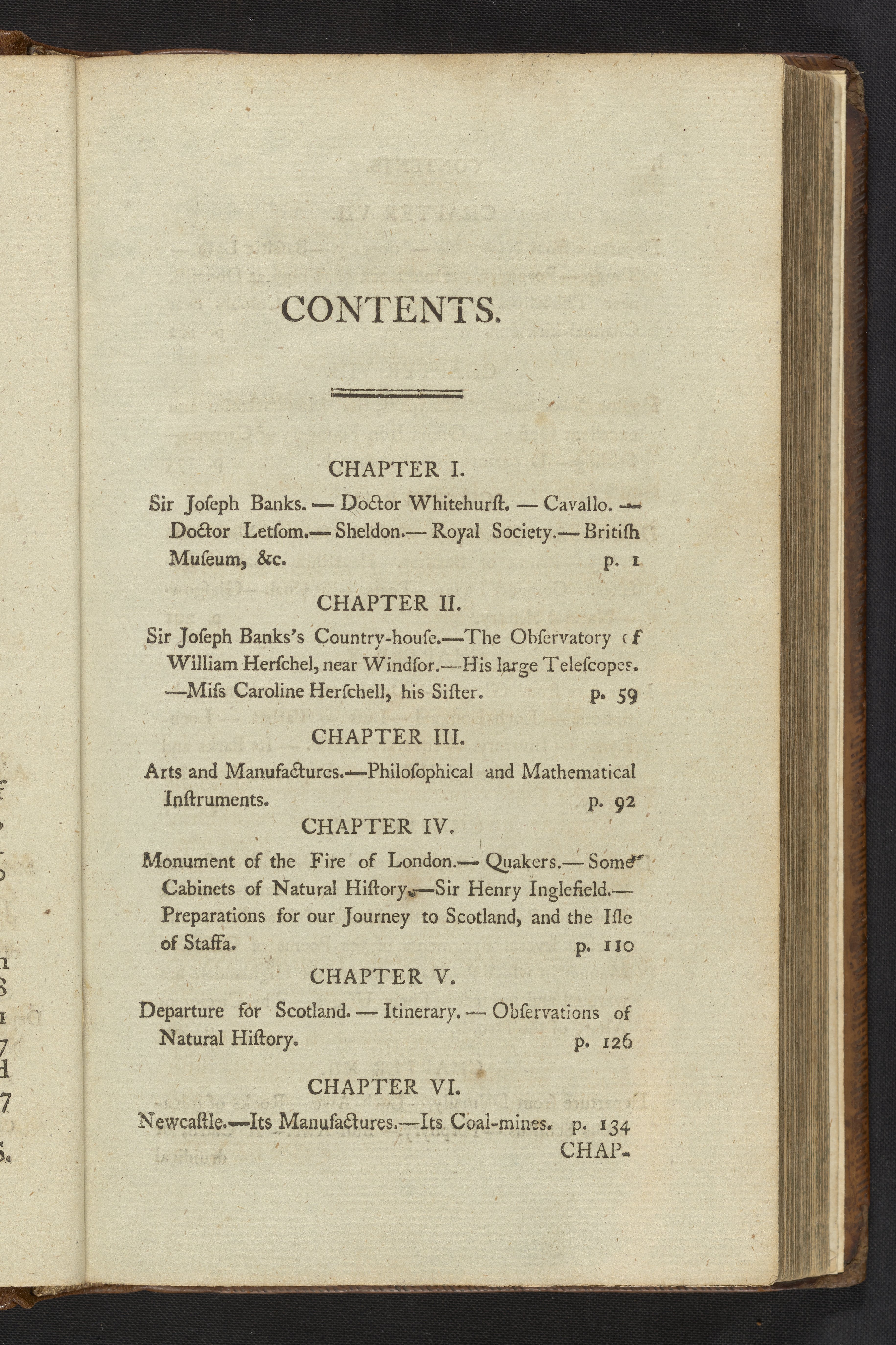During his time in London de-St-Fond visited many notable scientists and academics including Joseph Banks (1743-1820), Tiberius Cavallo (1749-1809), John Lettsom (1744-1815), John Sheldon (1752-1808), and John Herschel (1792-1871). He also visited the Royal Society, Greenwich Observatory, Kew Gardens, the British Museum, and other places of historic or academic value. In Newcastle, he spent time learning and writing about the coal industry. In Manchester, he explored the collections of Thomas Henry (1734-1816) and in Birmingham, he met with James Watt (1736-1819) and Joseph Priestly (1733-1804). He was impressed with Priestly's laboratory and gives a long description of it. He also visited Josiah Wedgewood (1730-1795) and toured his pottery and glassworks facilities in Parker. Additionally, he spent time in Prestonpans visiting the alkali and sulphuric acid works and the Carron ironworks.