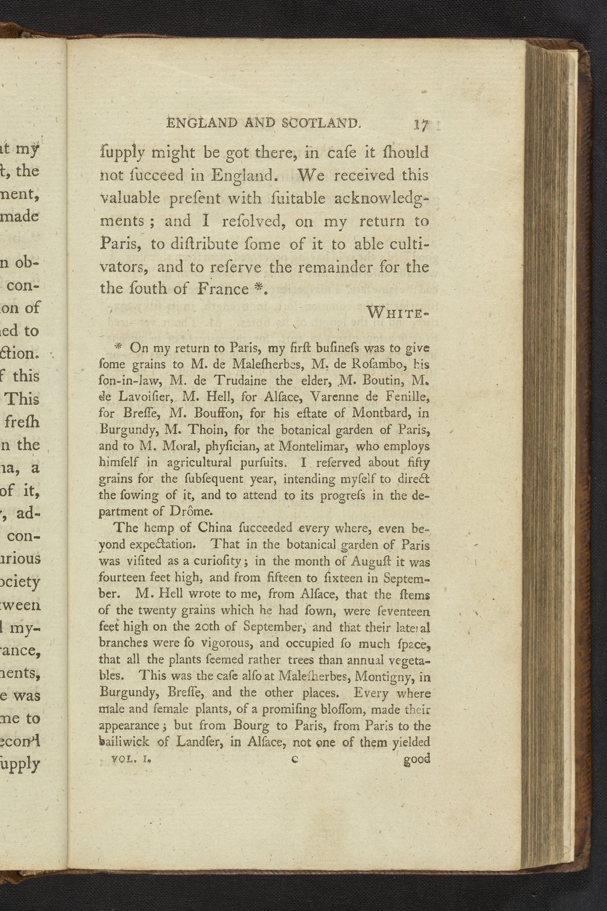 Faujas-de-St.-Fond, cit. (Barthélemy). Travels in England, Scotland, and the Hebrides: Undertaken for the Purpose of Examining the State of the Arts, the Sciences, Natural History and Manners, in Great Britain, Vol. 1. London, England: James Ridgway, 1799. https://digital.sciencehistory.org/works/qnzr6v8.