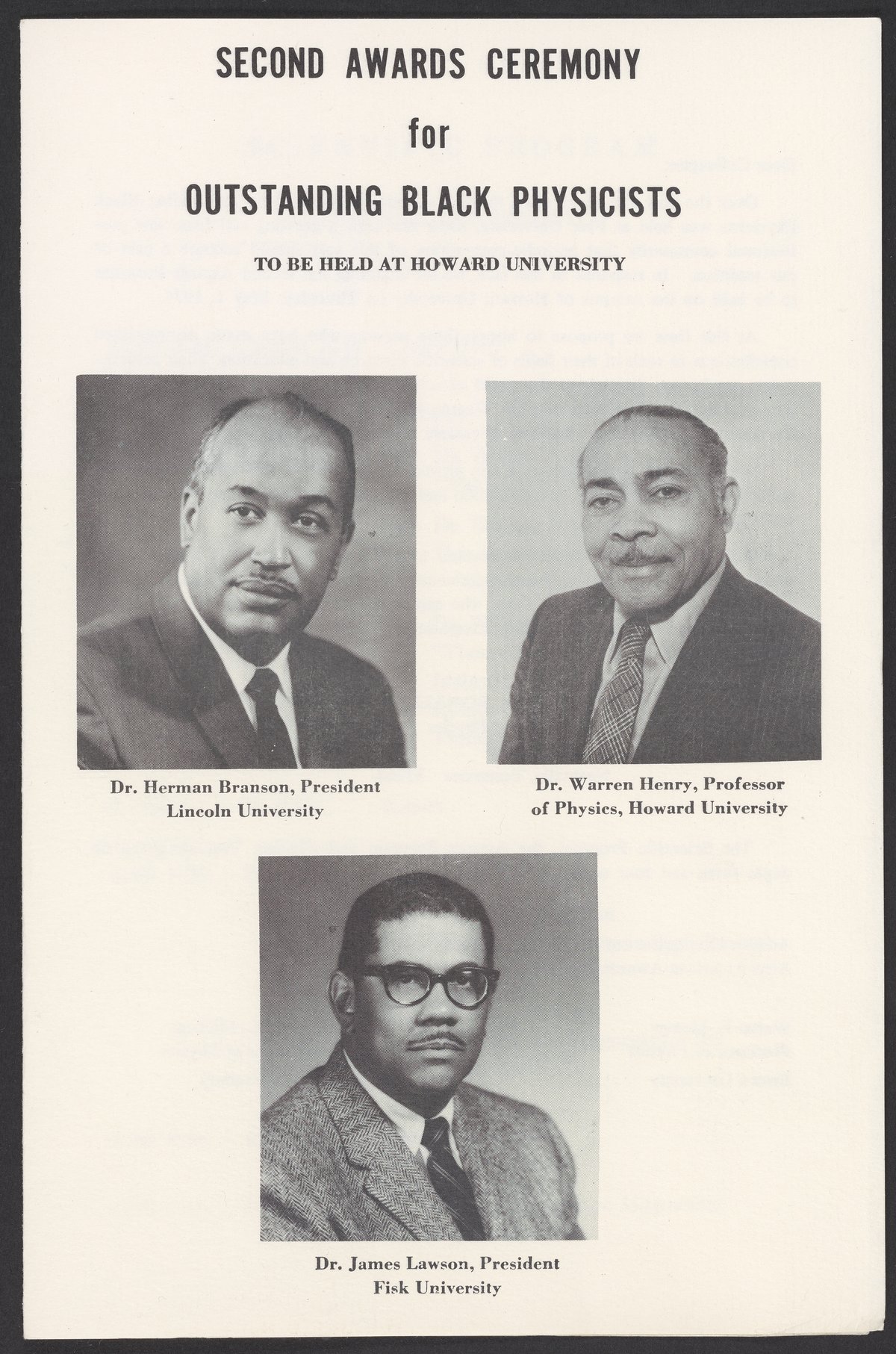 This ceremony was a part of a Day of Scientific Lectures and Seminars (DOSLAS). These events led to the founding of the National Society of Black Physicists (NSBP) in 1978.