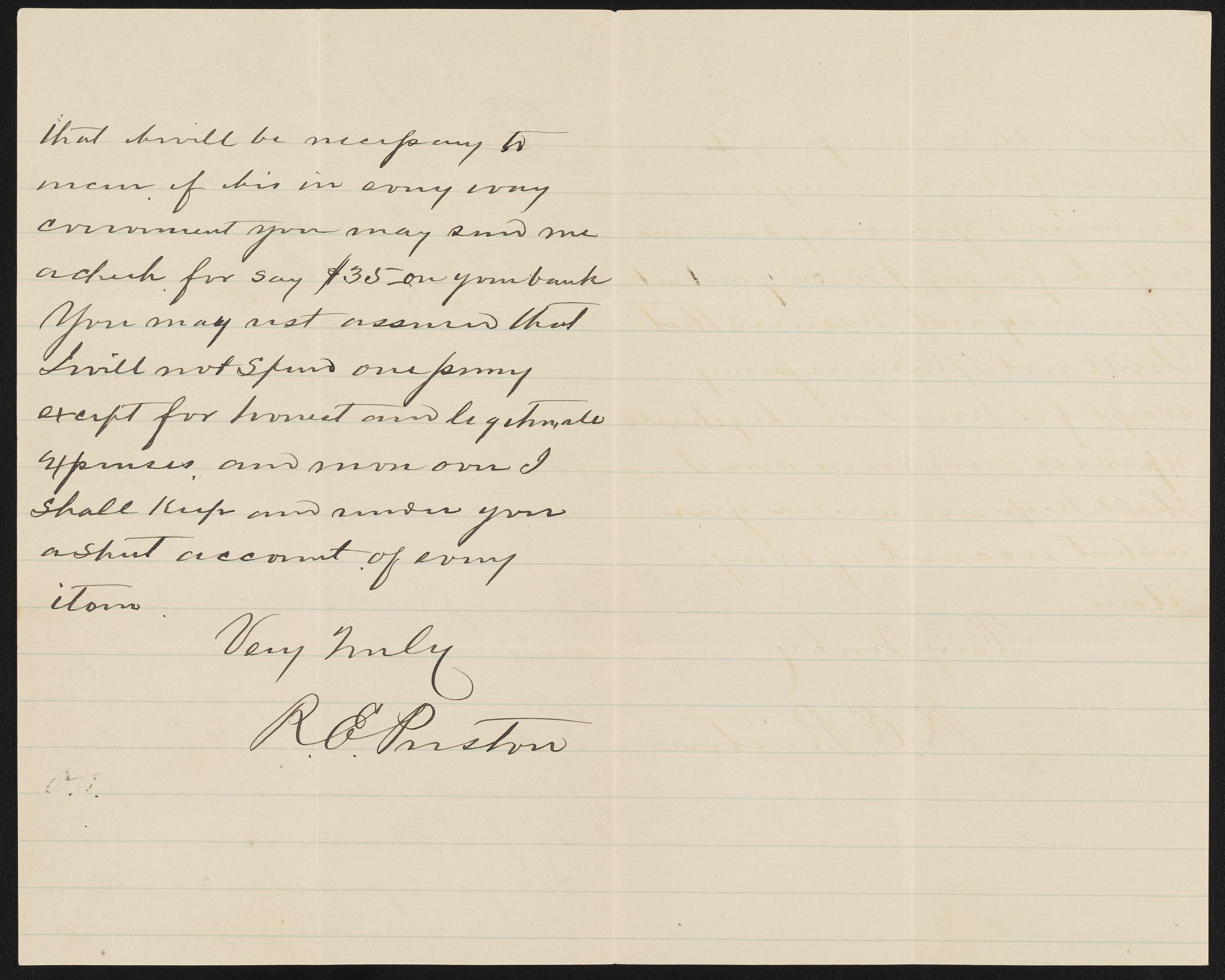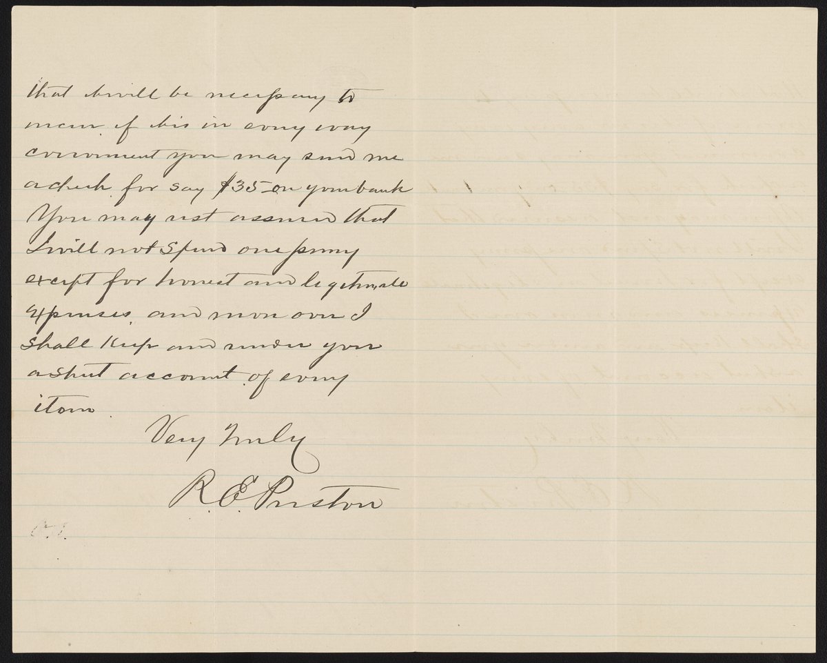 Small JPG1200 x 965px — 139 KBLarge JPG2880 x 2316px — 807 KBFull-sized JPG5812 x 4673px — 3.2 MBOriginal fileTIFF — 5812 x 4673px — 77.8 MBLetter from Robert E. Preston (1836-1911), of the United States Mint Bureau, to Margaret M. Booth née Cardeza concerning Preston's attempts to relieve James C. Booth from responsibility for making good on two stolen bars of silver from the United States Mint.