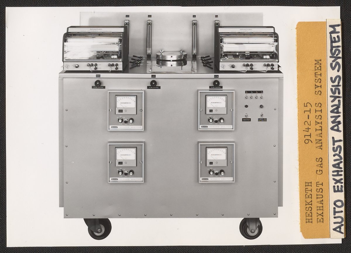Hesketh, Dean D. “Beckman Exhaust Gas Analysis System,” 1960–1969. Beckman Historical Collection, Box 84. Science History Institute. Philadelphia. https://digital.sciencehistory.org/works/qv33rw94m.
