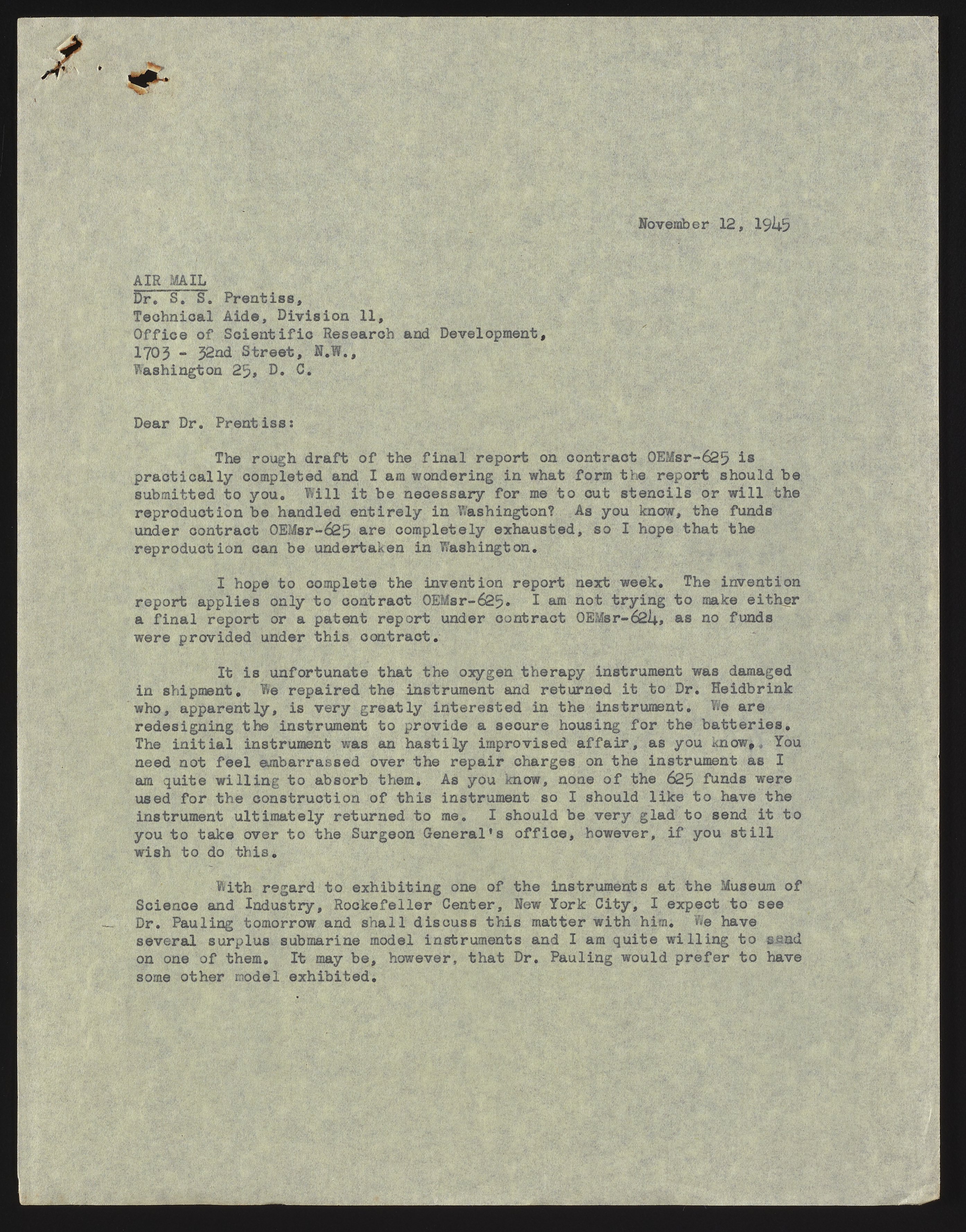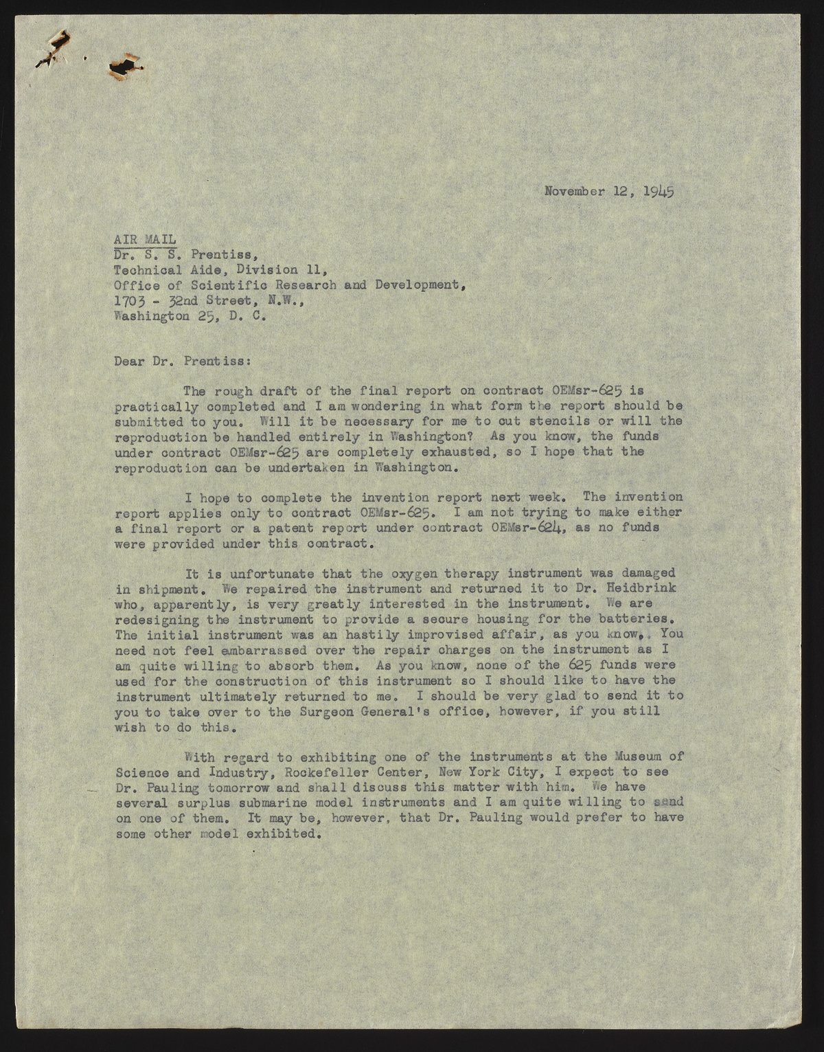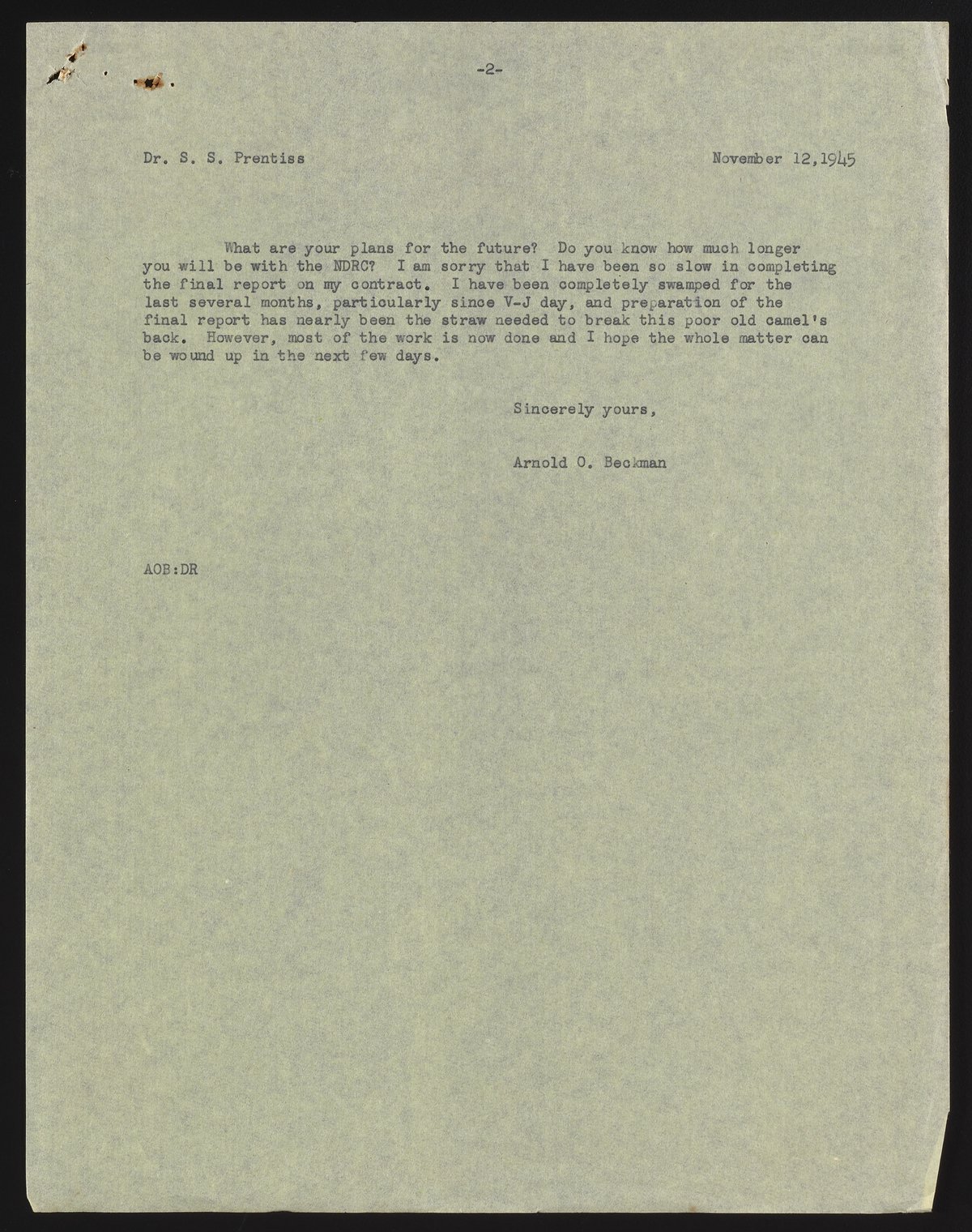 Letter from Arnold O. Beckman to S. S. Prentiss