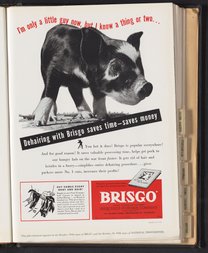 Advertisement for Brisgo, a trademarked depilatory compound manufactured and sold by the Hercules Powder Company for the cosmetic removal of hair from hog skin. Formed in 1912 as part of an anti-trust settlement with DuPont, the Hercules Powder Company (later Hercules Inc.) initially specialized in the manufacture of explosives and smokeless powders and subsequently diversified its business to encompass a variety of industrial products, including pine and paper chemicals, synthetics, pigments, polymers, and cellulose.