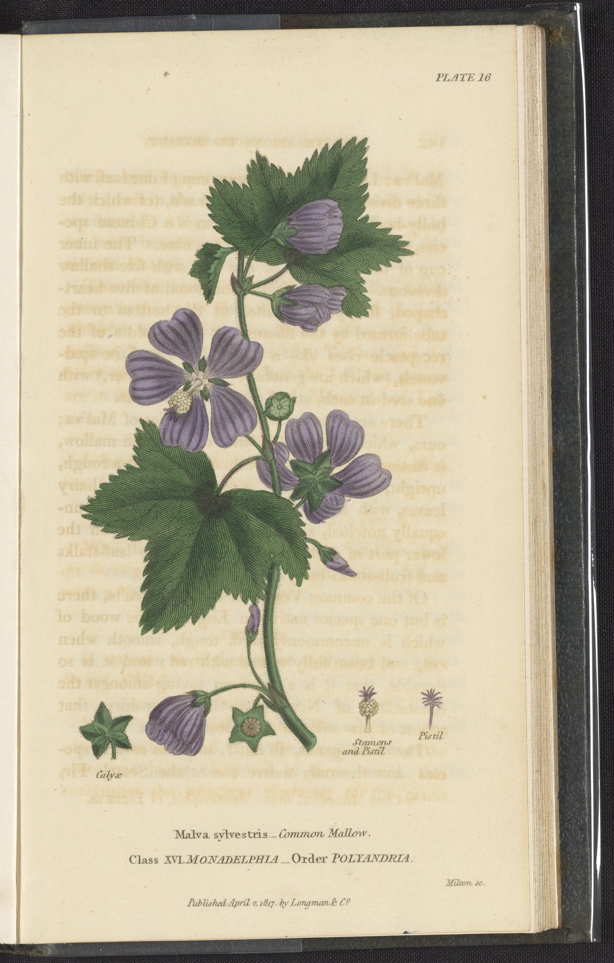 Fitton, Sarah Mary, and Elizabeth Fitton. “Plate 16: Malva Sylvestris.” In Conversations on Botany. London, England: Longman, Hurst, Rees, Orme, and Brown, 1817. https://digital.sciencehistory.org/works/r207tp41c.