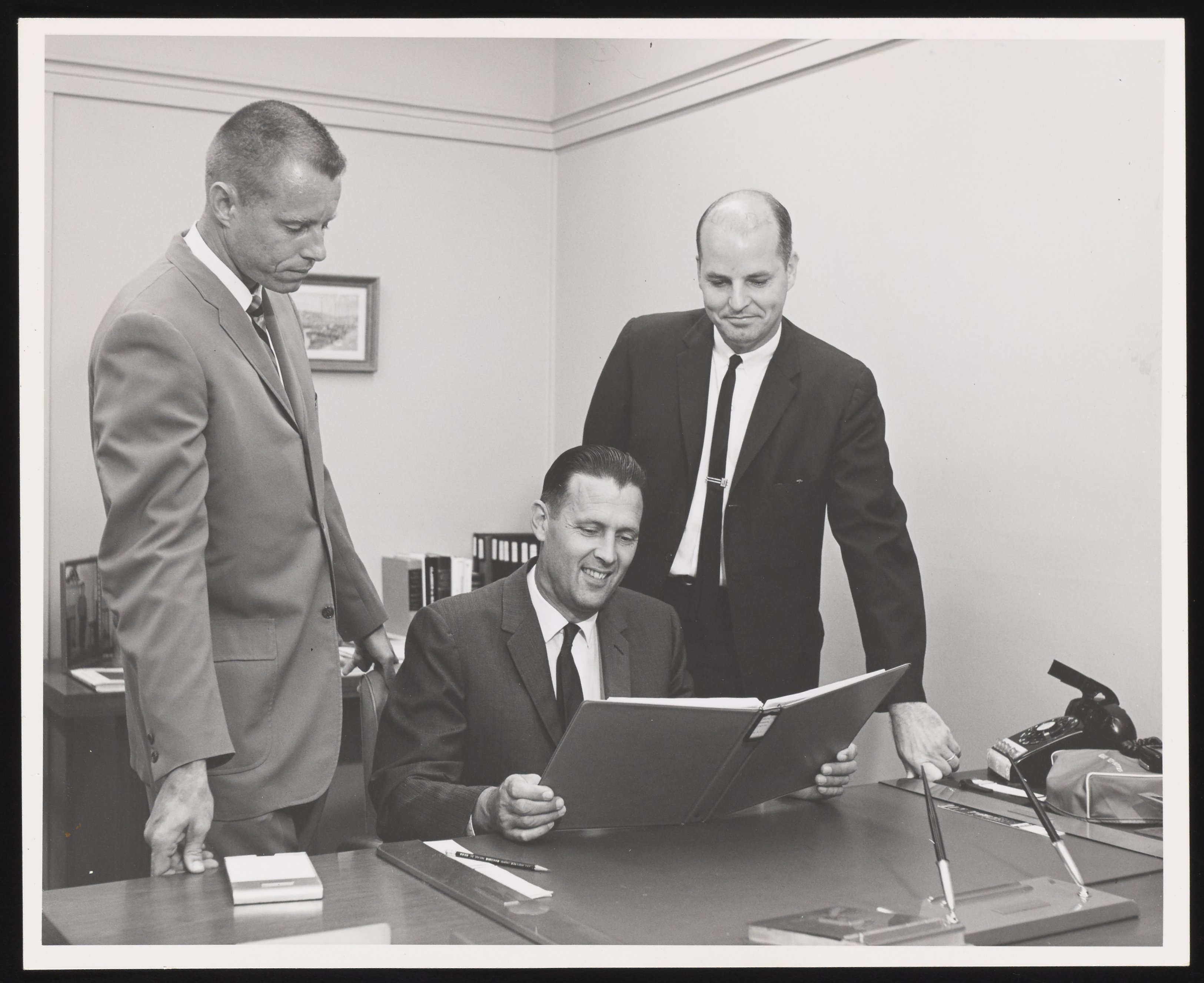 “James Shelton, Robert Lineberger, and John James,” 1970. Beckman Historical Collection, Box 56, Folder 14. Science History Institute. Philadelphia. https://digital.sciencehistory.org/works/r207tp446.
