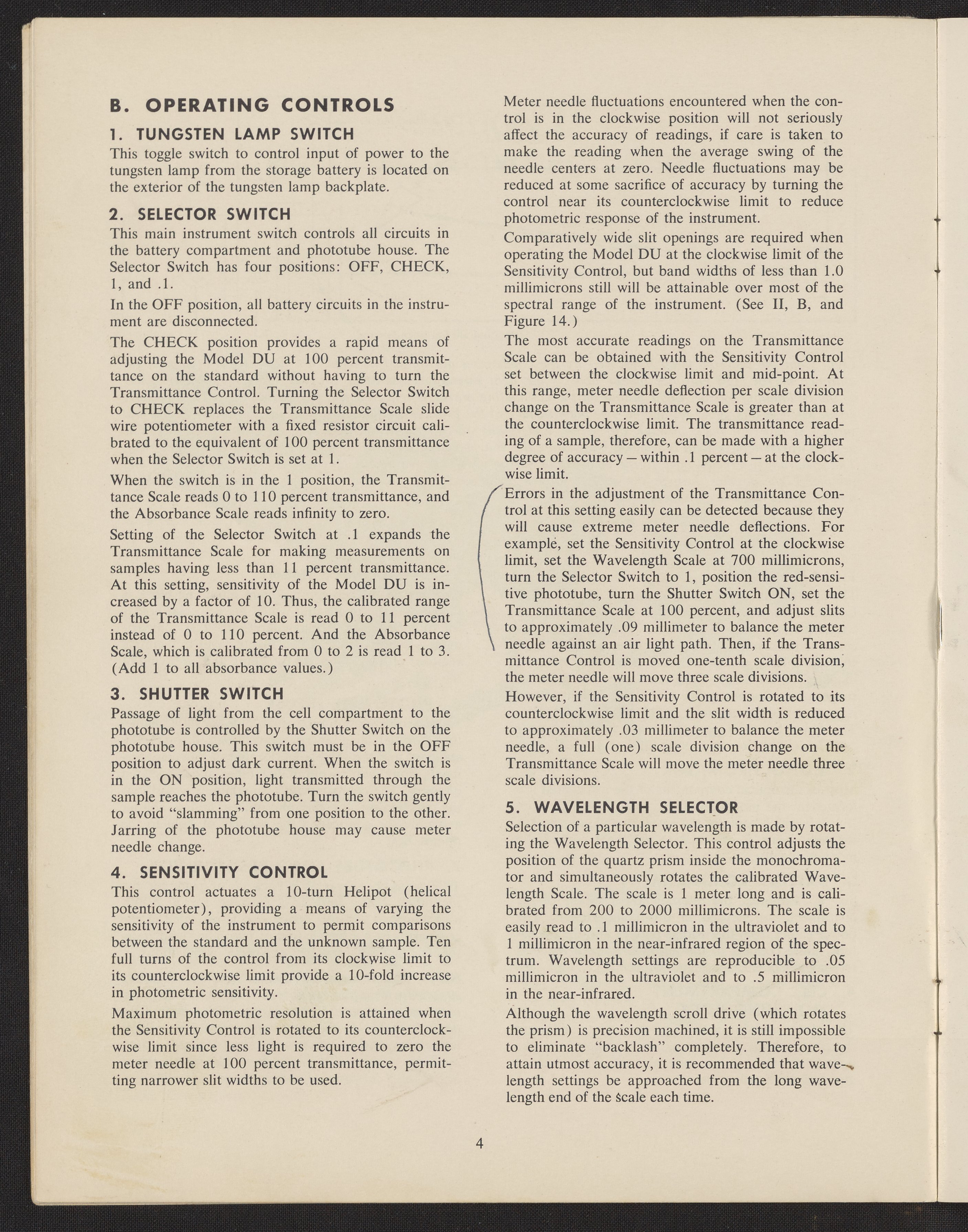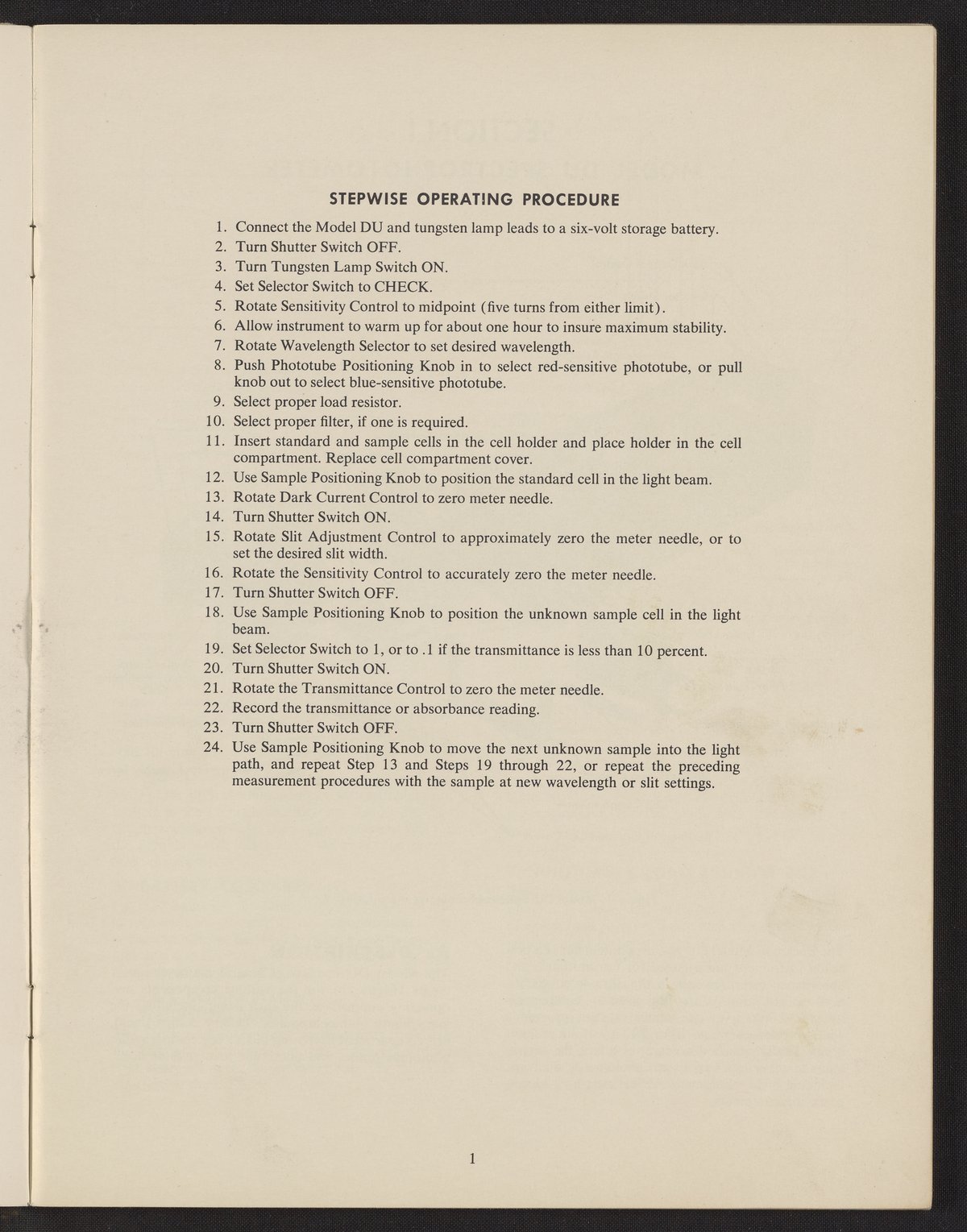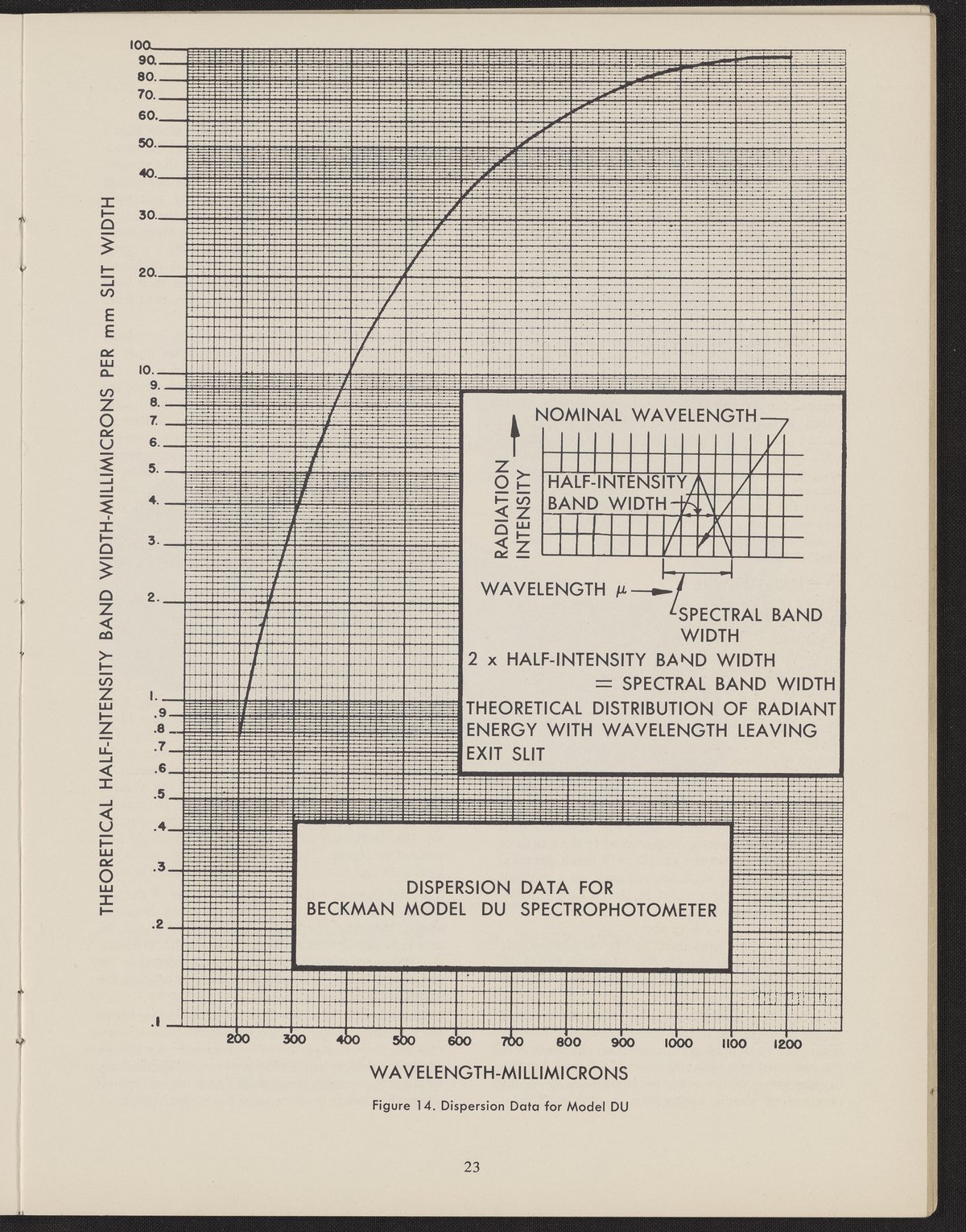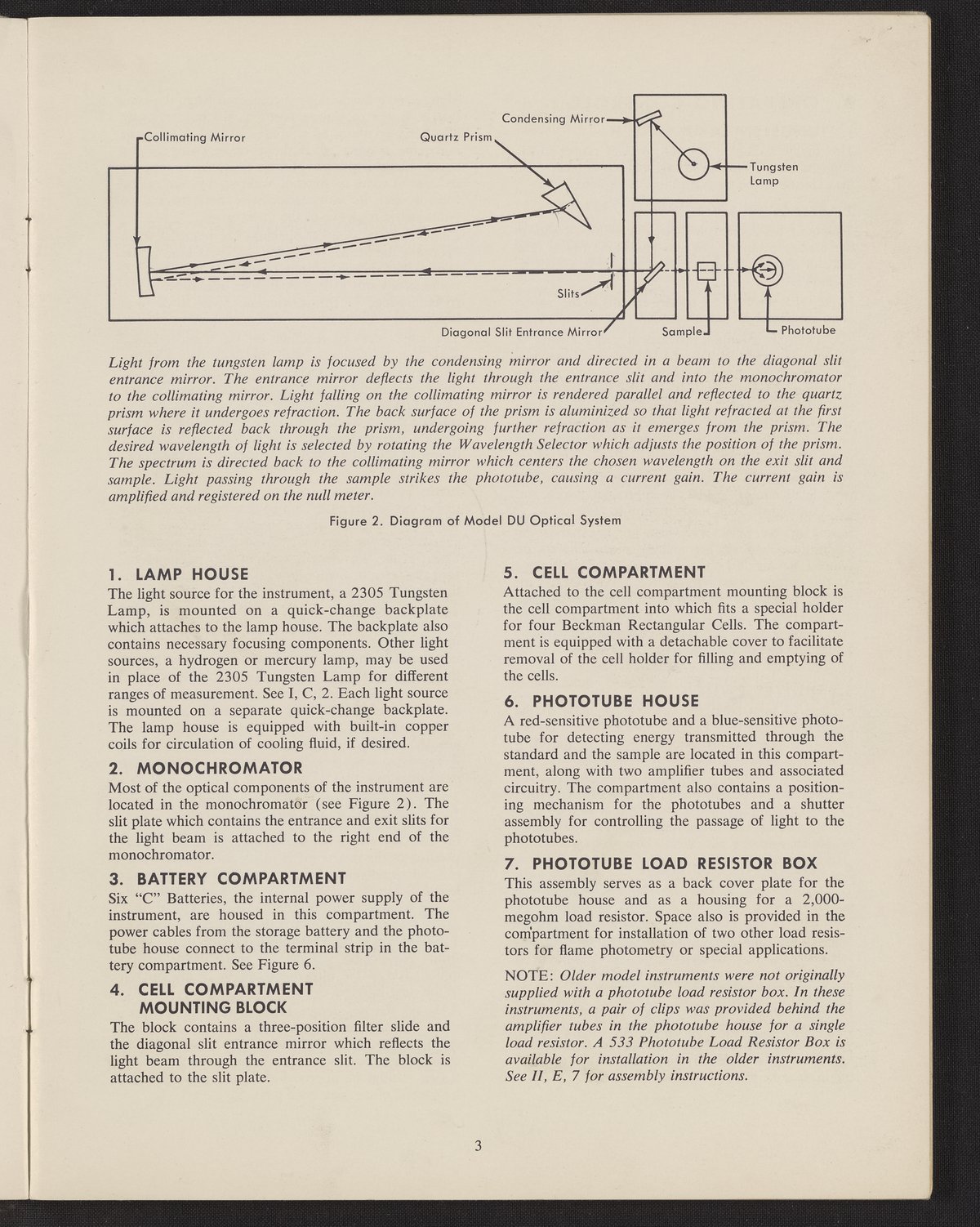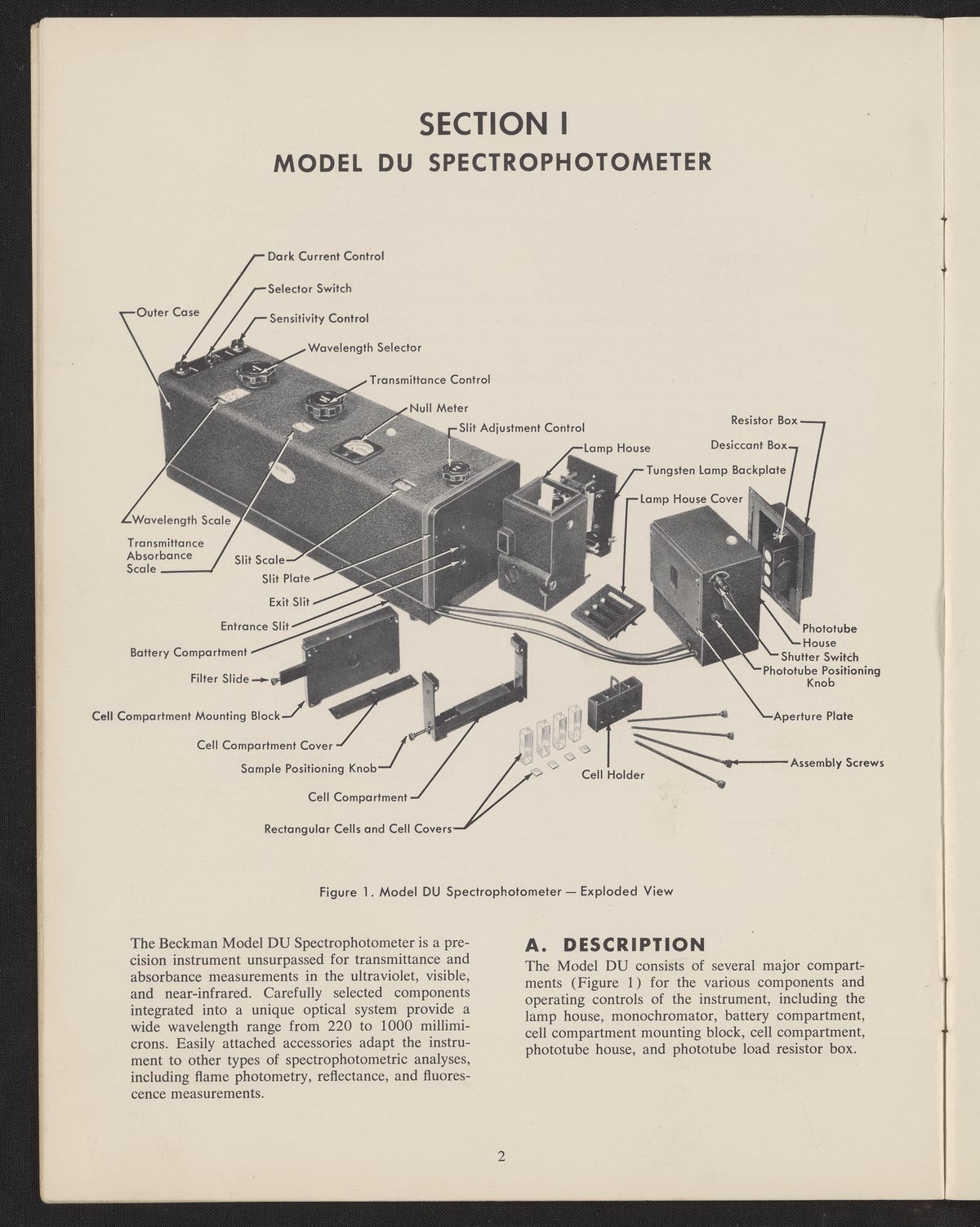 Beckman Instruments, Inc. “The Beckman Model DU Spectrophotometer and Accessories Instruction Manual,” 1954. Beckman Historical Collection, Box 104, Folder 197. Science History Institute. Philadelphia. https://digital.sciencehistory.org/works/r207tp471.