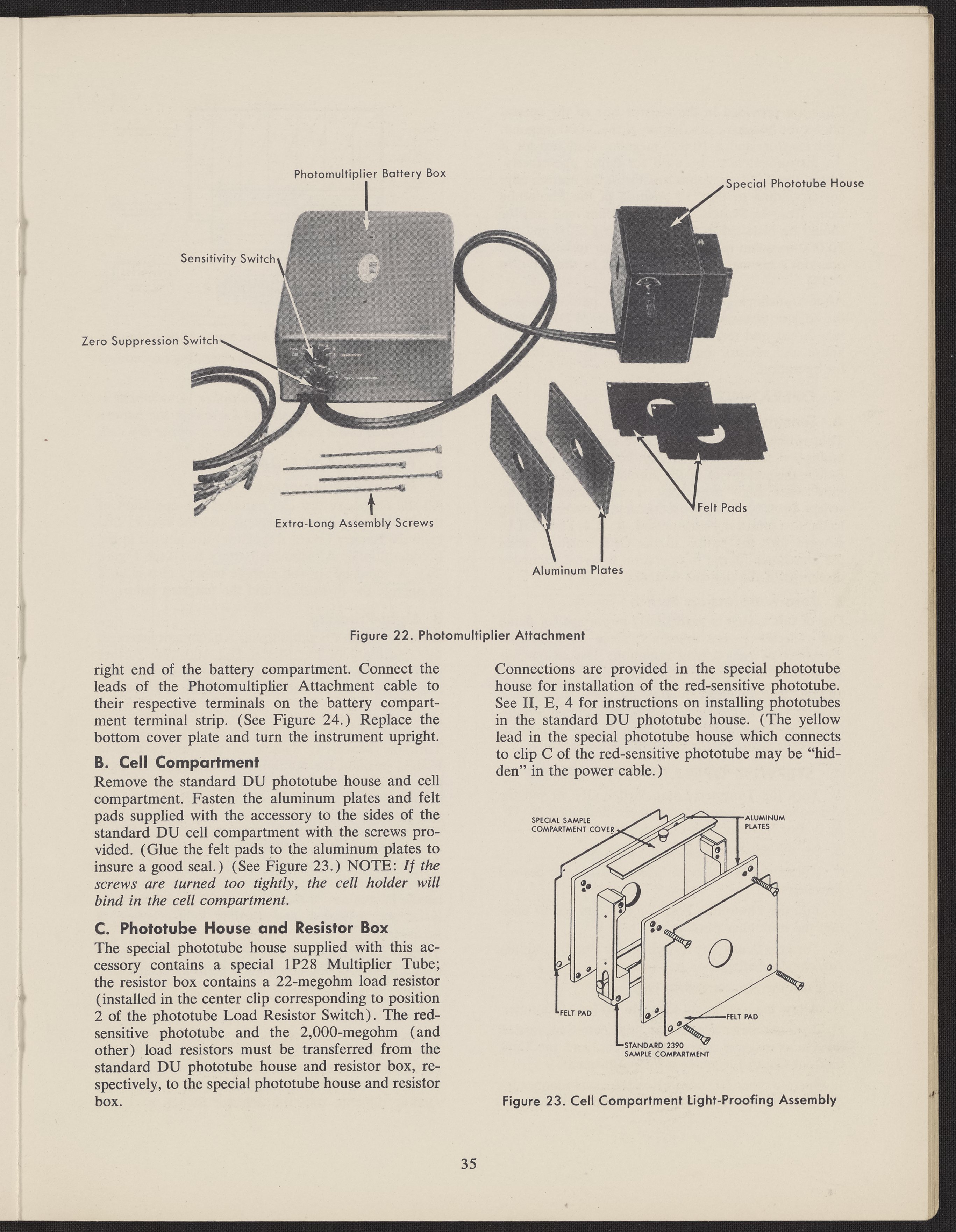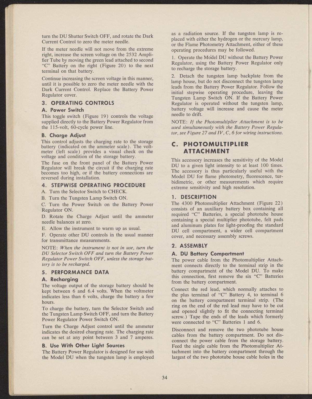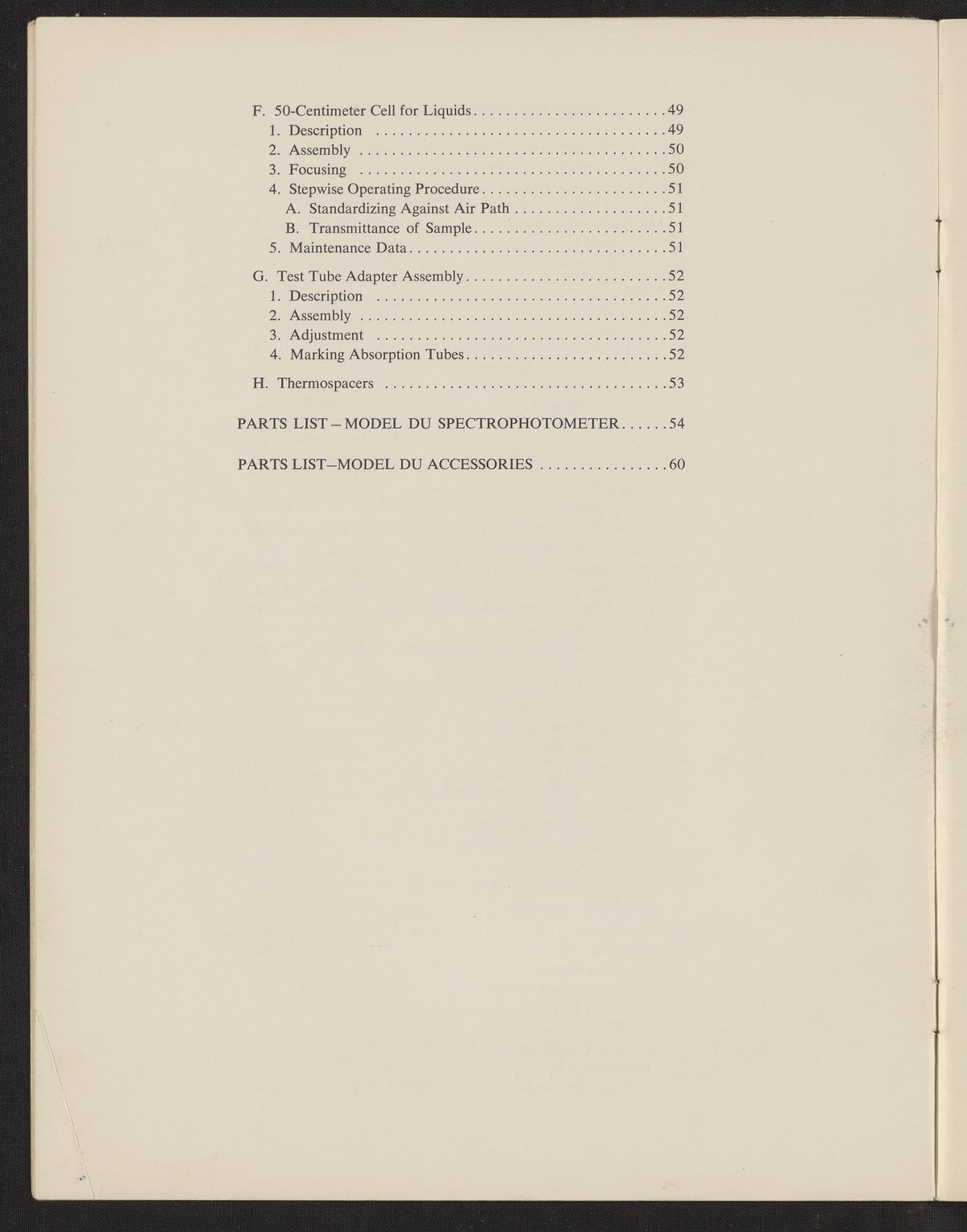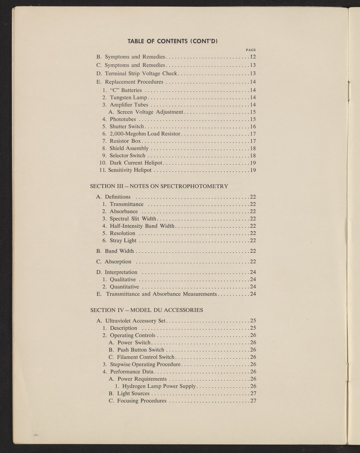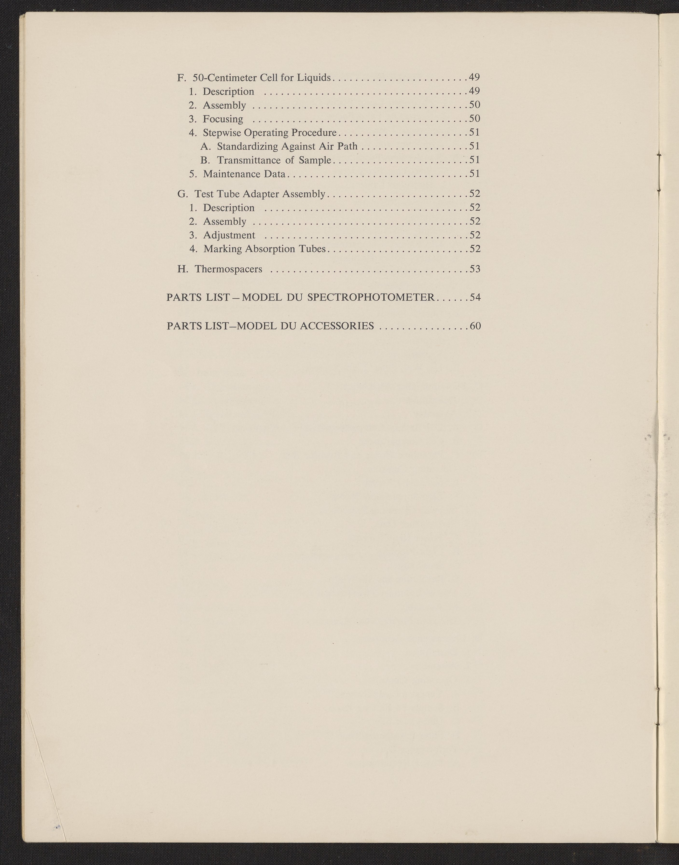 Beckman Instruments, Inc. “The Beckman Model DU Spectrophotometer and Accessories Instruction Manual,” 1954. Beckman Historical Collection, Box 104, Folder 197. Science History Institute. Philadelphia. https://digital.sciencehistory.org/works/r207tp471.