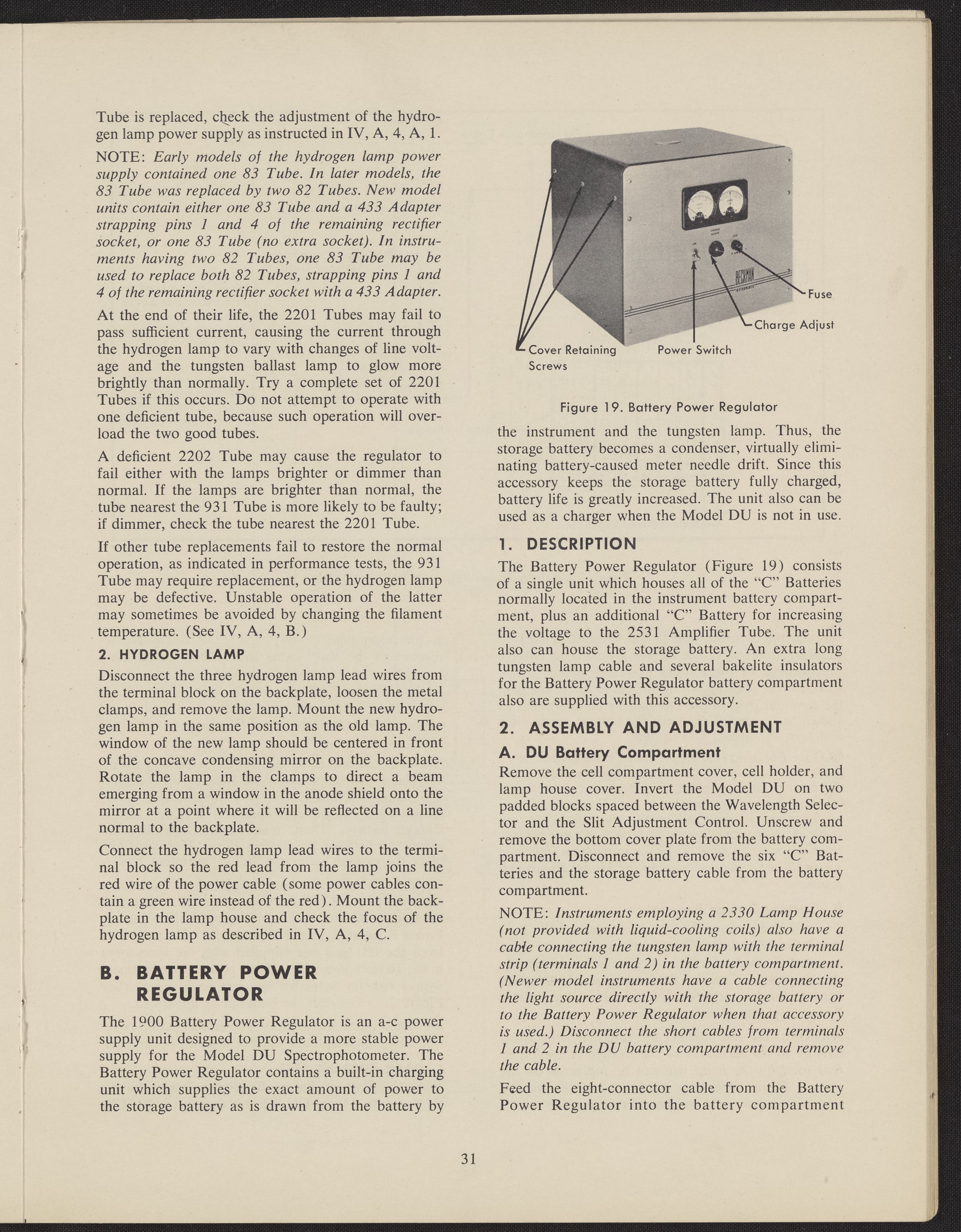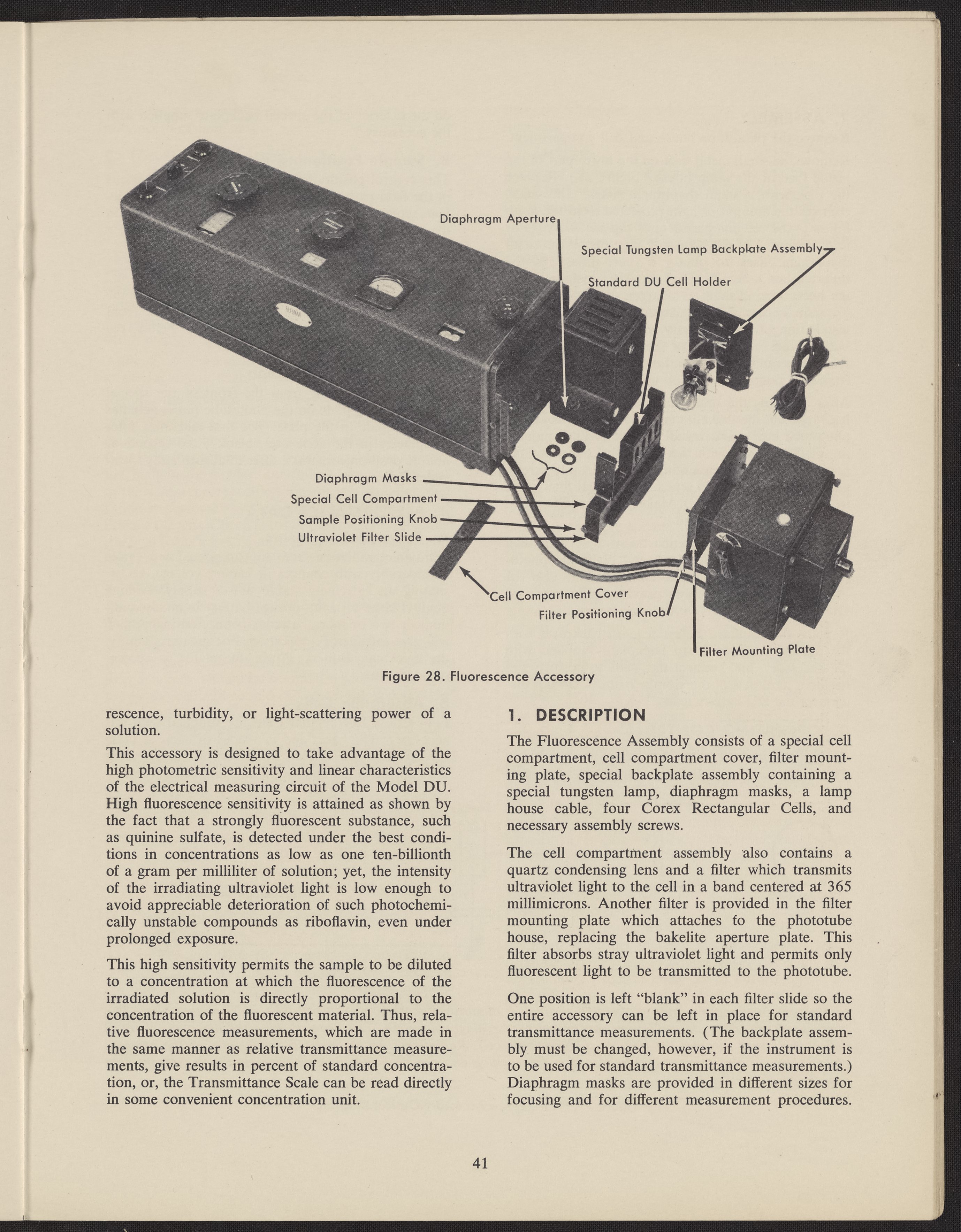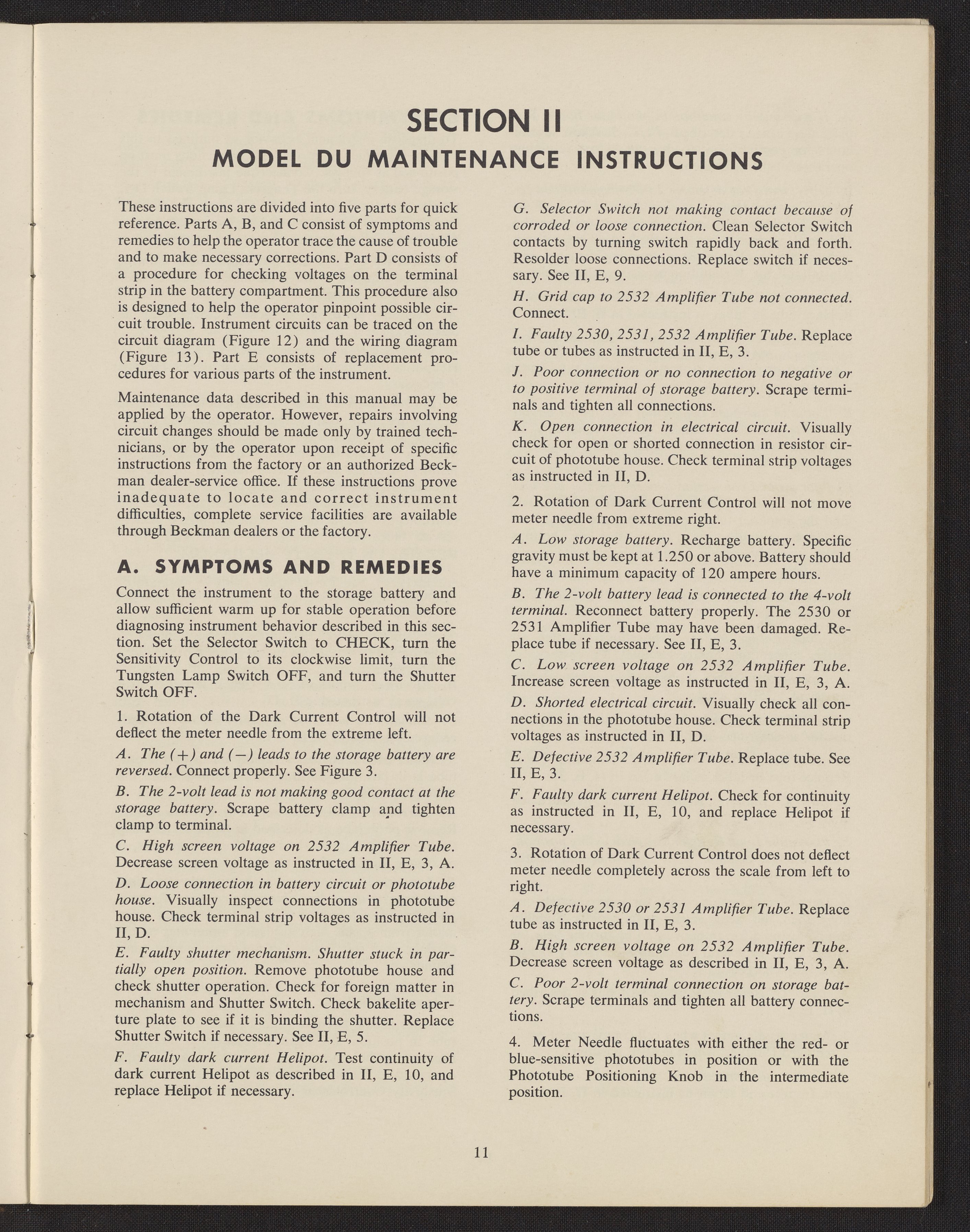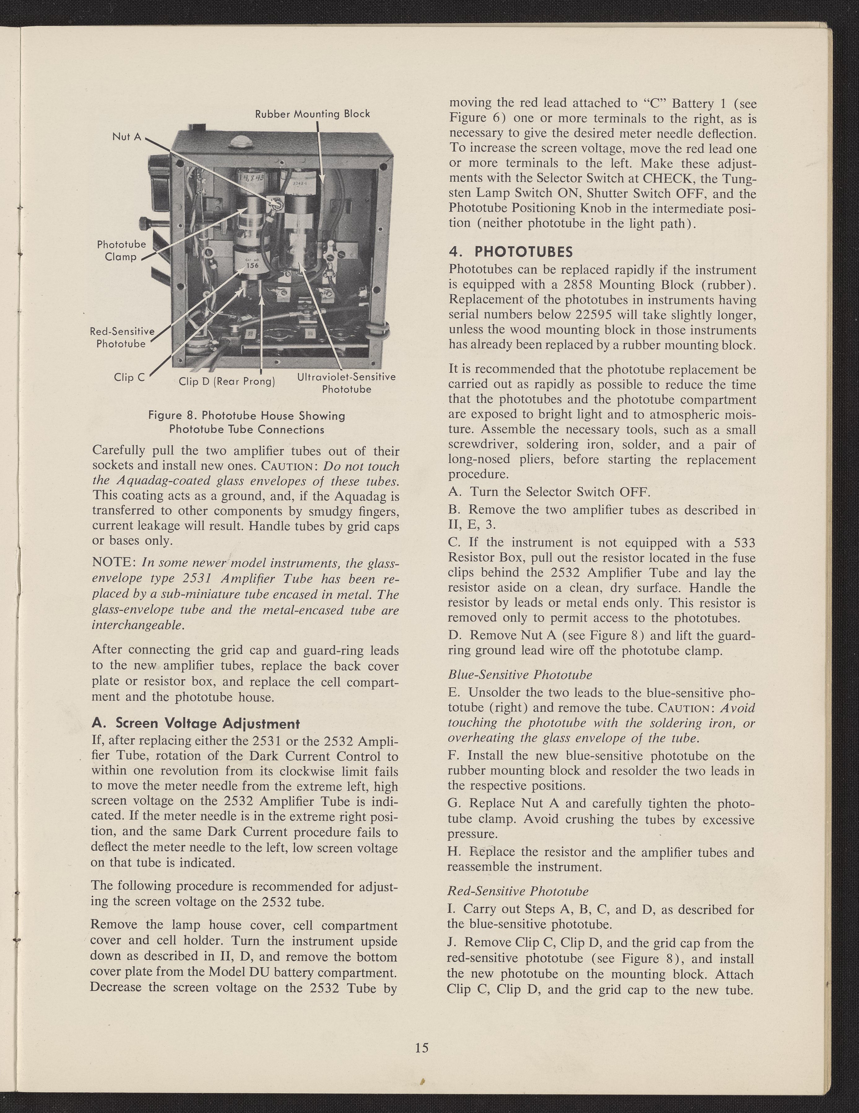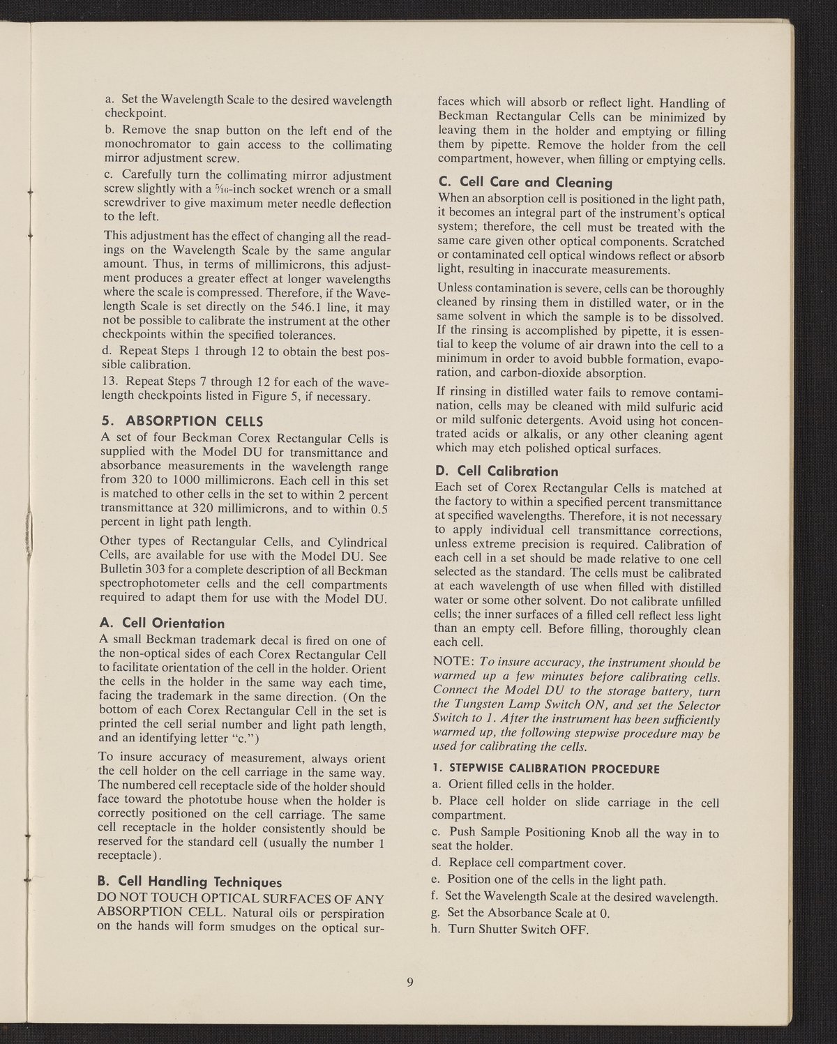 Beckman Instruments, Inc. “The Beckman Model DU Spectrophotometer and Accessories Instruction Manual,” 1954. Beckman Historical Collection, Box 104, Folder 197. Science History Institute. Philadelphia. https://digital.sciencehistory.org/works/r207tp471.