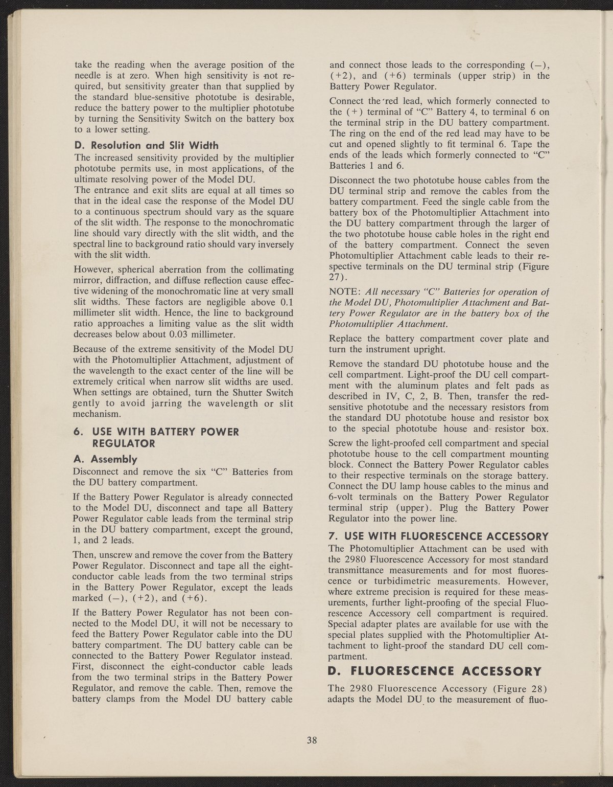 The Beckman Model DU Spectrophotometer and Accessories Instruction Manual