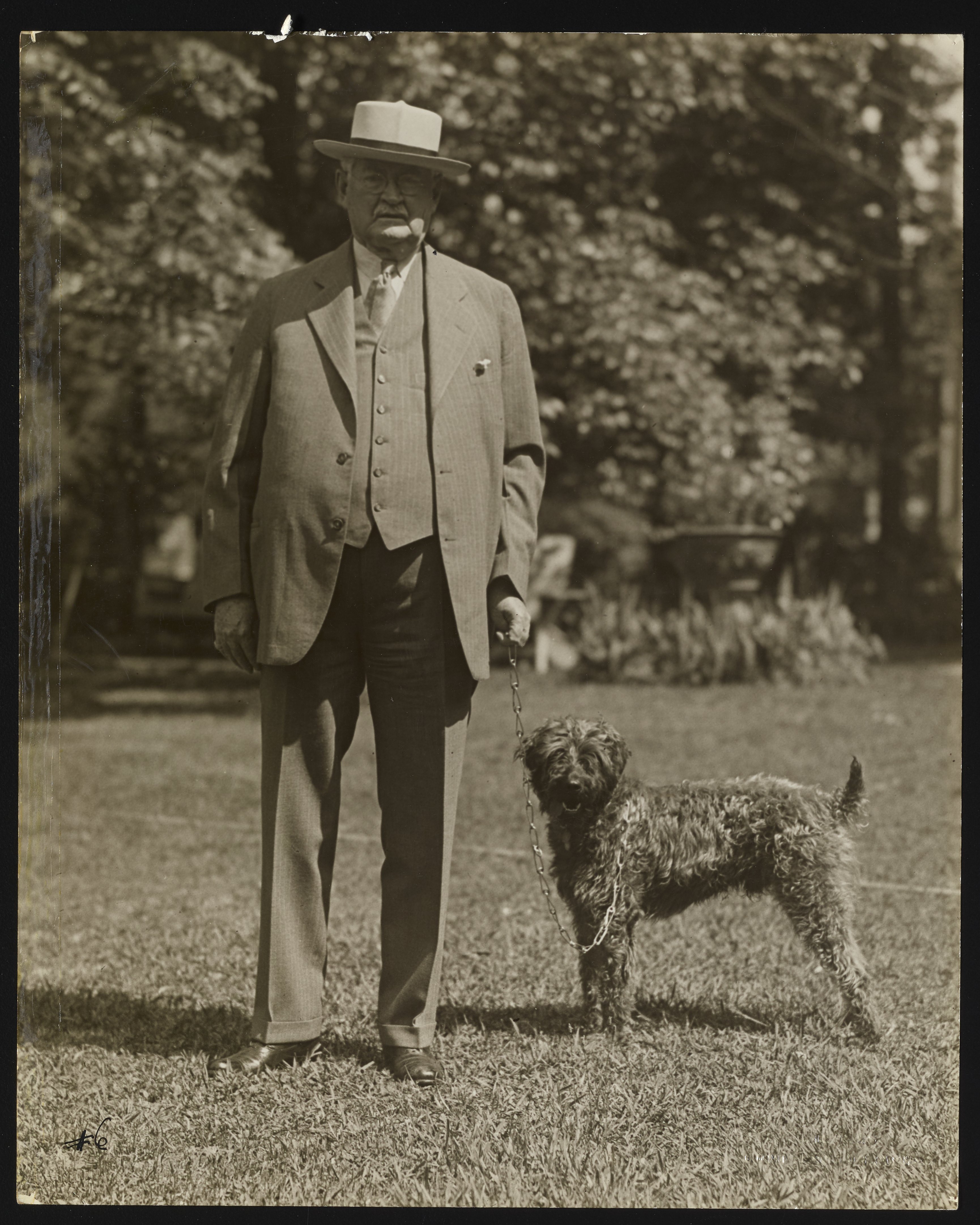 “Portrait of John Francis Queeny (1859-1933) and Dog,” circa 1930. Williams Haynes Portrait Collection, Box 12. Science History Institute. Philadelphia. https://digital.sciencehistory.org/works/r207tp91k.