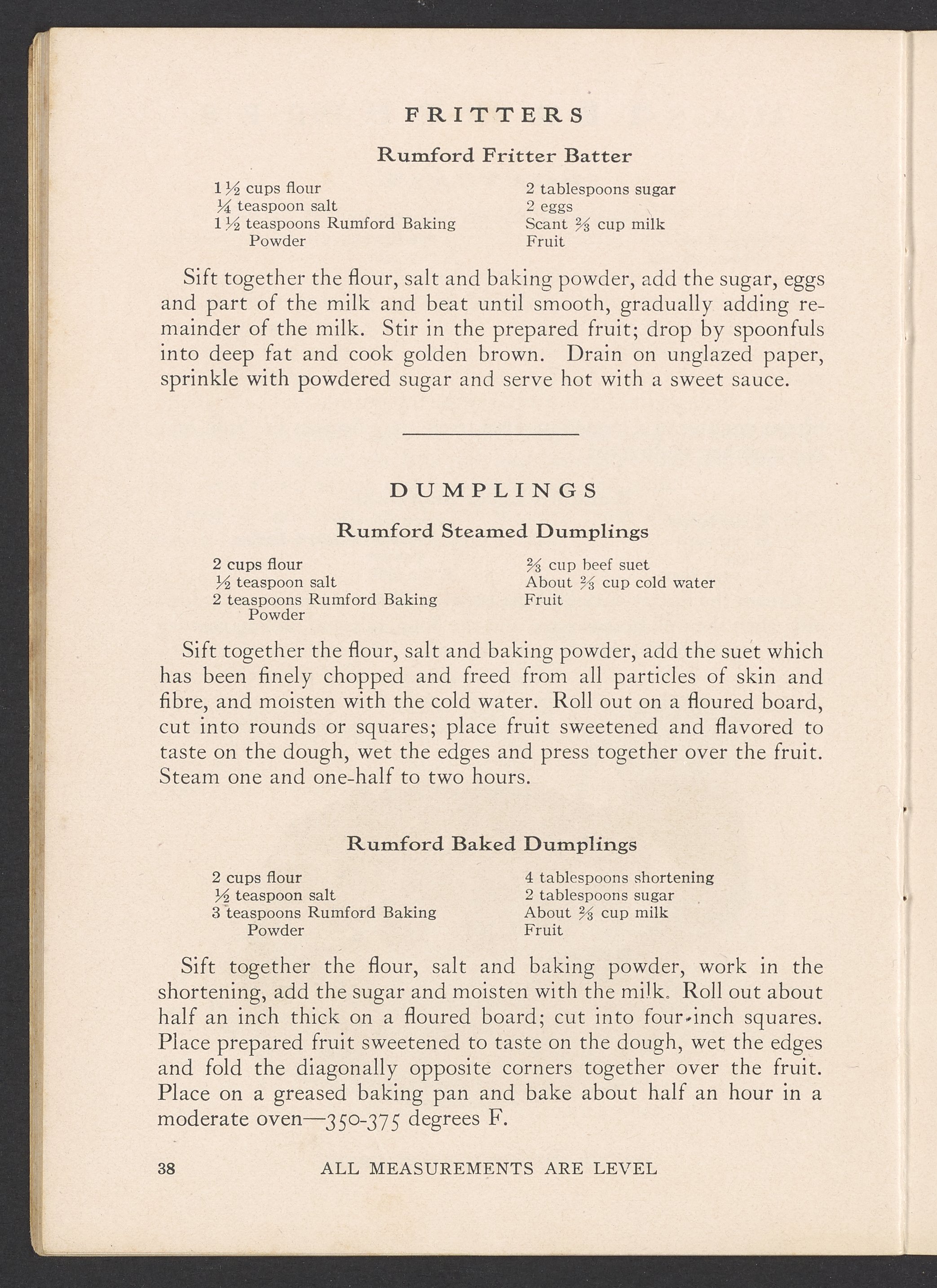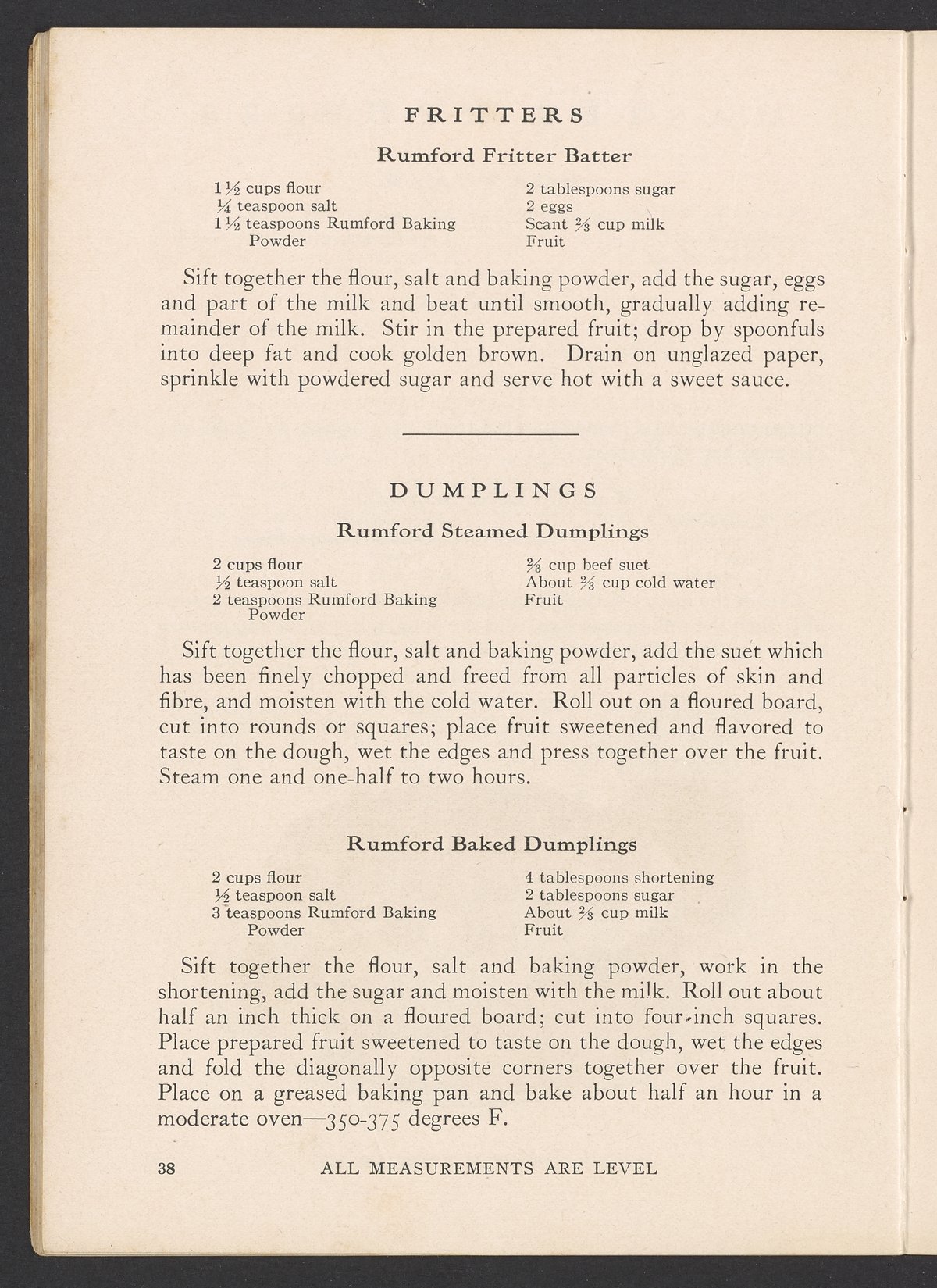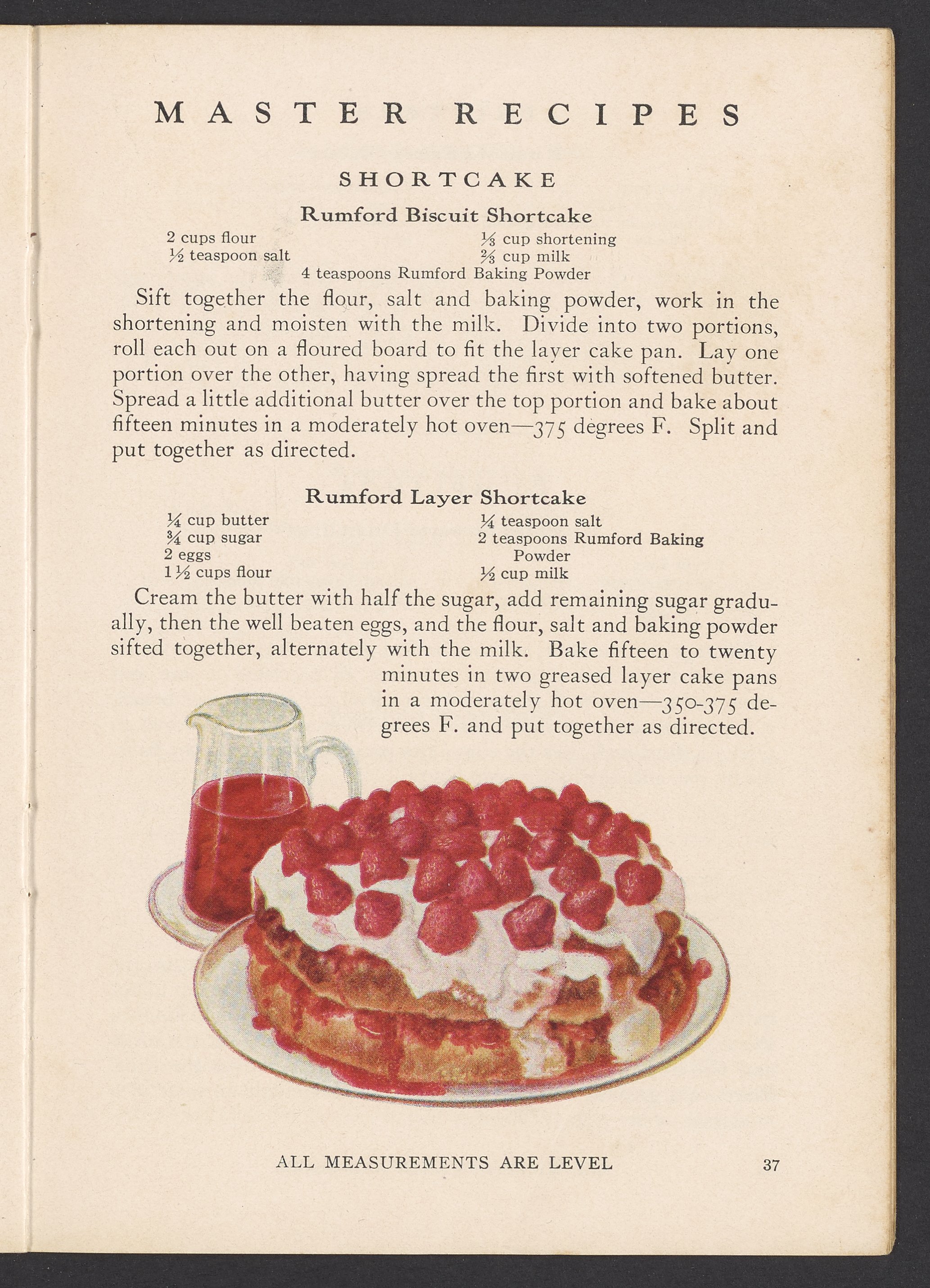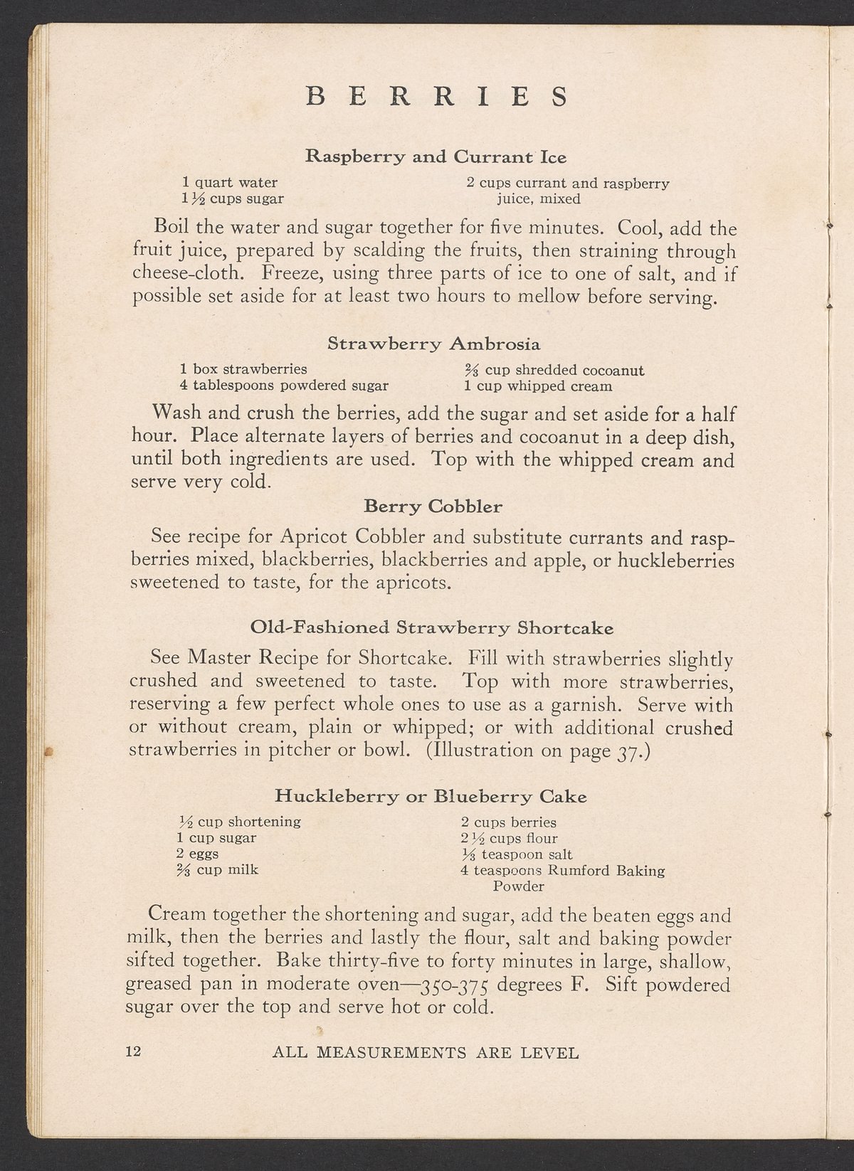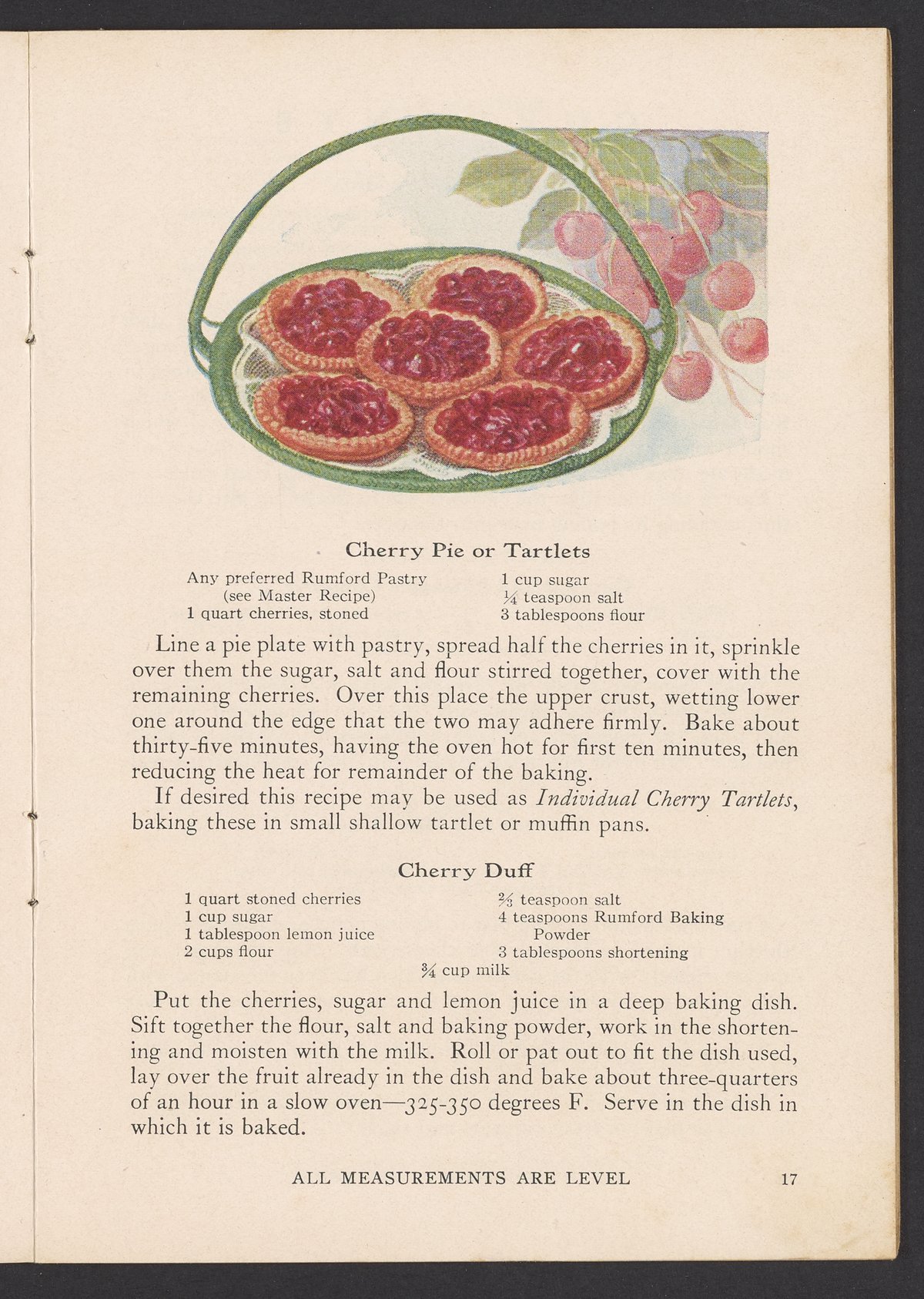 Small JPG1200 x 1653px — 365 KBFull-sized JPG2076 x 2860px — 1.1 MBOriginal fileTIFF — 2076 x 2860px — 17.0 MBA cookbook containing fruit-based recipes for a variety of dishes including desserts, jams, cocktails, and baked goods. The work is published by the Rumford Company, a chemical manufacturer and producer of baking powder. Consequently, many of the included recipes include Rumford Baking Powder as an ingredient. Includes colorful illustrations and an advertisement for Rumford Baking Powder.