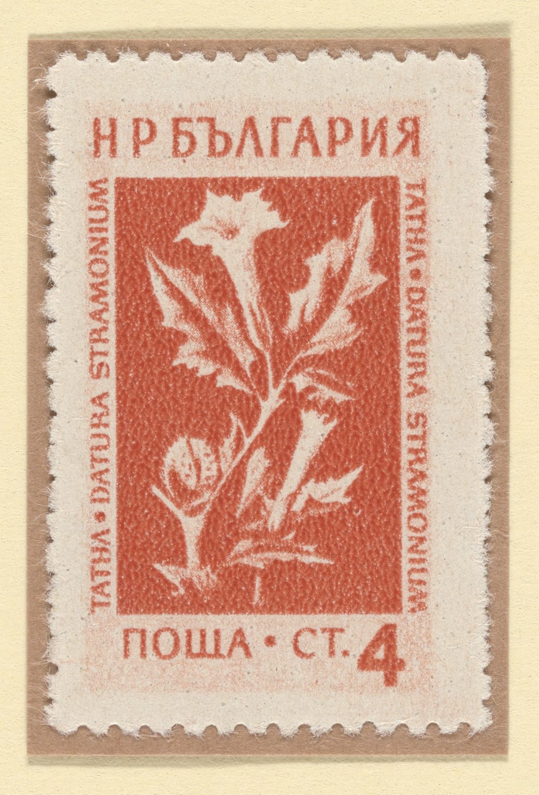 “Jimson Weed (Datura Stramonium) Postage Stamp, Bulgaria,” 1953. Witco Stamp Collection, Box 5. Science History Institute. Philadelphia. https://digital.sciencehistory.org/works/r6docip.