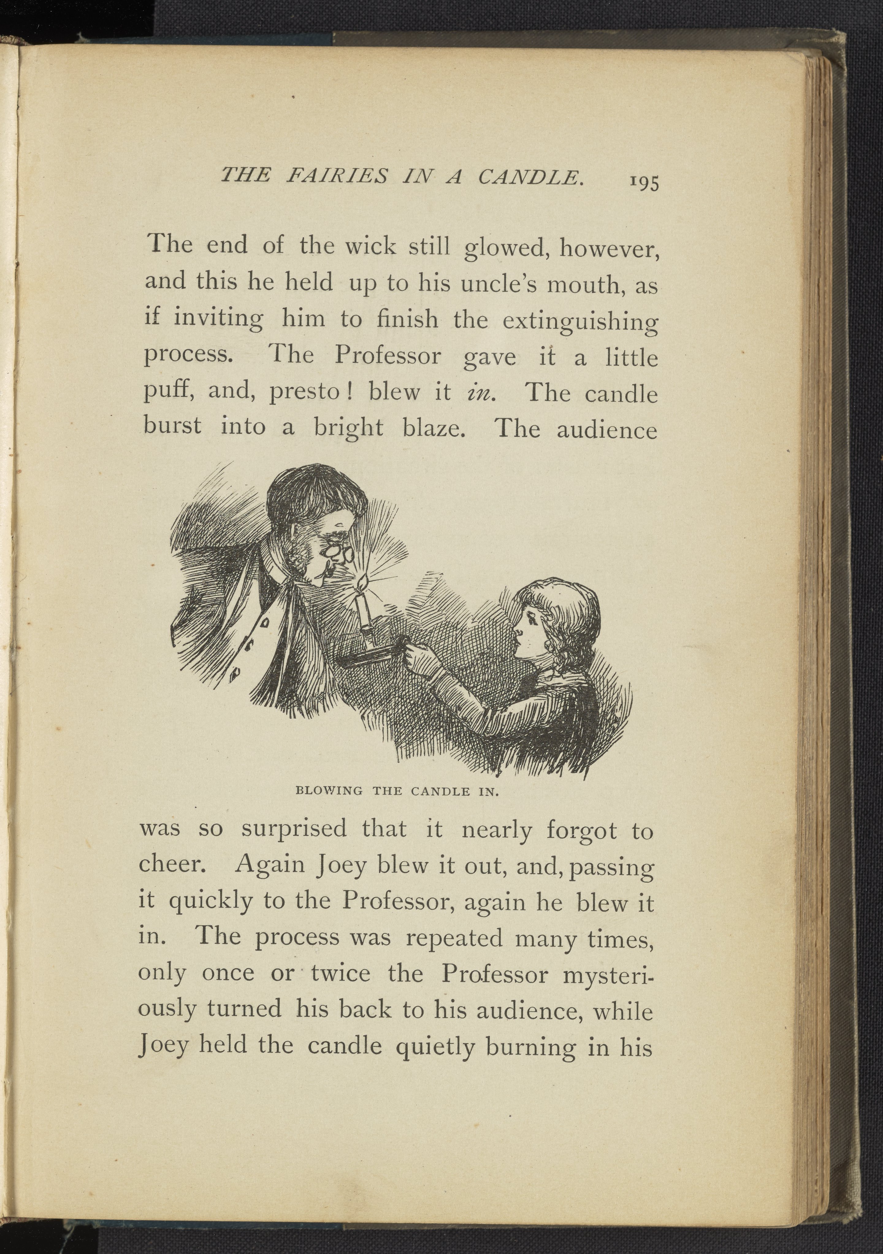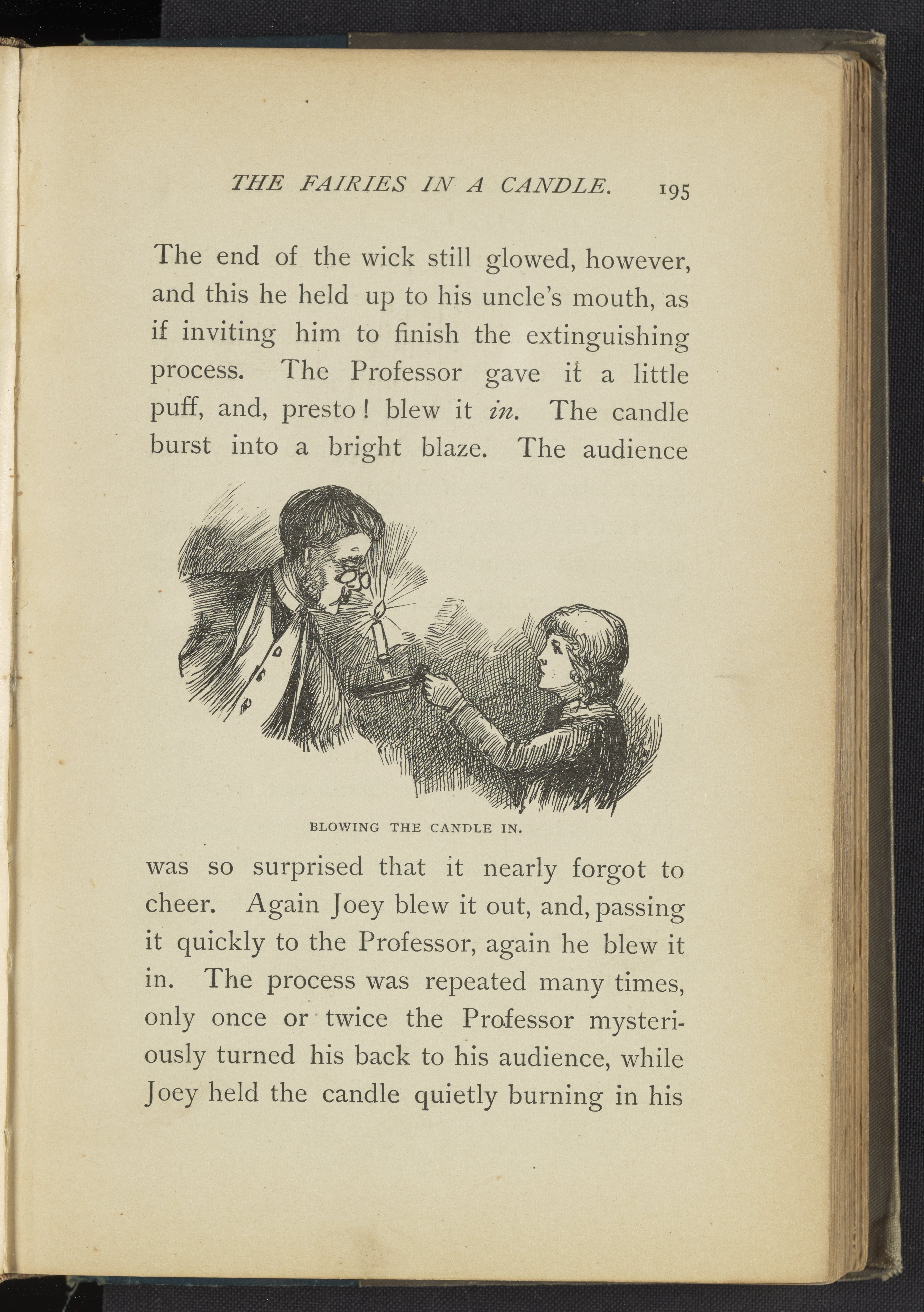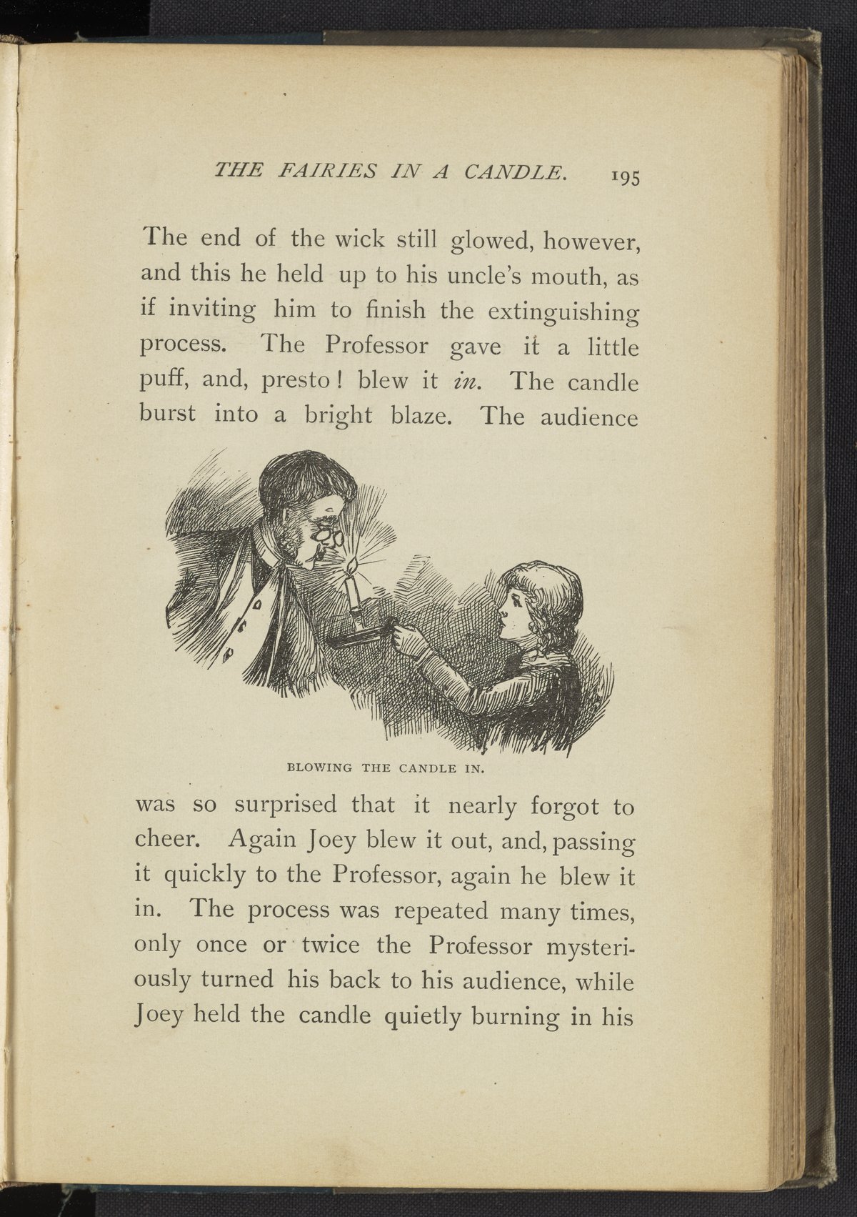 Meyer, Lucy Rider. “Blowing the Candle In.” Real Fairy Folks, or, Fairy Land of Chemistry: Explorations in the World of Atoms. Boston, Massachusetts: Lothrop Publishing Company, 1887. https://digital.sciencehistory.org/works/r781wg466.