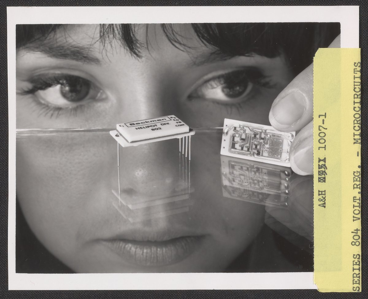 Armstrong & Hess. “Beckman Series 802 Voltage Regulator, Regarded by a Woman,” 1950–1969. Beckman Historical Collection, Box 85. Science History Institute. Philadelphia. https://digital.sciencehistory.org/works/rb68xc27h.