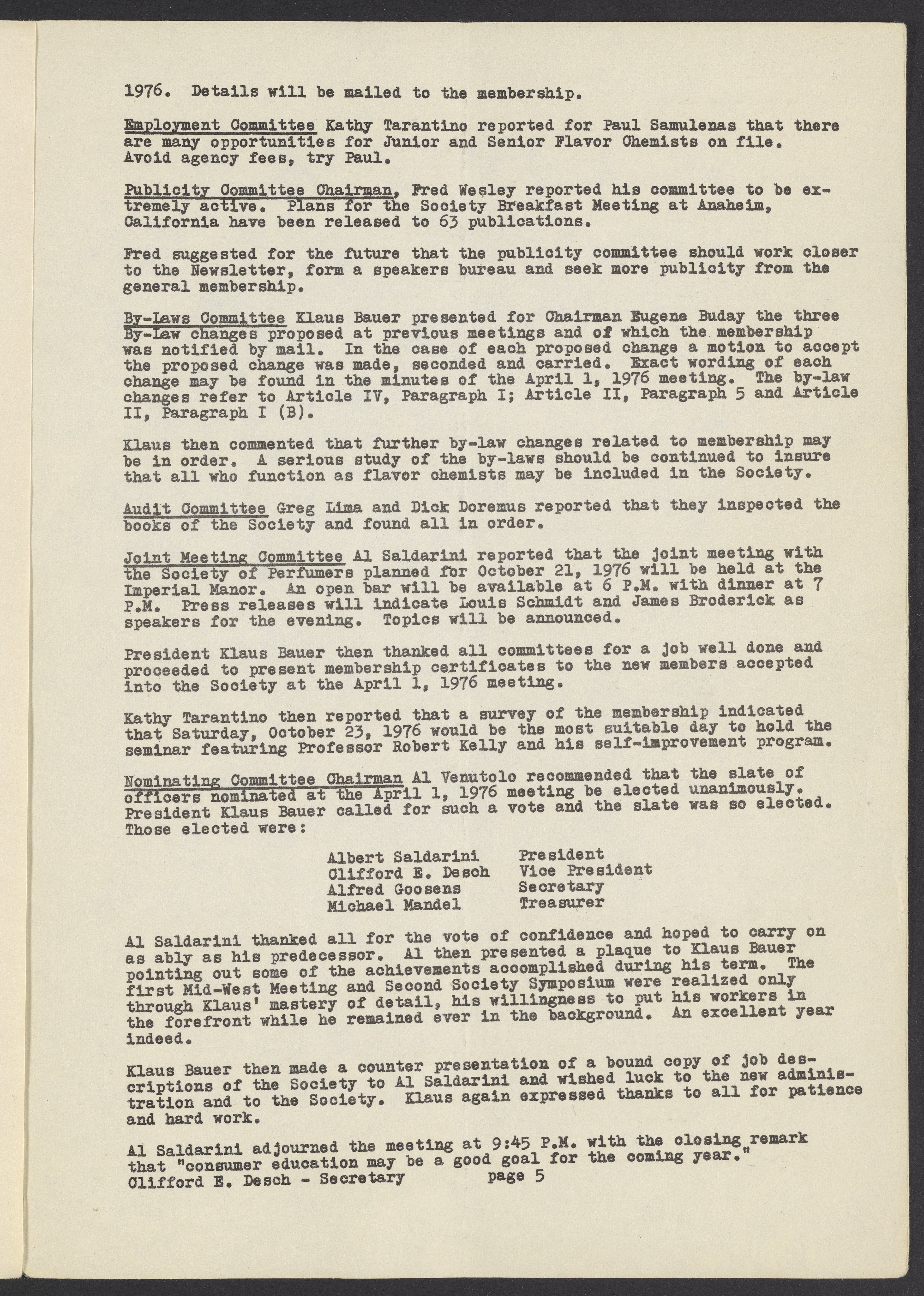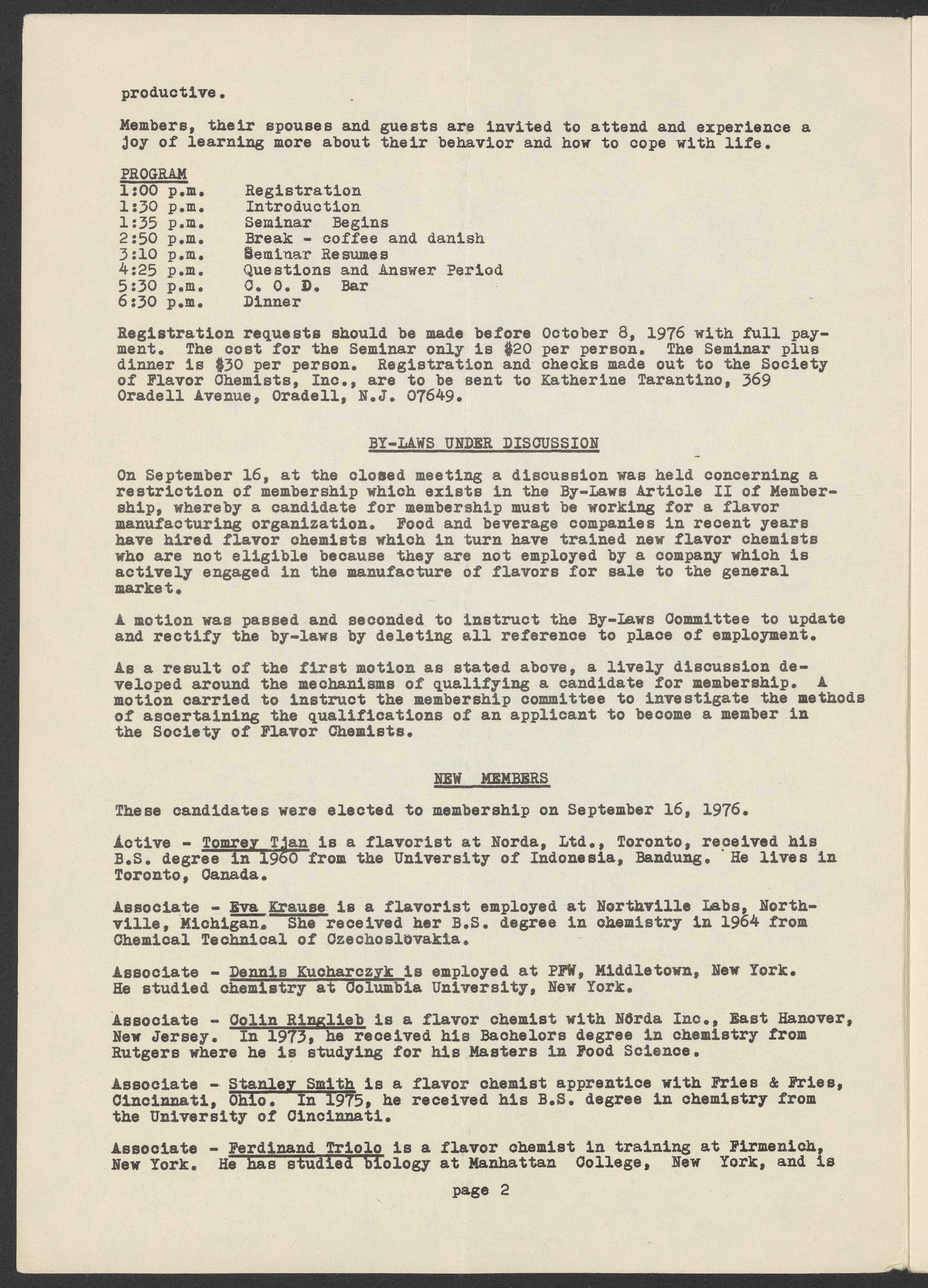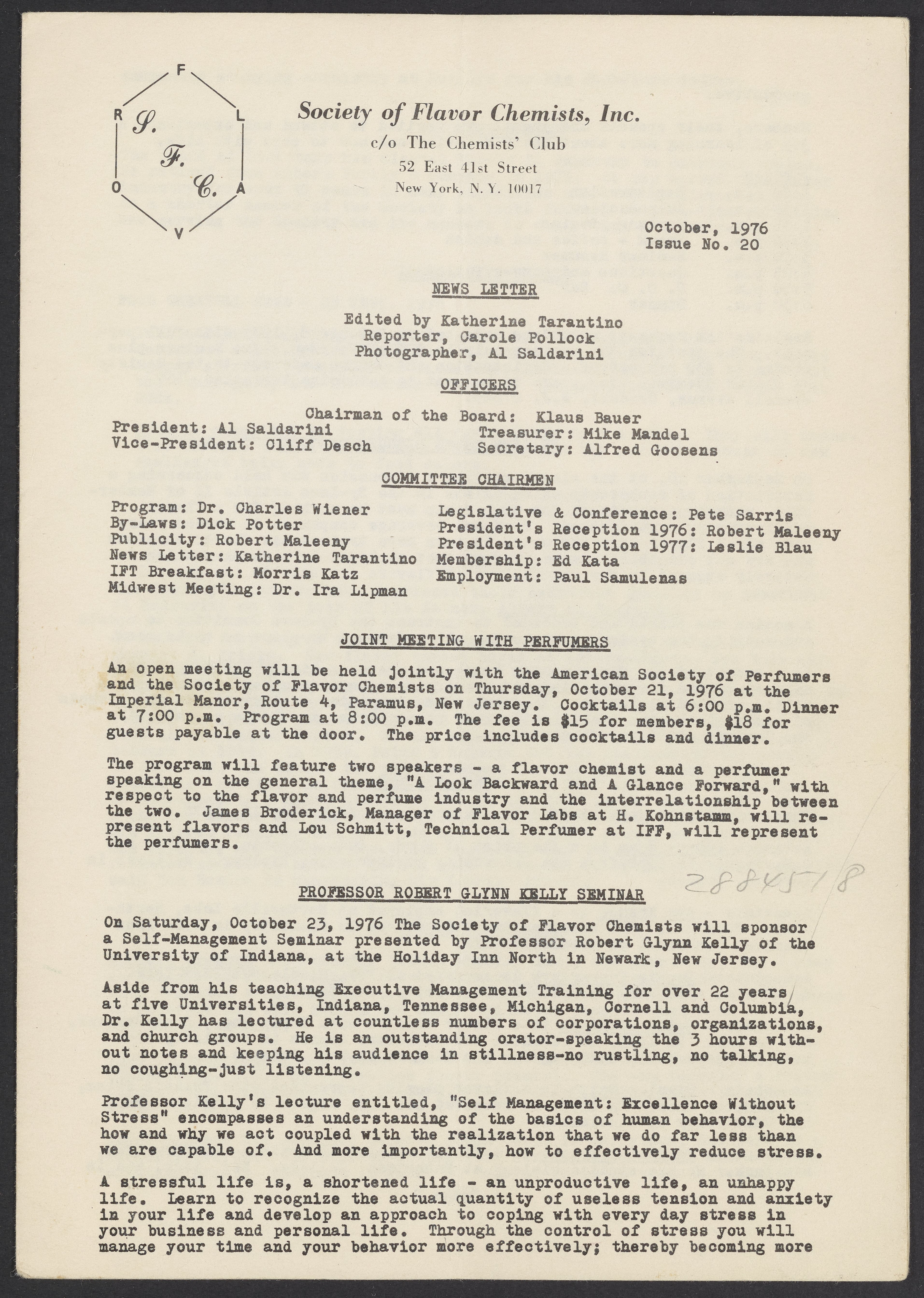 Society of Flavor Chemists newsletter, October 1976