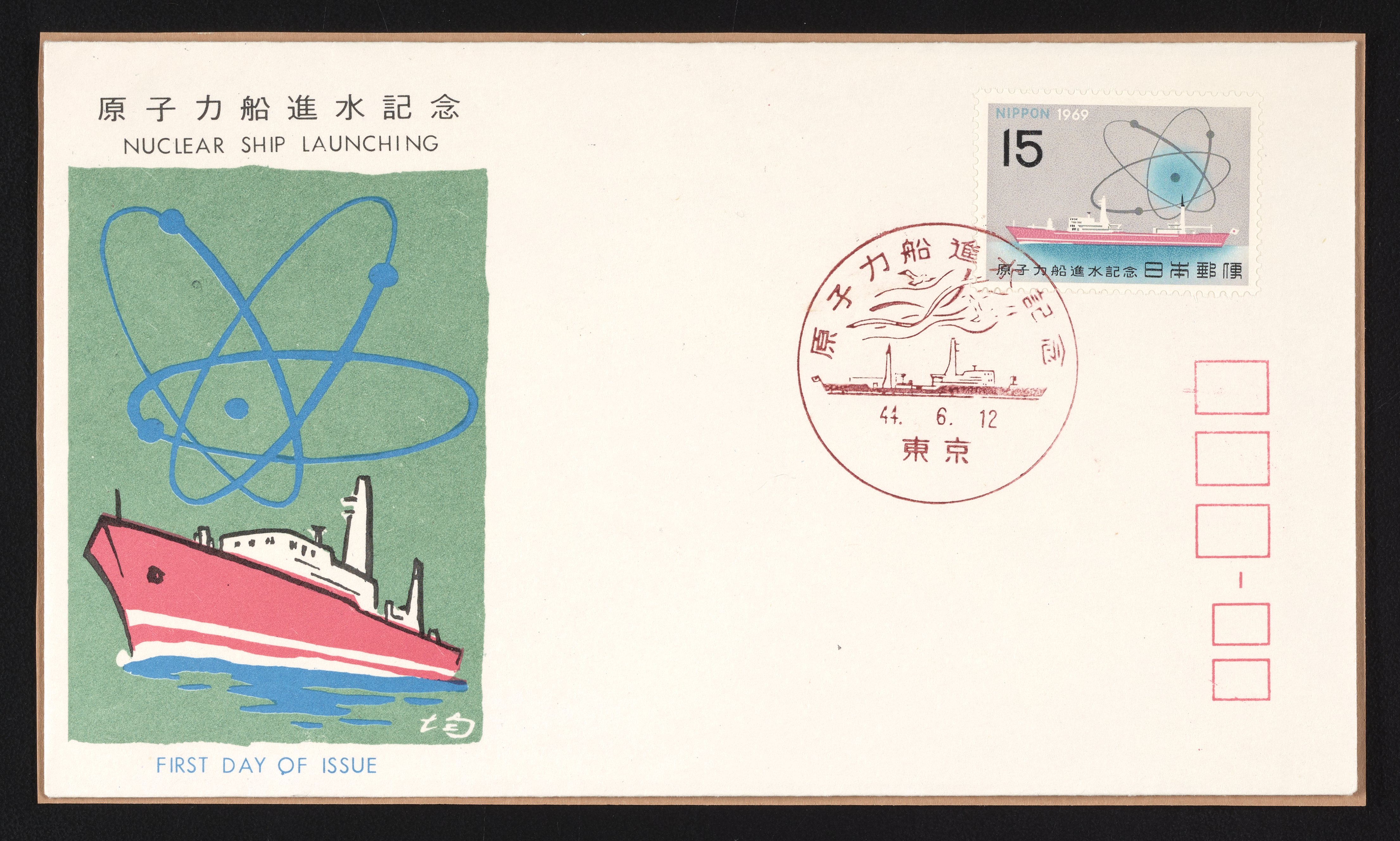 “First Day Cover Commemorating the Launch of the Japanese Nuclear Ship ‘Mutsu.’” Japan, 1969. Witco Stamp Collection, Box 4. Science History Institute. Philadelphia. https://digital.sciencehistory.org/works/rironrb.
