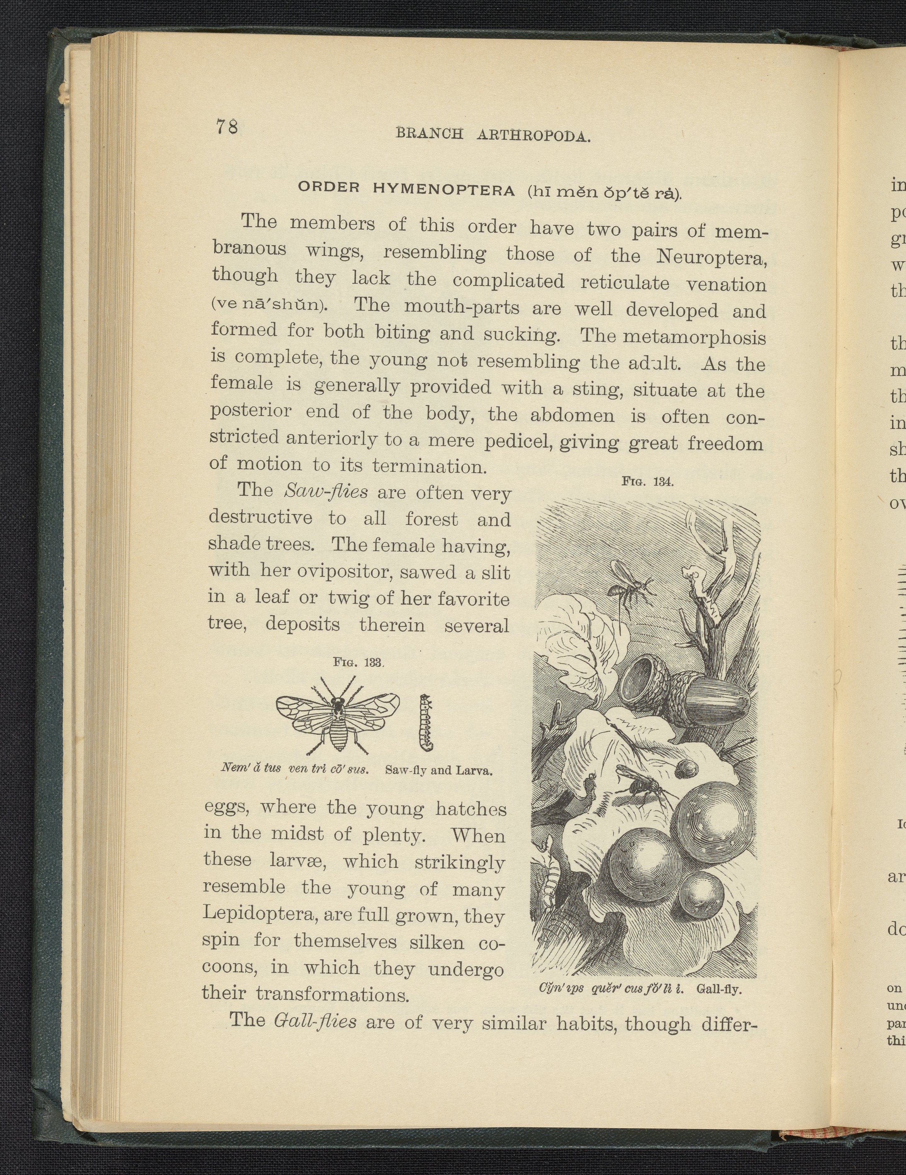 Steele, Joel Dorman, and Jenks, J. W. P. (John Whipple Potter). “Figure 133. Saw-Fly and Larva. Figure 134. Gall-Fly.” Popular Zoology. New York, New York: Chautauqua Press, 1887. https://digital.sciencehistory.org/works/rjr5rym.